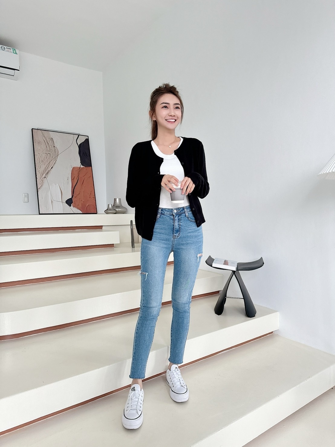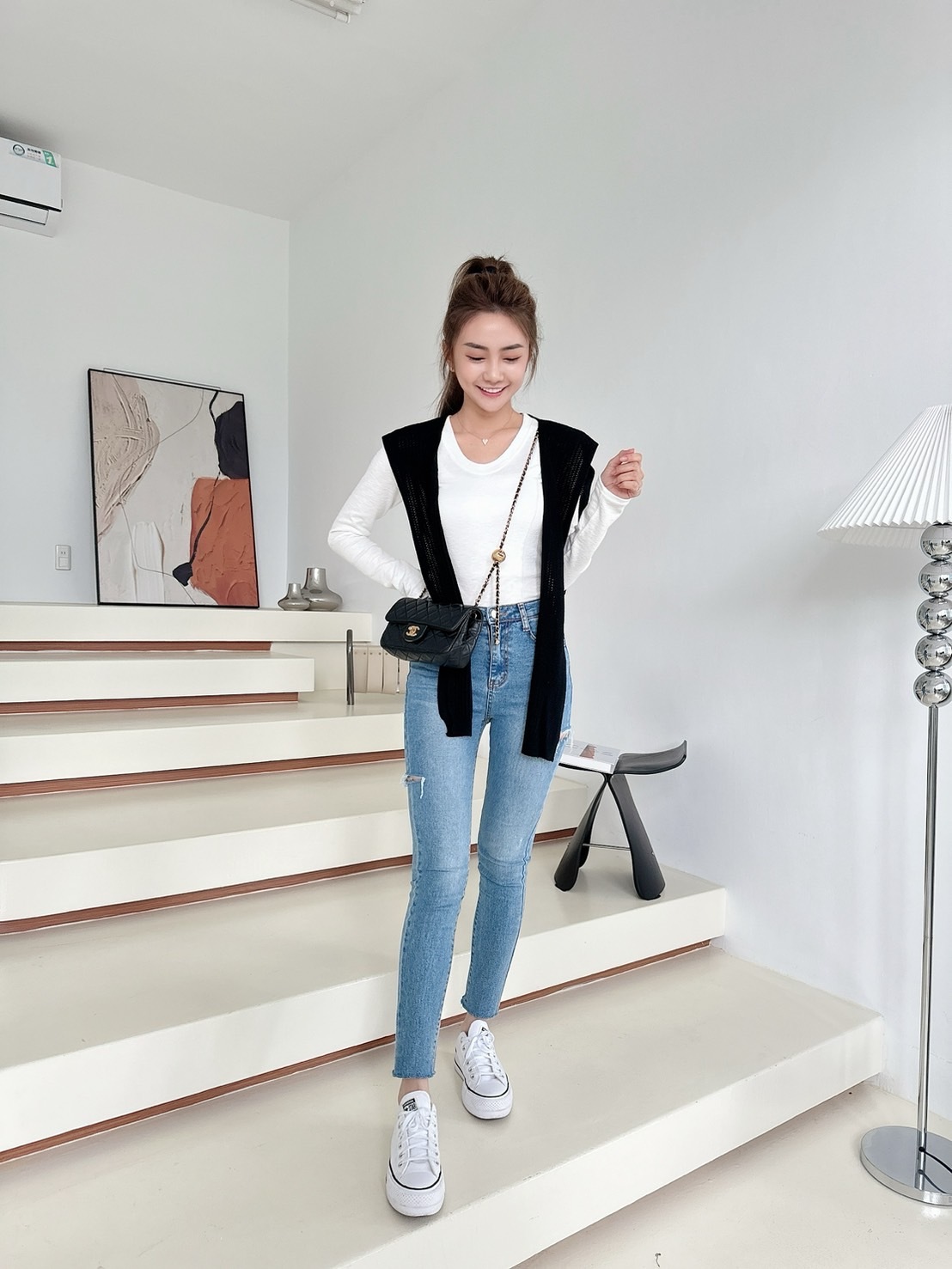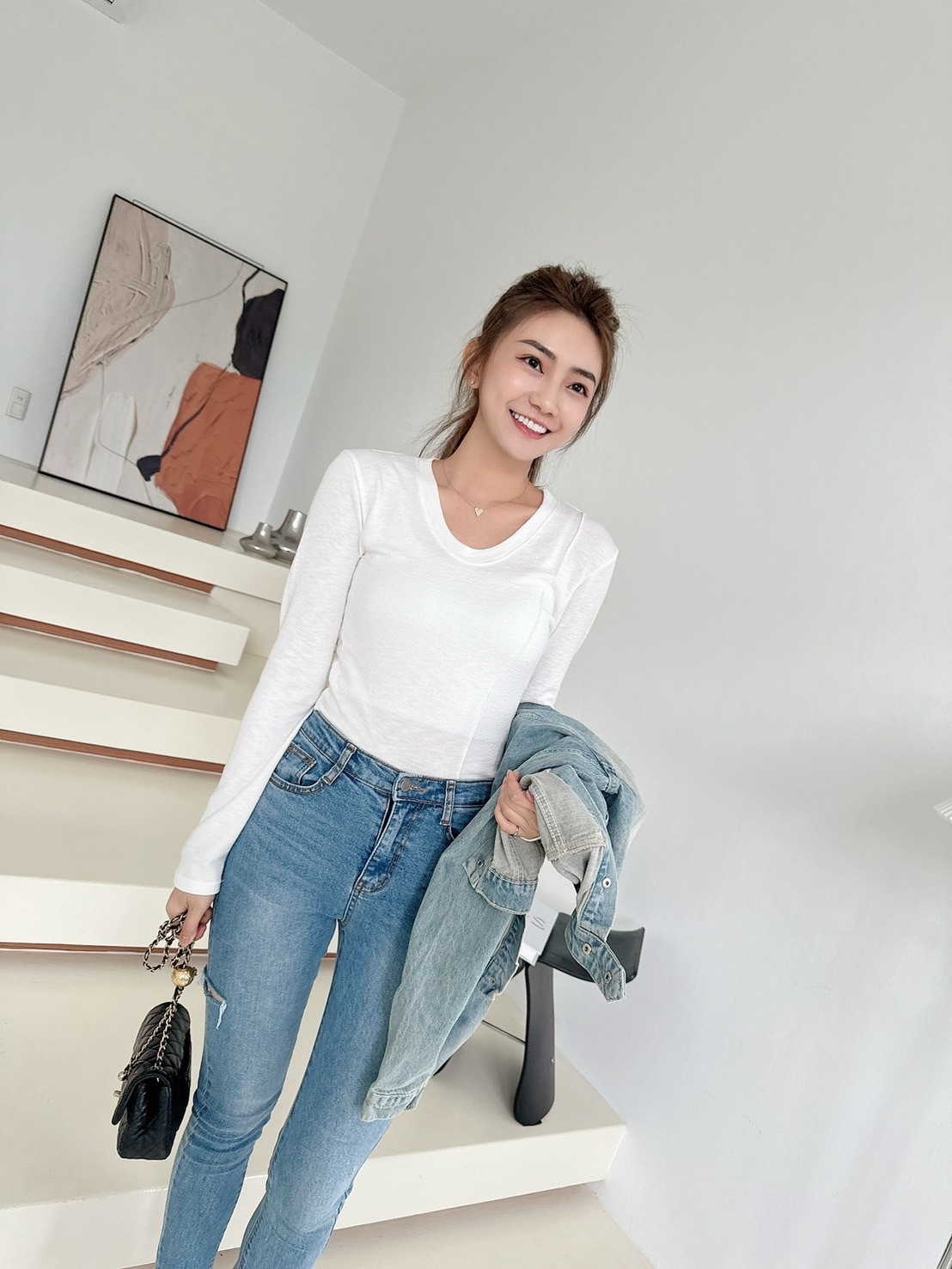【預購】🔥02.26春夏新品]💥最百搭單品]🇰🇷正韓V圓領超彈透氣棉上衣(白色/兩色)