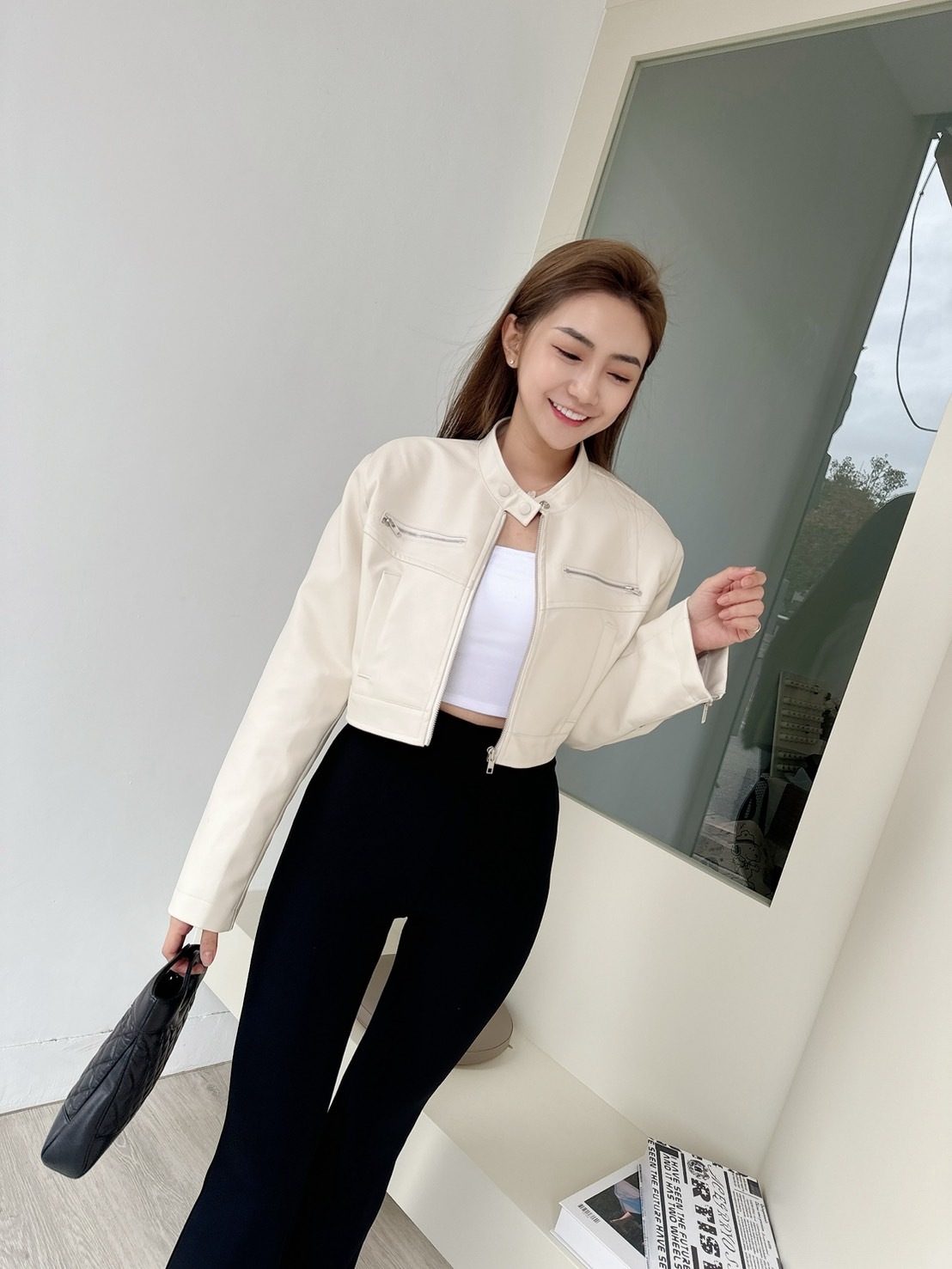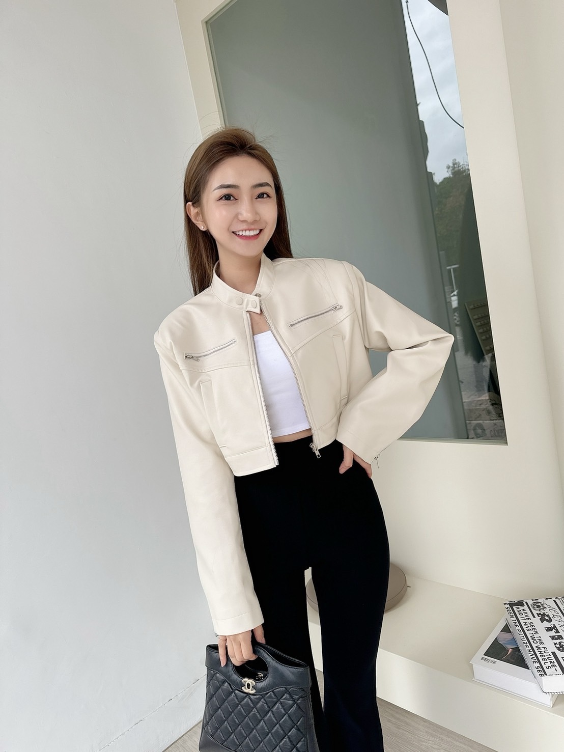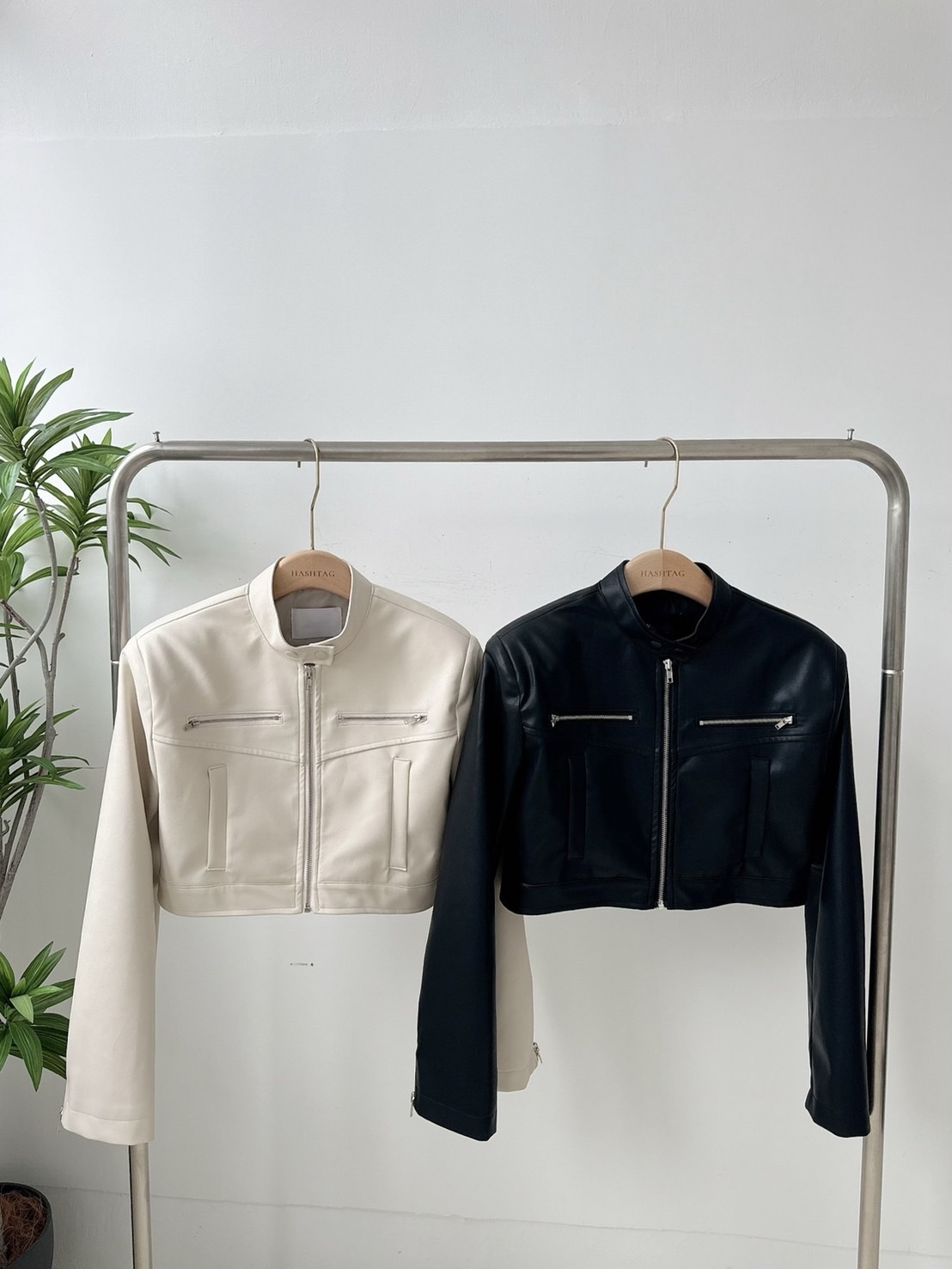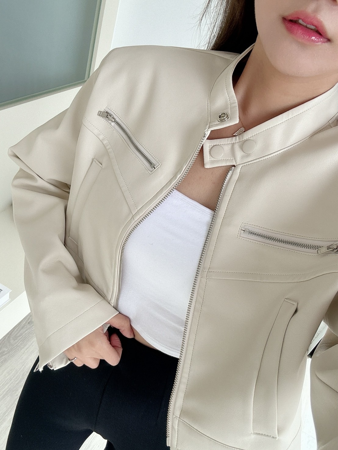 【預購】🔥02.26春夏新品]❤️闆娘命定款]🇰🇷正韓超質感墊肩口袋短版霧面皮外套(米杏/兩色)