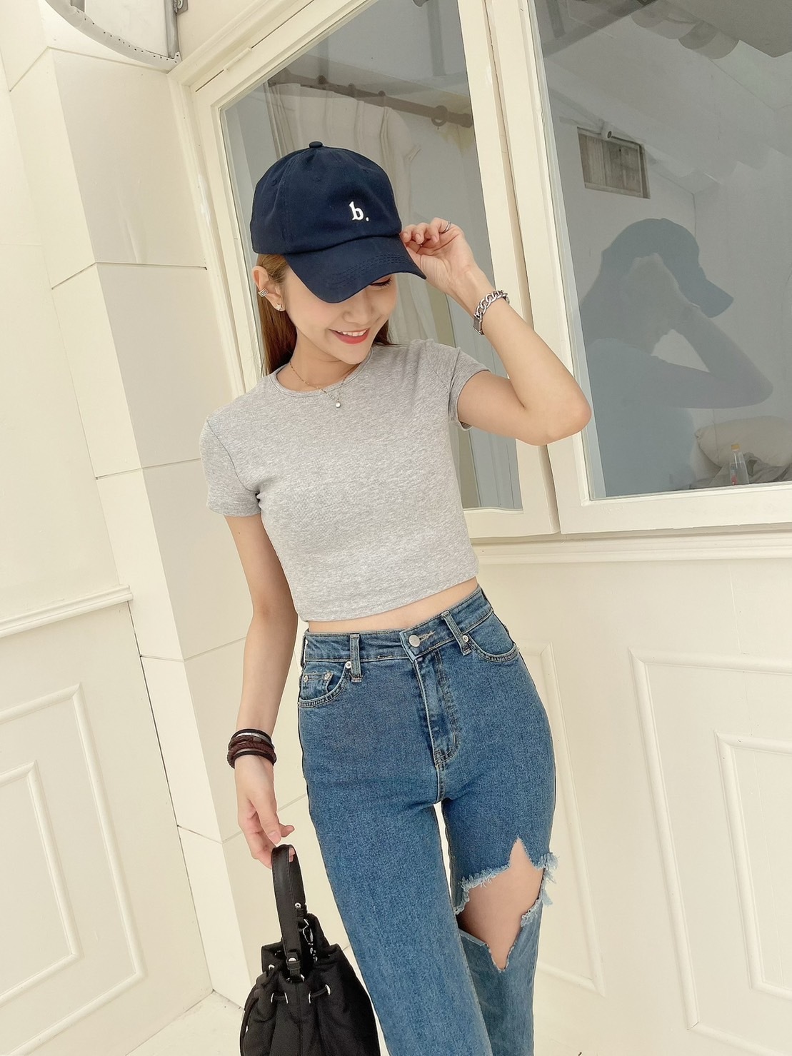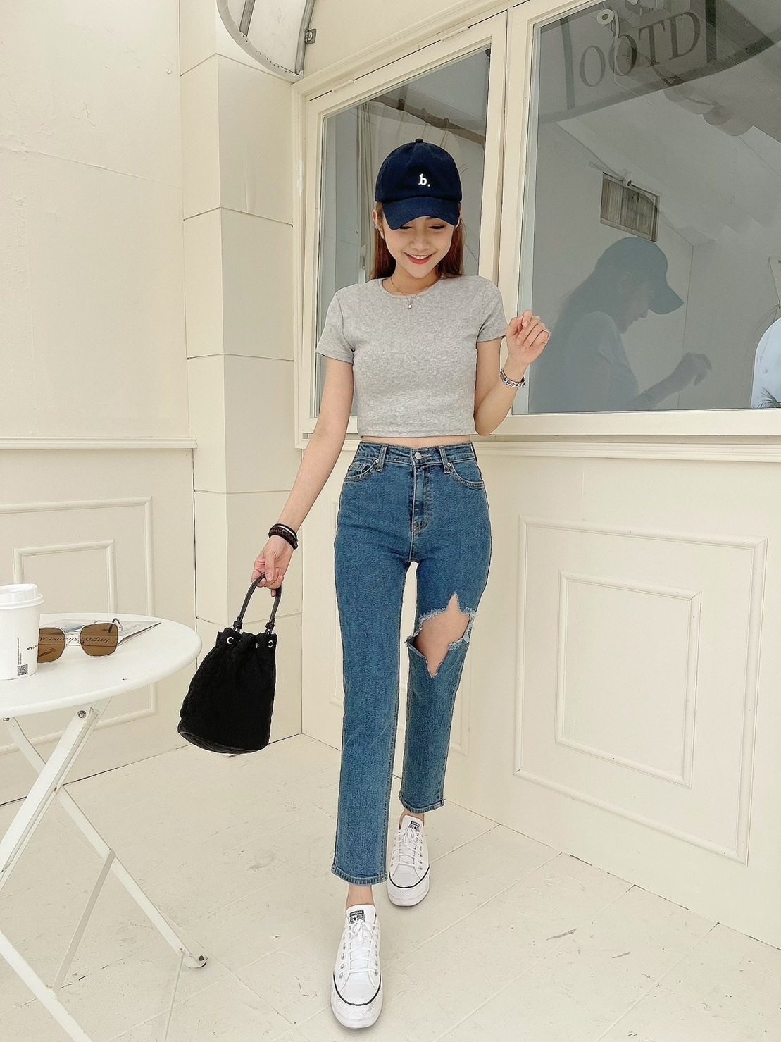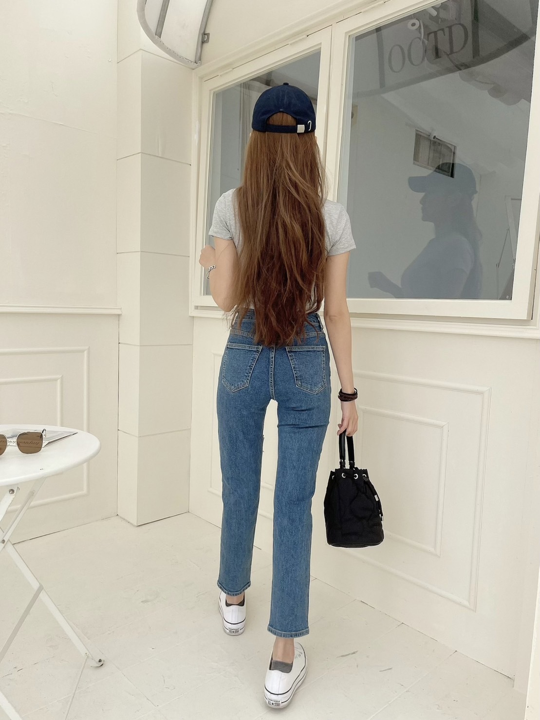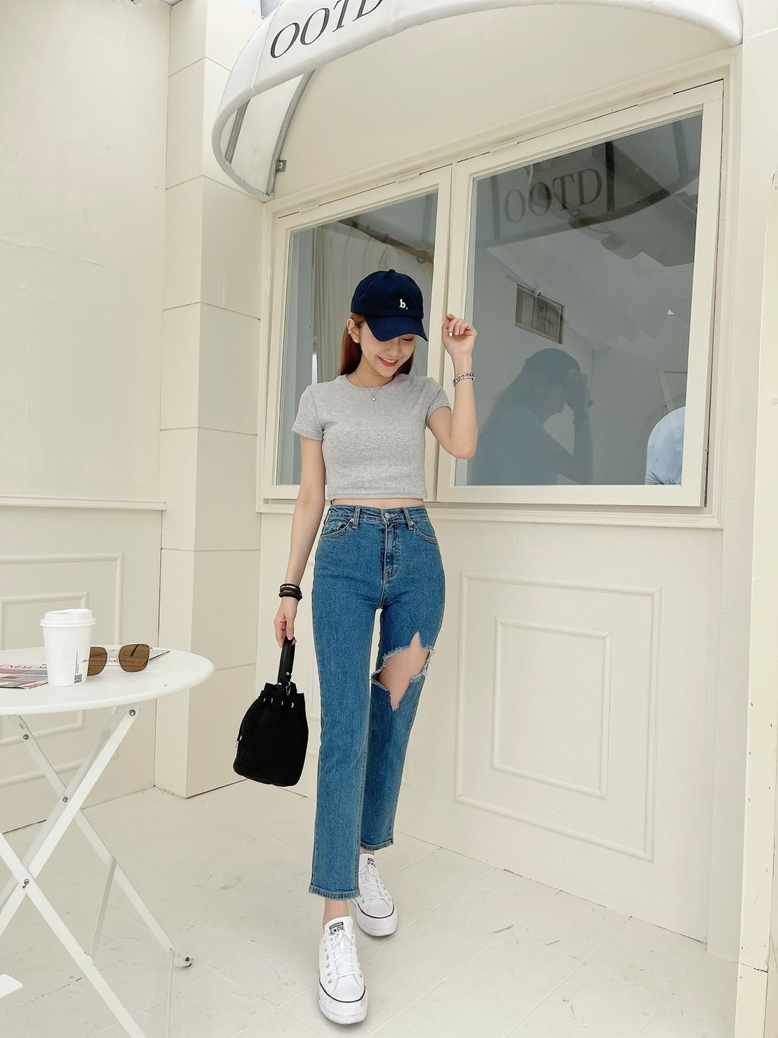🔥02.08直播新品]💥3.0爆瘦誇張褲]🇰🇷正韓高腰超顯瘦彈性左破洞貼腿直筒褲(S-L)