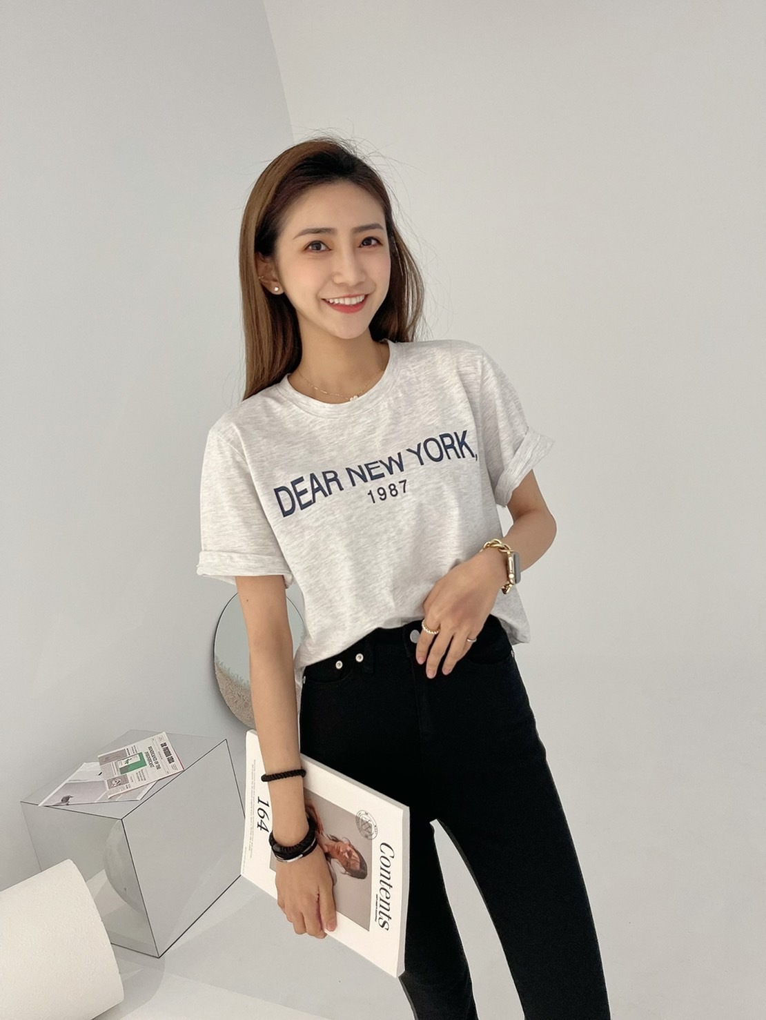 🔥02.23直播新品]💥春夏必收強款]🇰🇷正韓超可愛百搭英文字透氣棉t(灰白/三色)