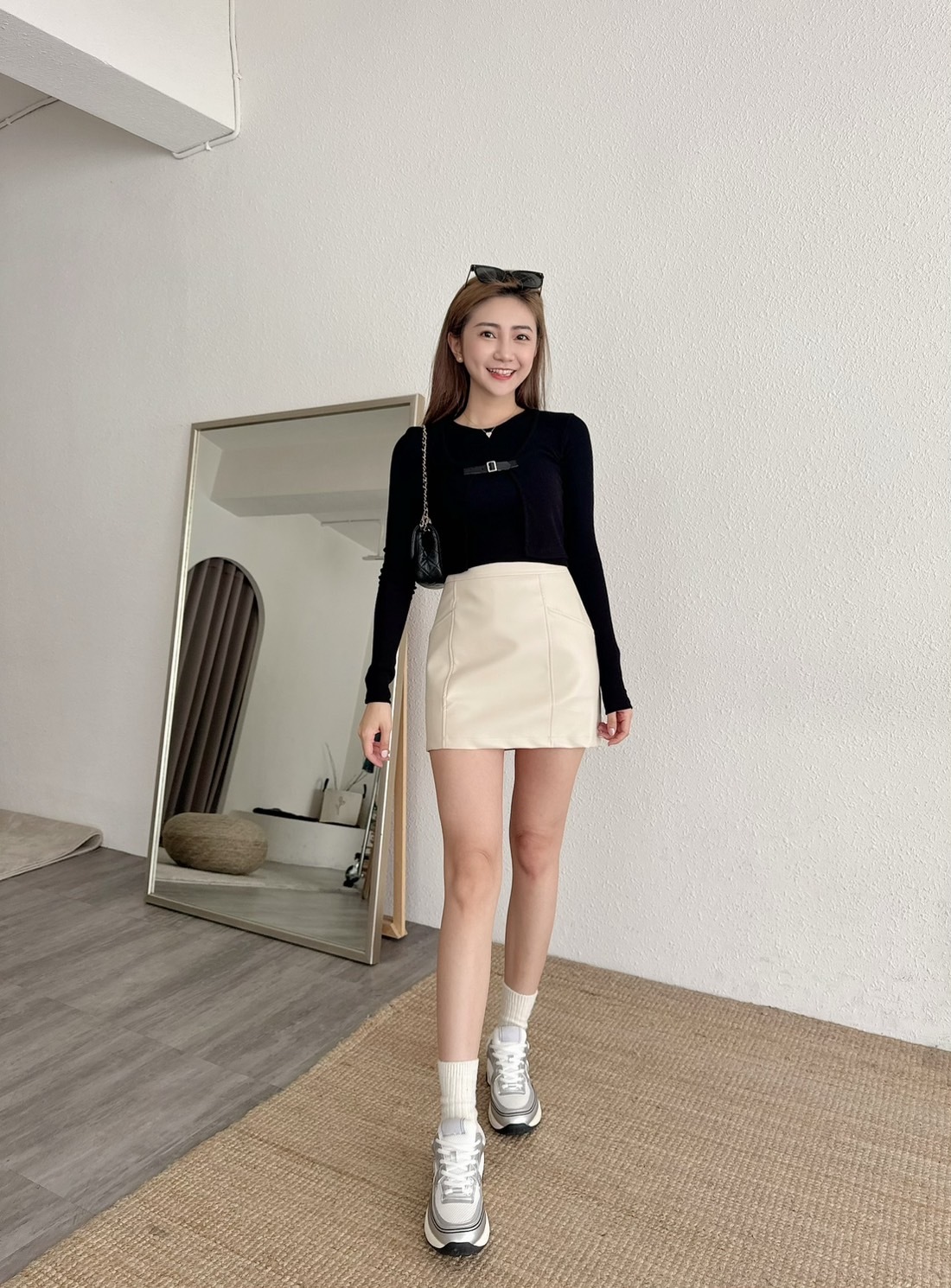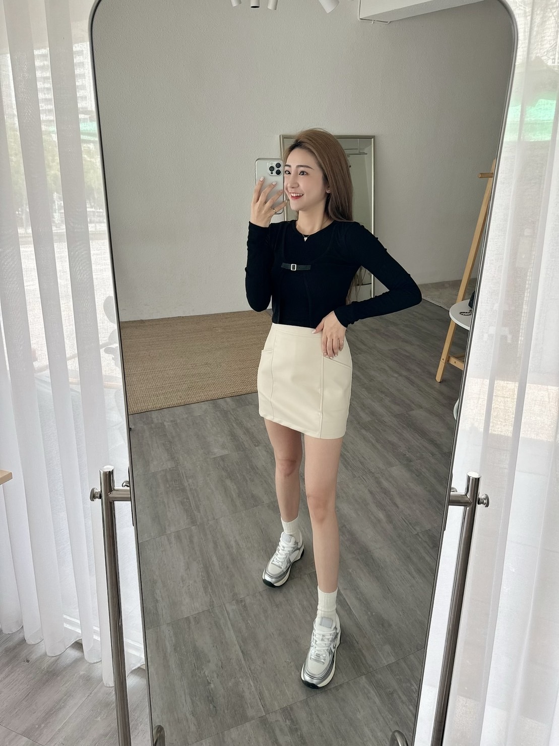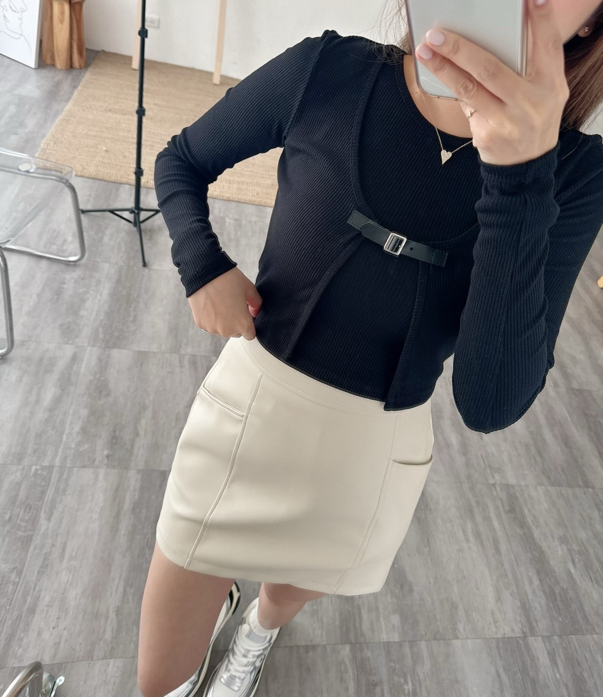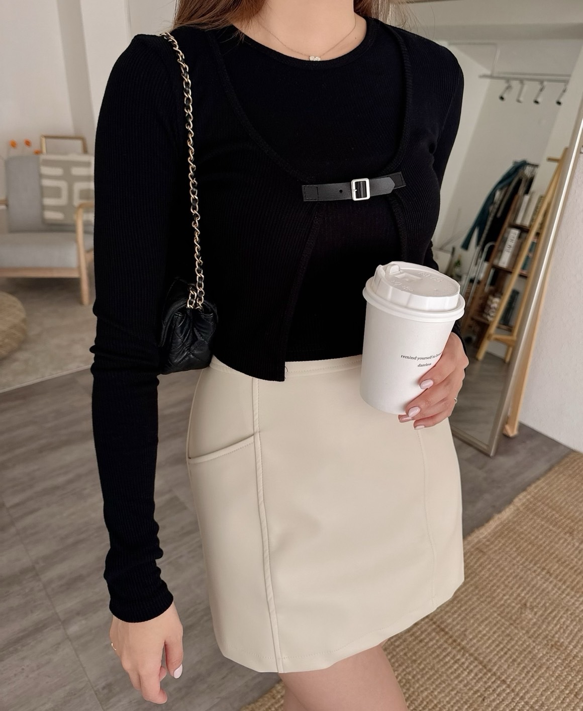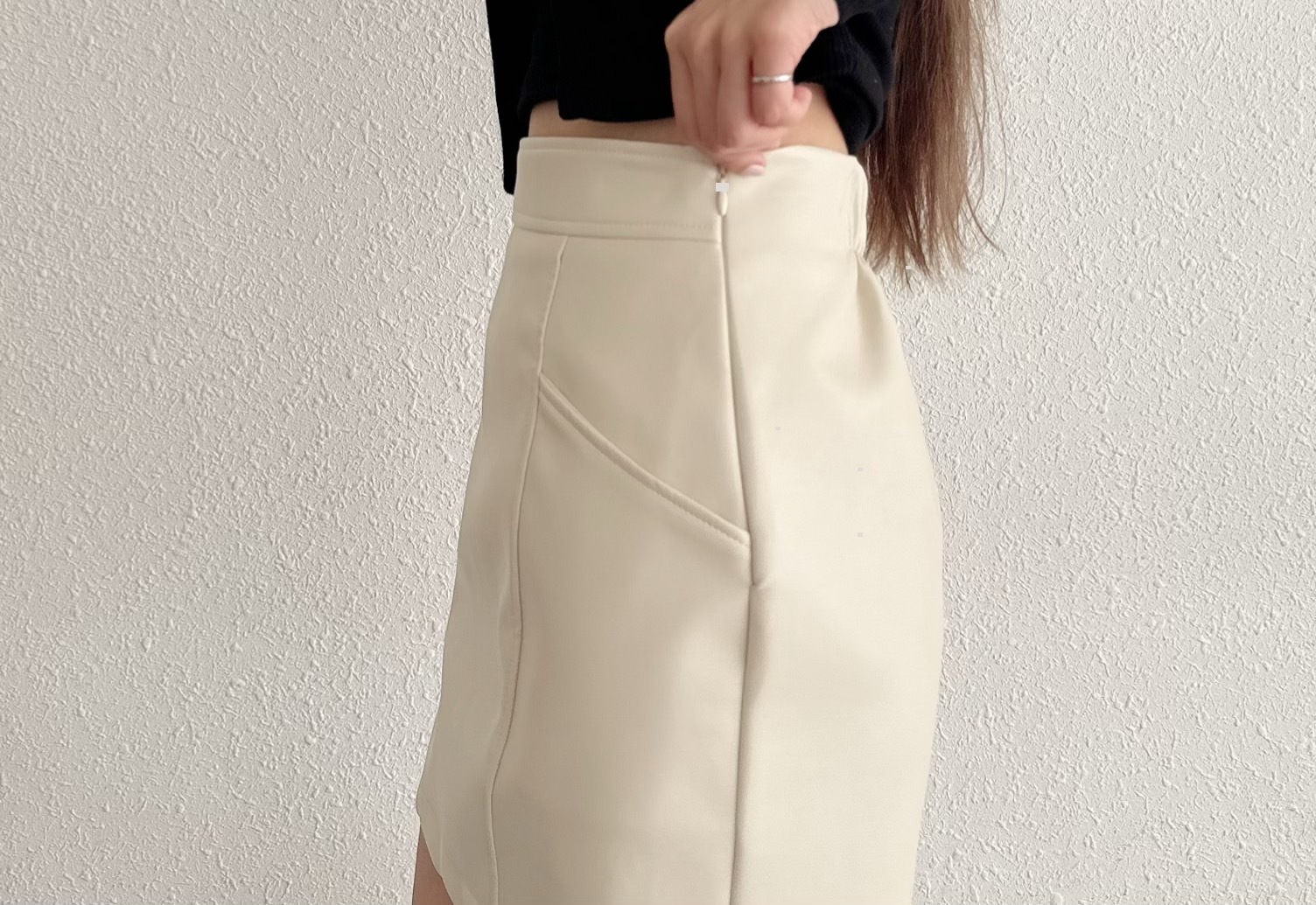 [預購]🔥03.27春夏新品]🔥春夏新品]💥夏天ㄉ皮裙~超顯腿長]🇰🇷正韓高腰包腹後鬆緊腰側拉鍊霧面口袋皮裙(杏色/兩色,Free)