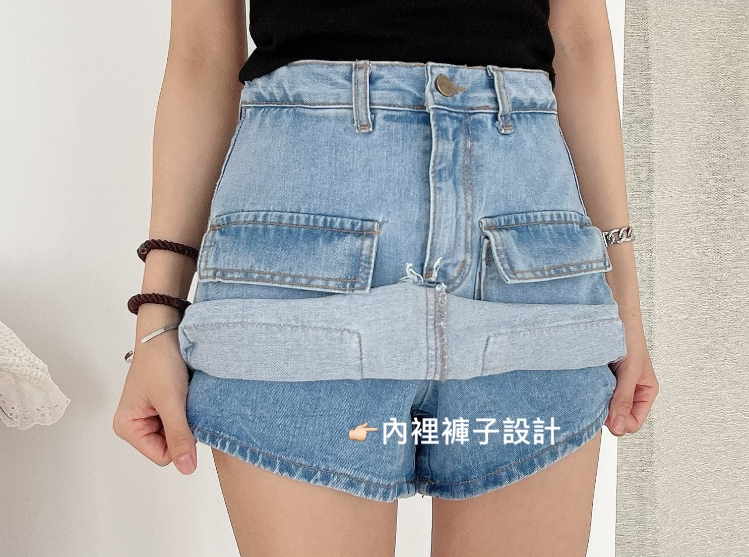 🔥03.22直播新品]💥今夏最流行]🇰🇷正韓中高腰工裝牛仔短裙(有安全褲設計/S-L)