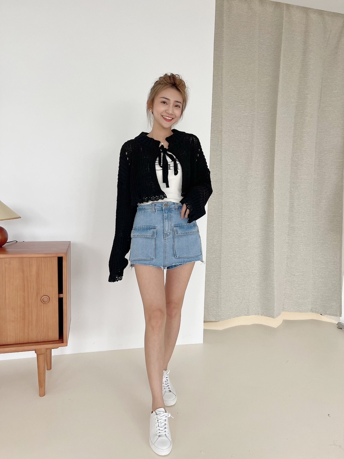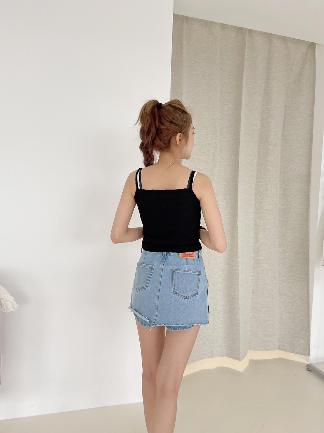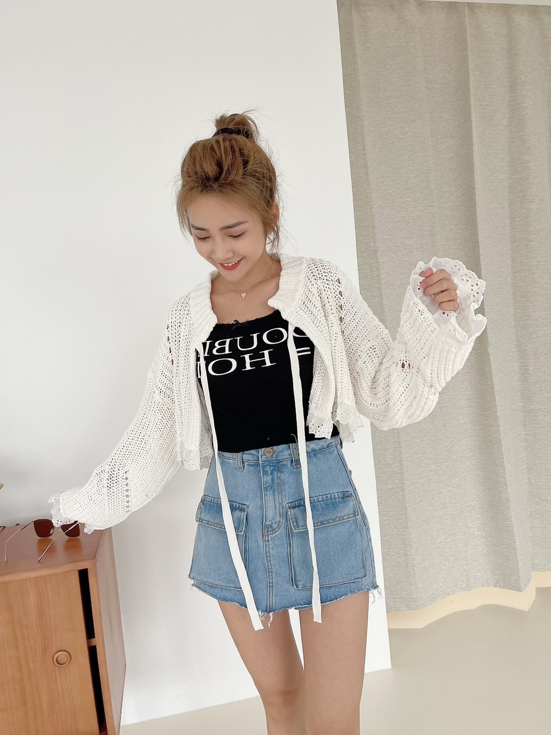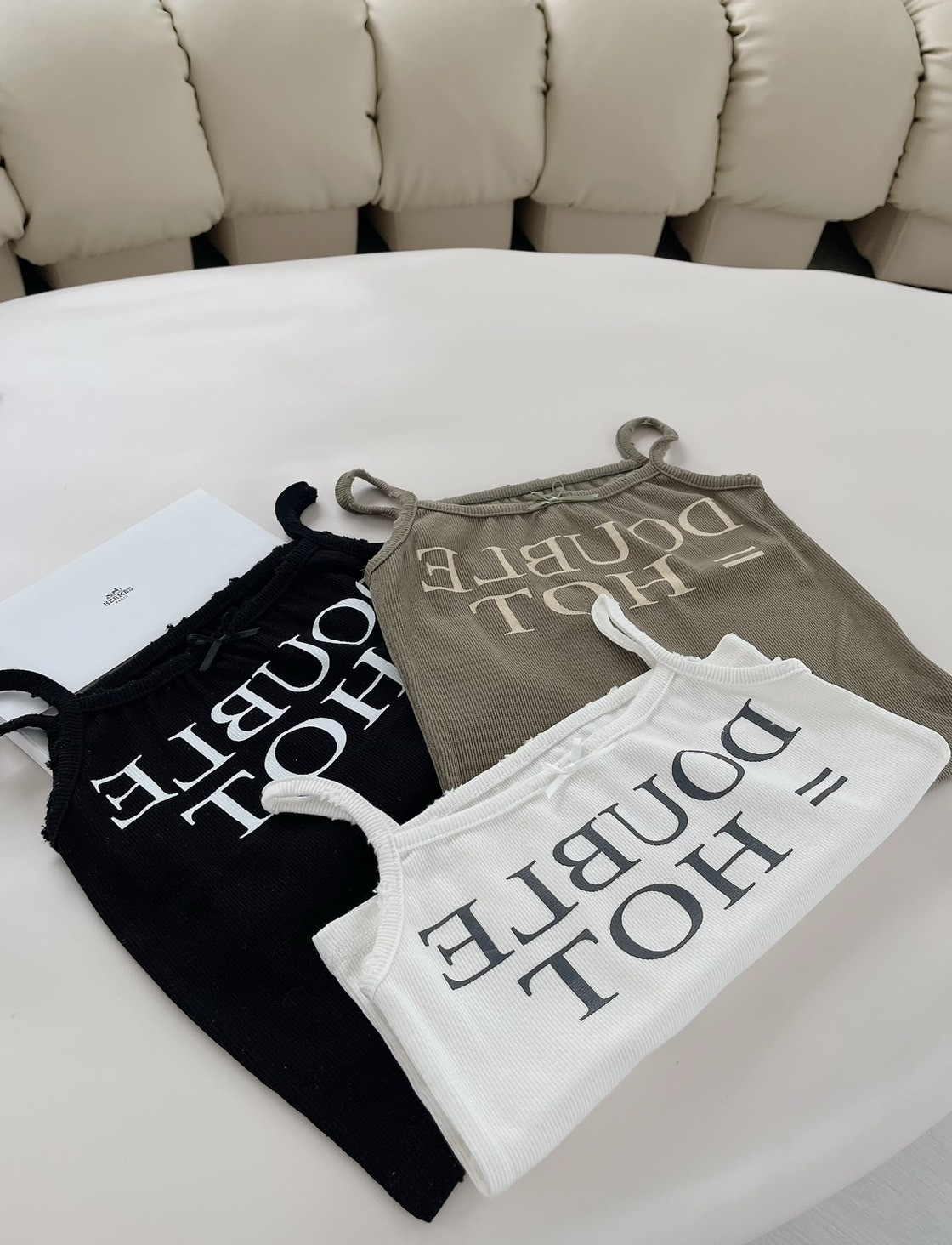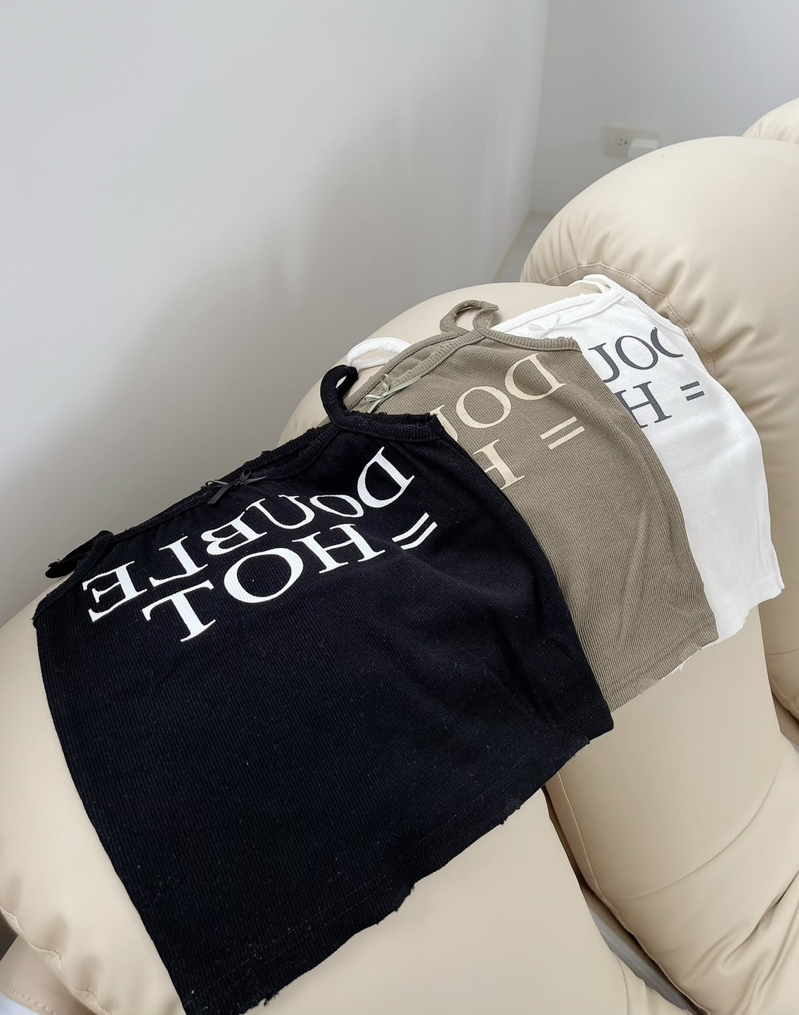 🔥03.22直播新品]🇰🇷正韓超可愛蝴蝶結美式英文字超彈刷破合身螺紋棉背心(三色)