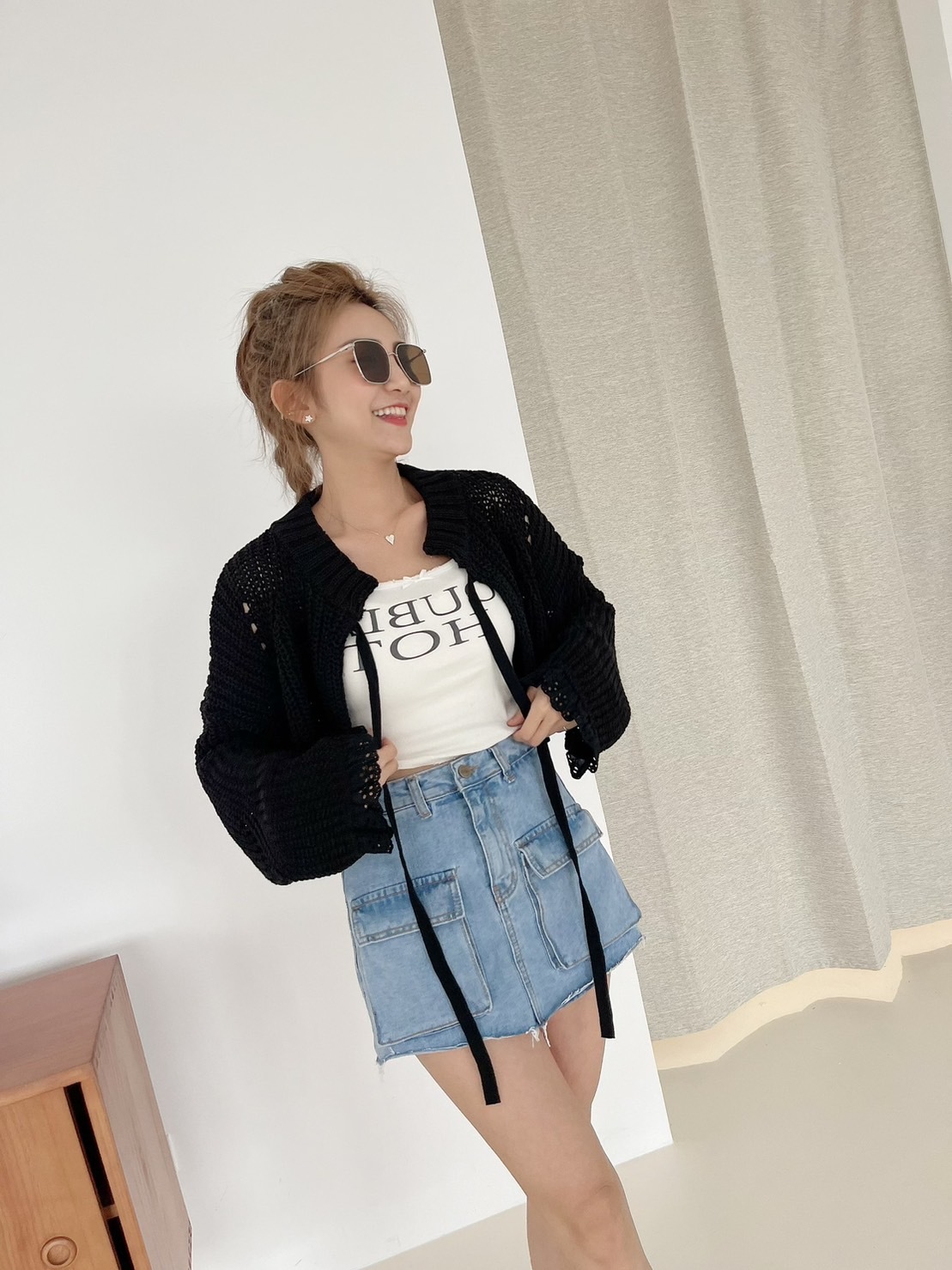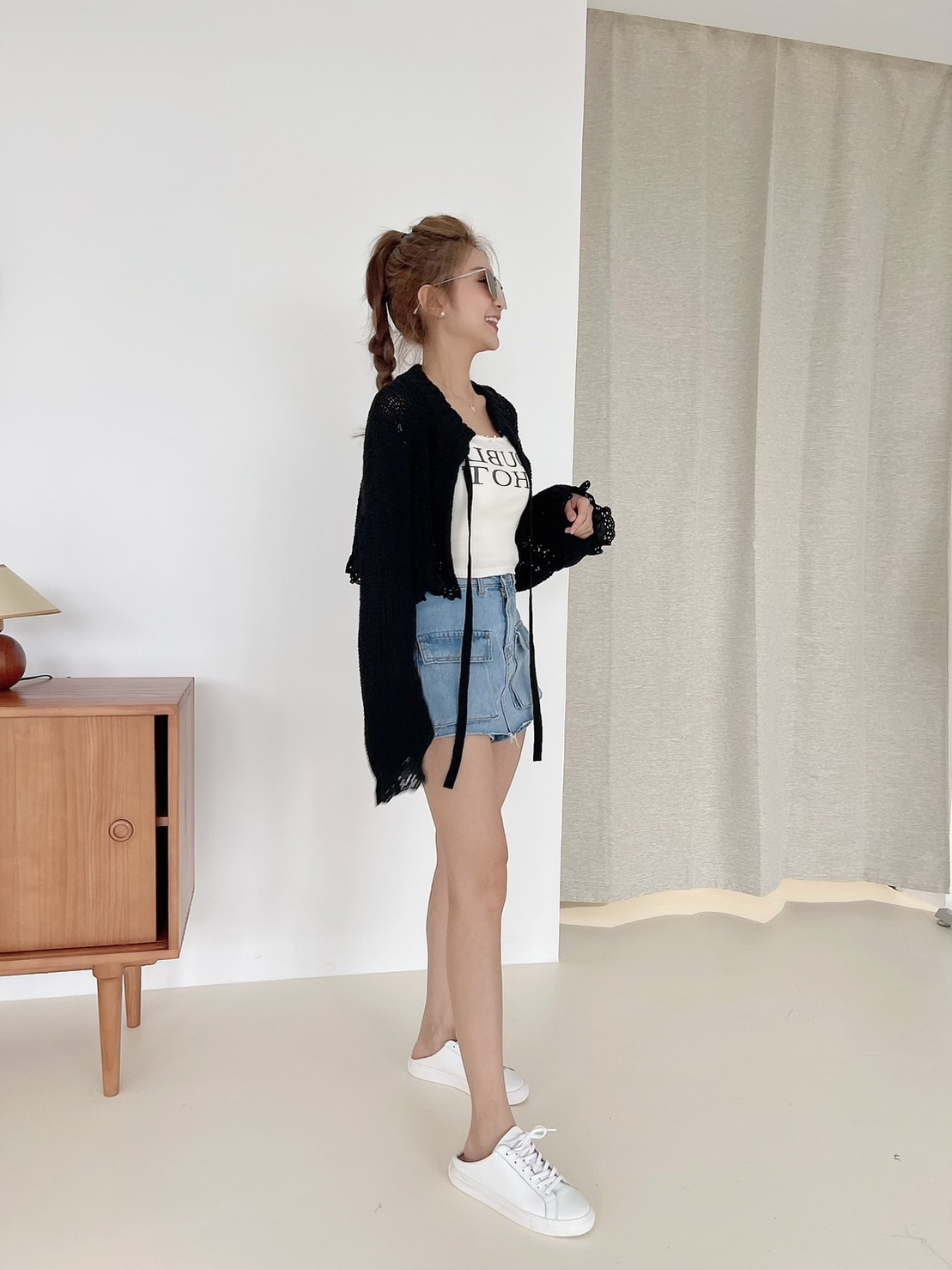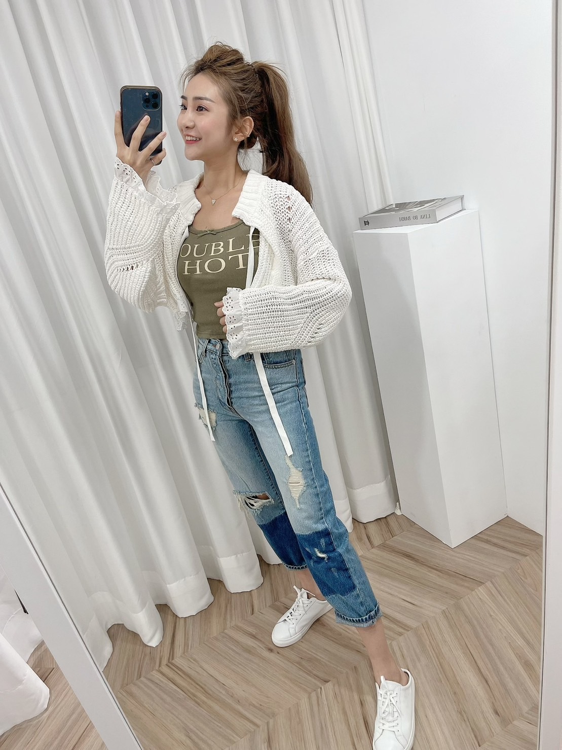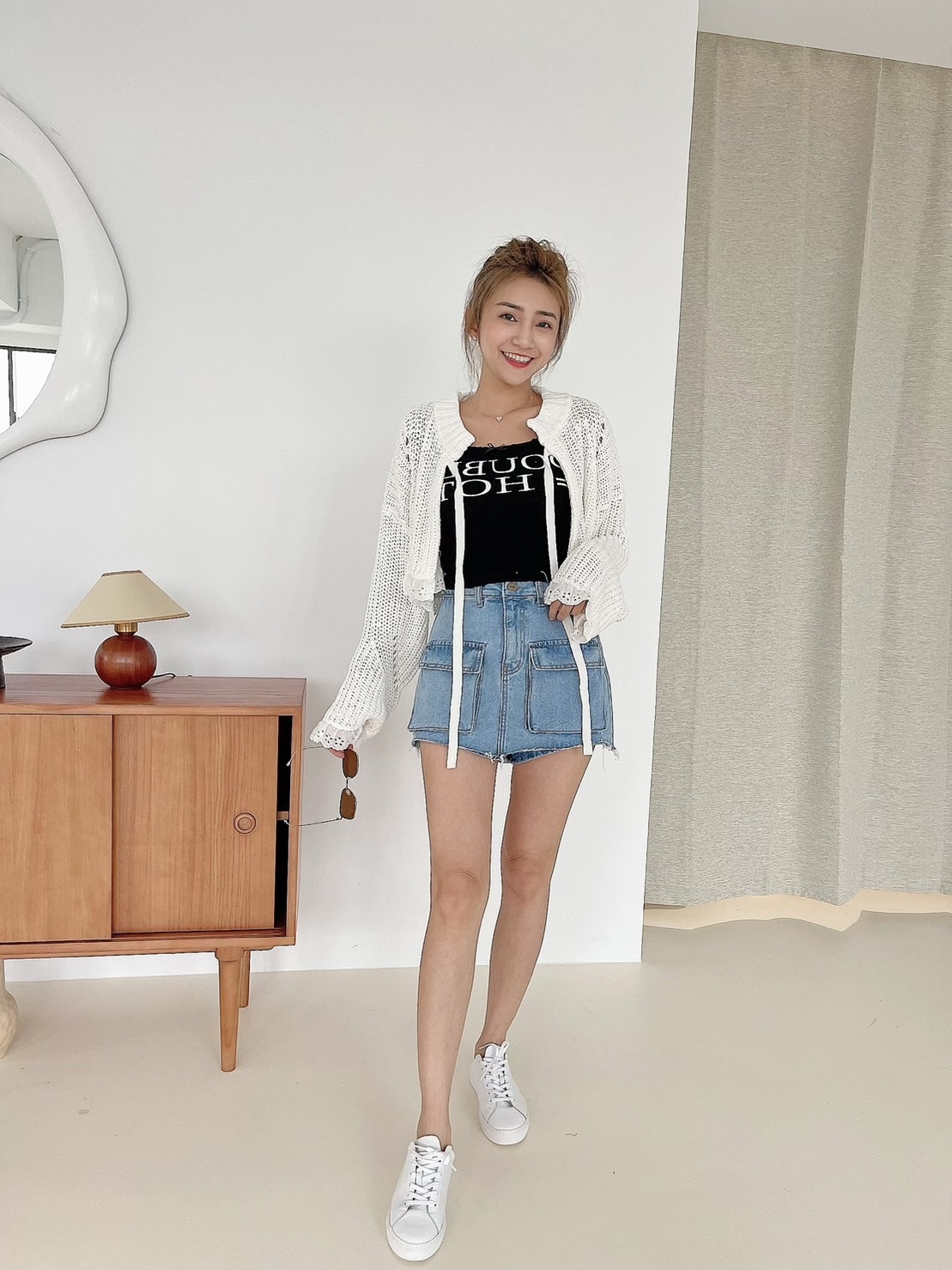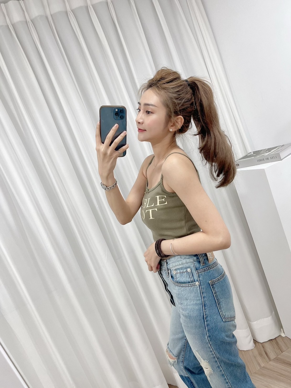 🔥03.22直播新品]🇰🇷正韓超可愛蝴蝶結美式英文字超彈刷破合身螺紋棉背心(三色)