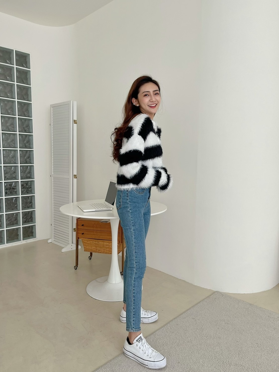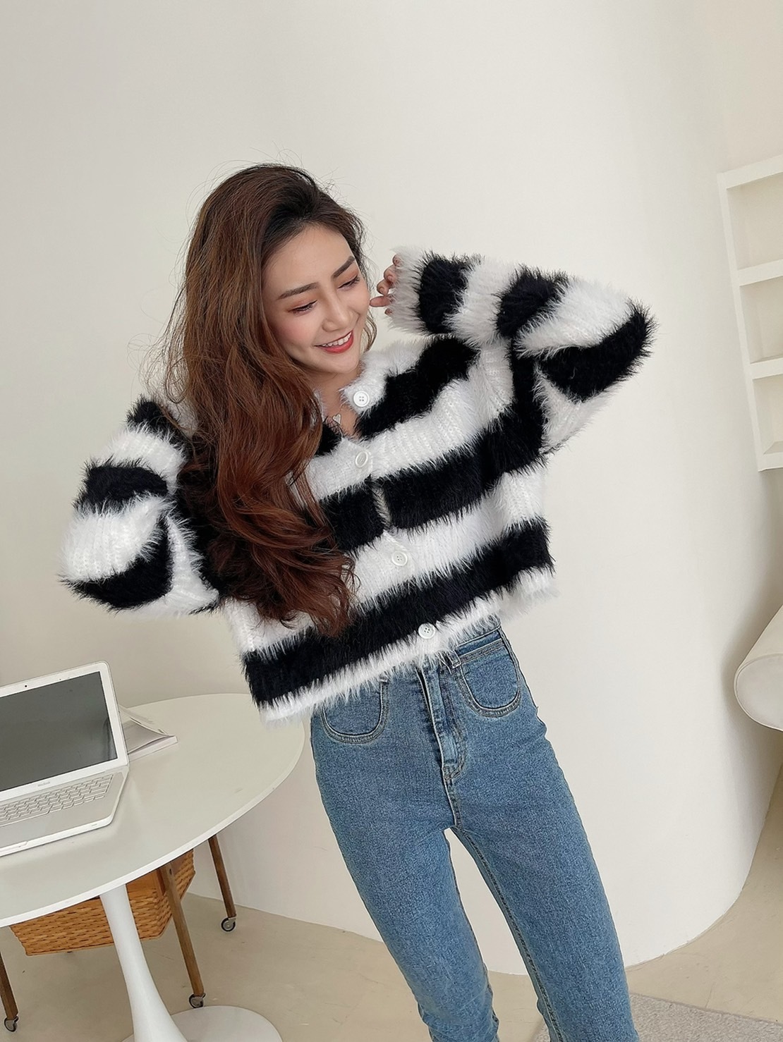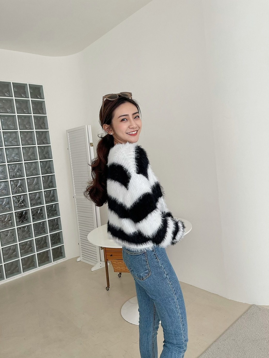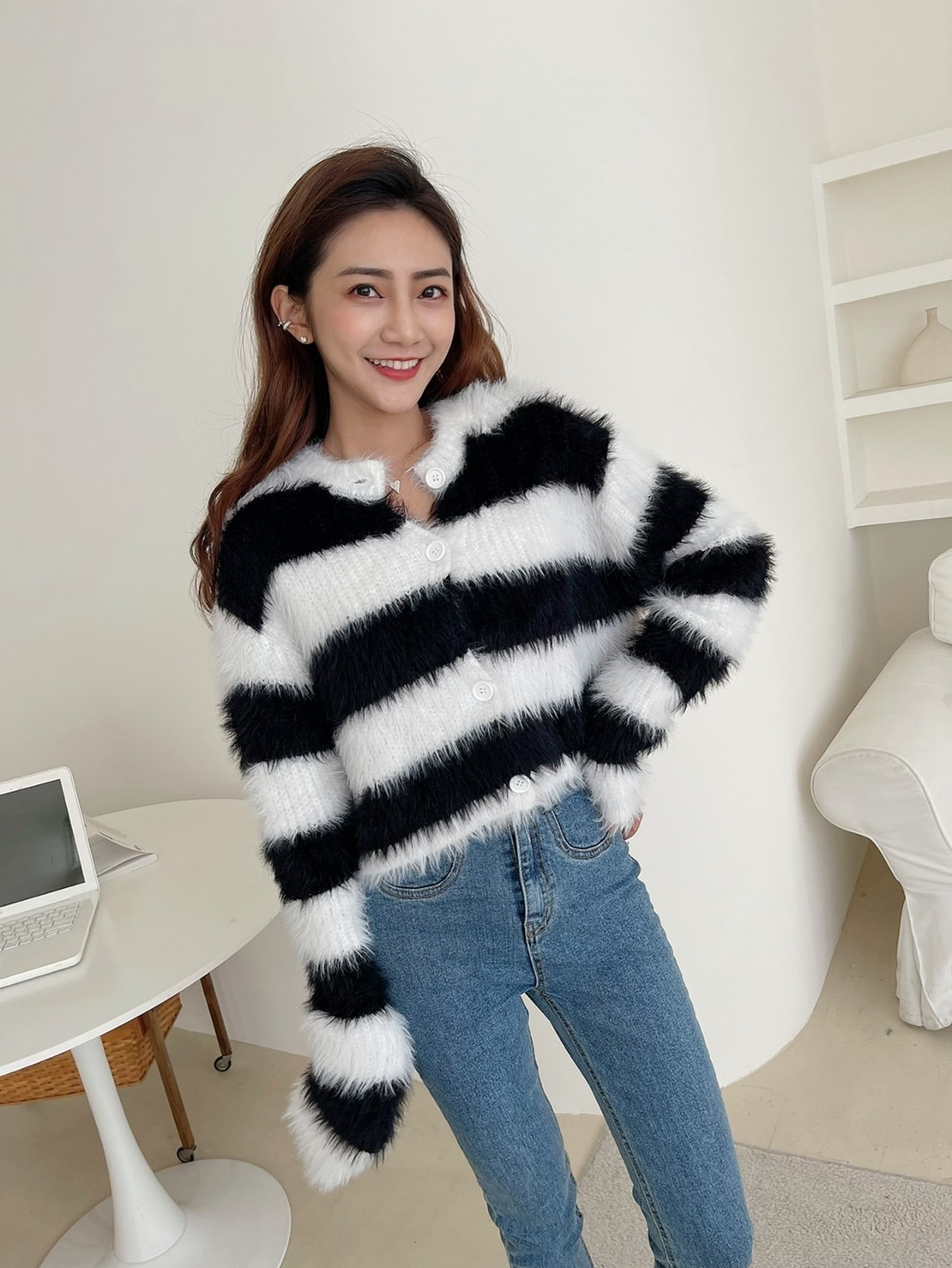 🔥03.23直播新品]💥連路人都在問]🇰🇷正韓超美超舒服馬海毛經典條紋小外套(黑白條紋色/兩色,可當上衣穿)