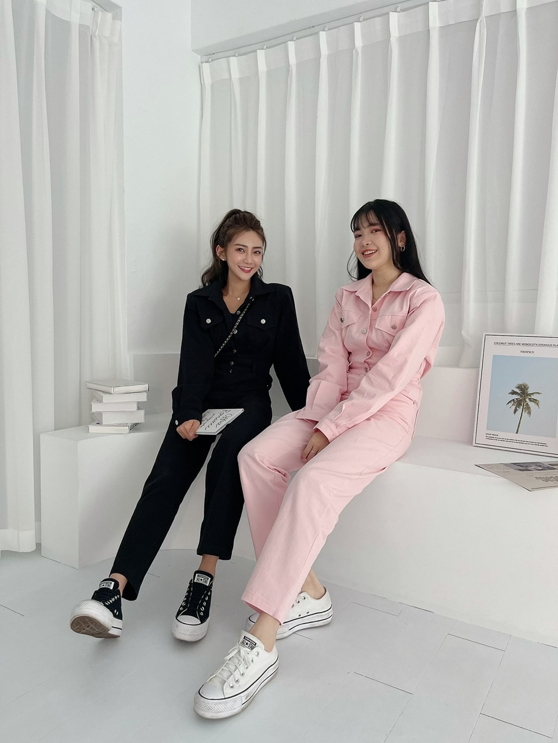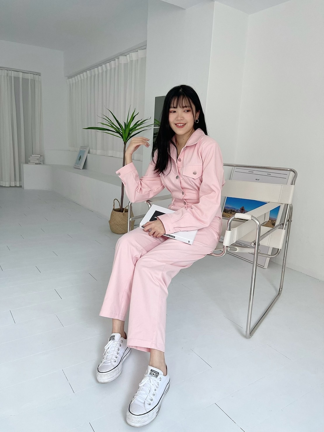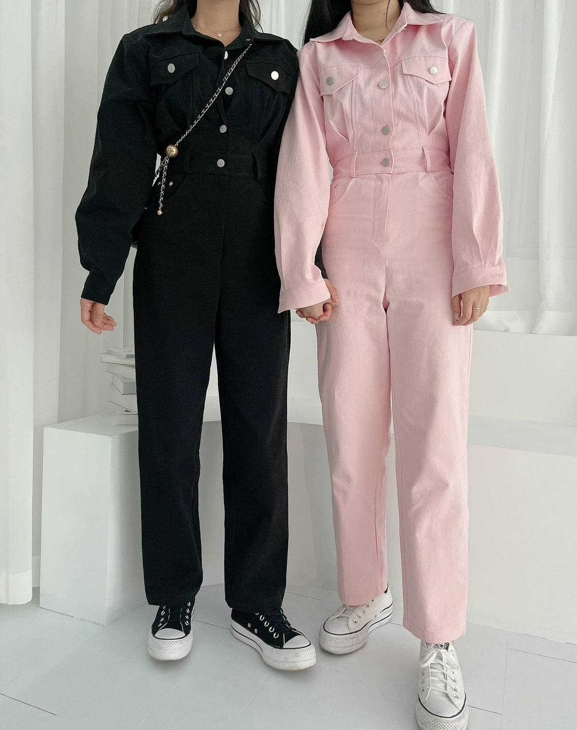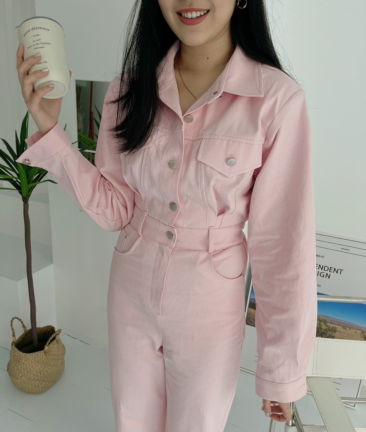 🔥04.20直播新品]💥懶人首選款]🇰🇷正韓超可愛工裝微墊肩連身上衣(白、粉/三色)