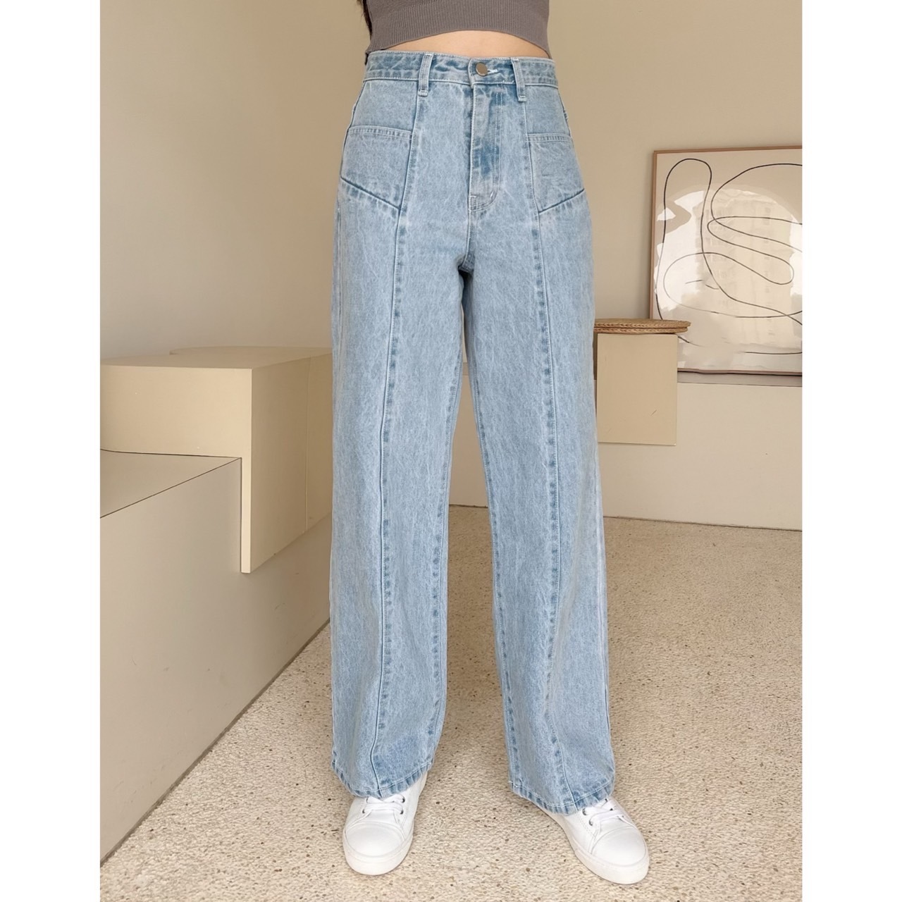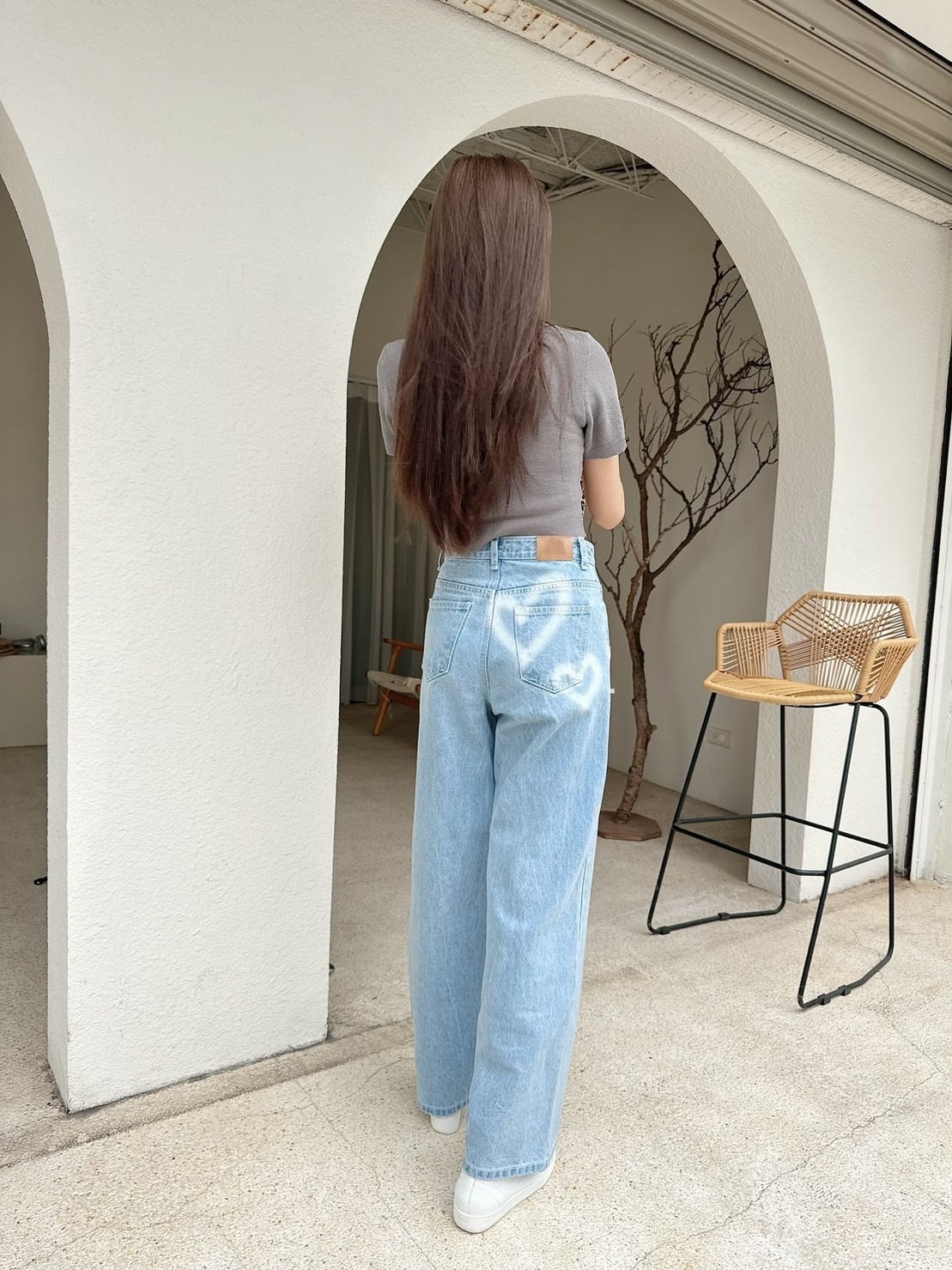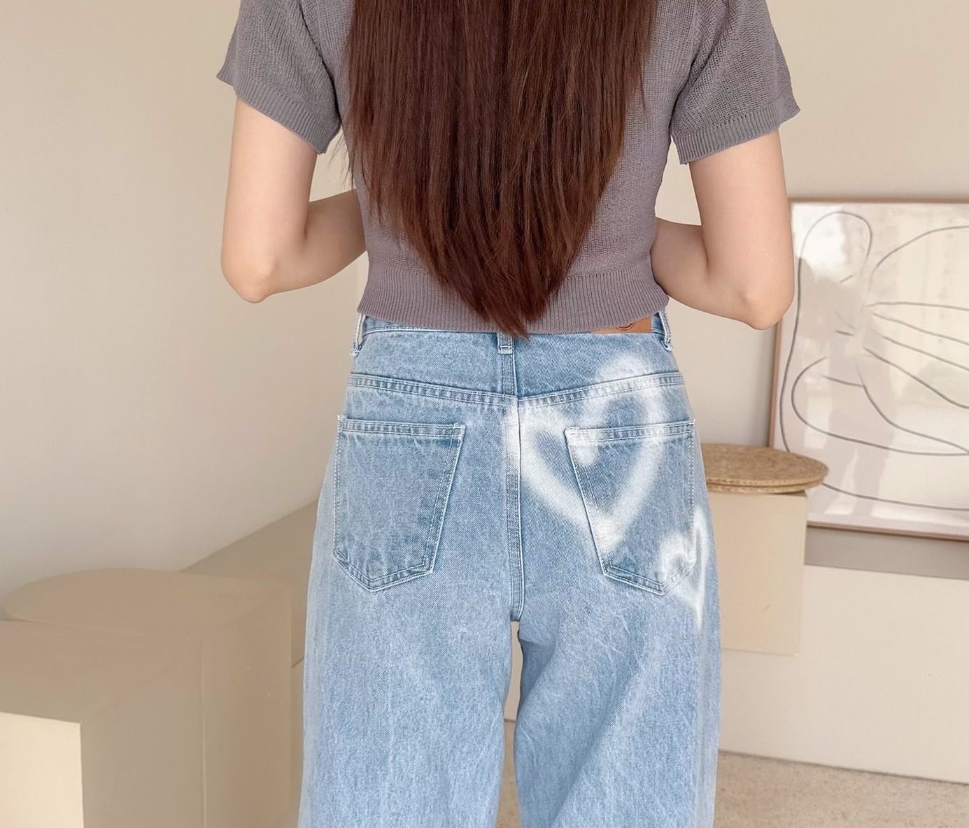 [預購]🔥04.24春夏新品]💥美到連路人都在問的愛心牛仔褲]🇰🇷正韓高腰中車線挺版直腿愛心牛仔寬褲(SML牛仔藍/兩色)