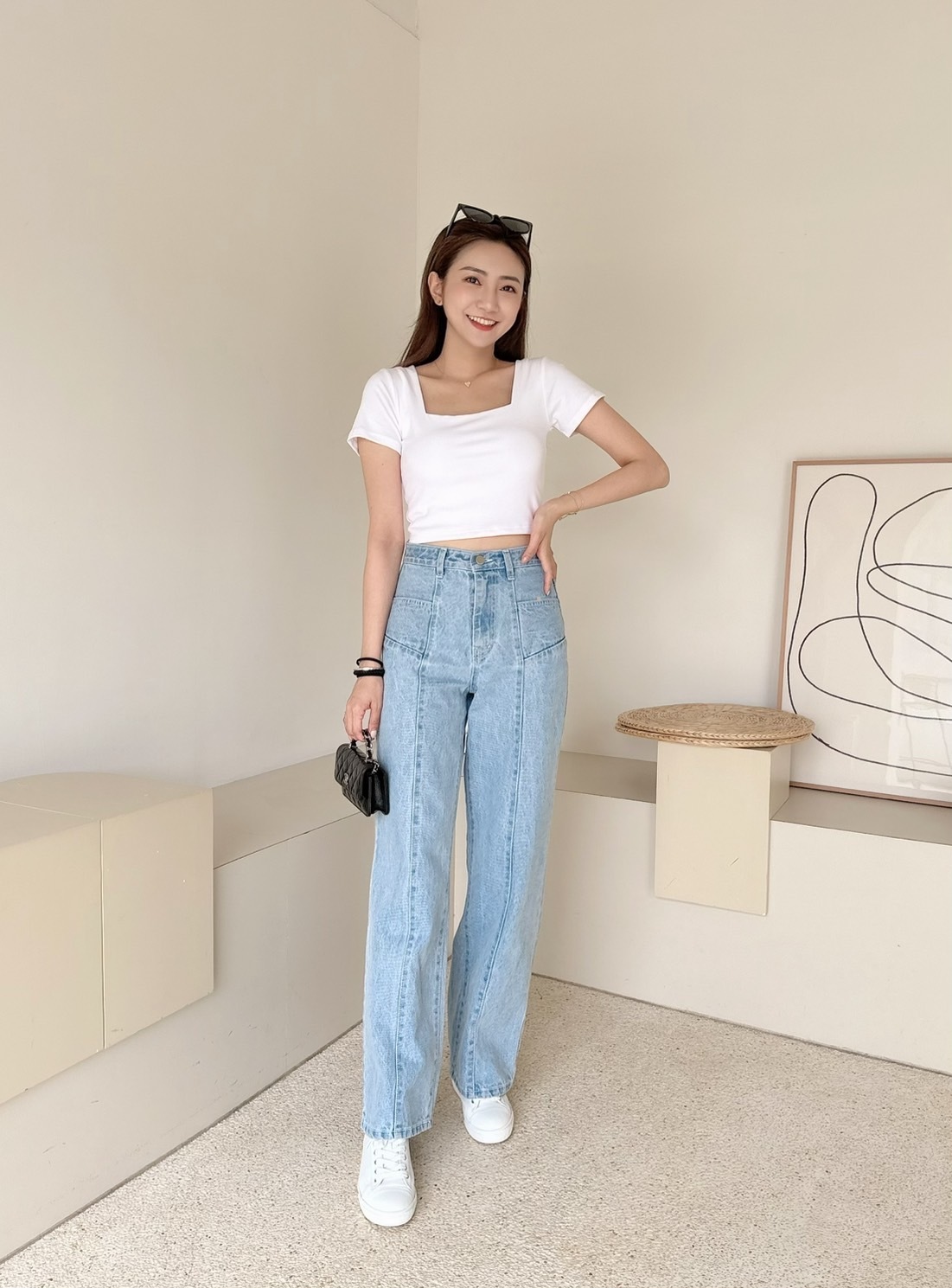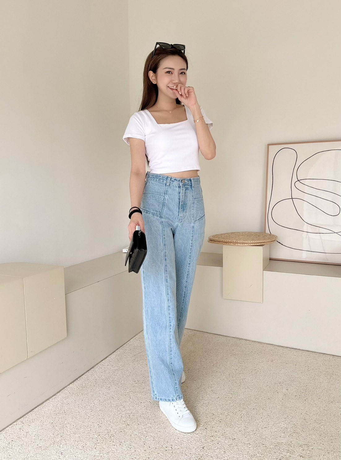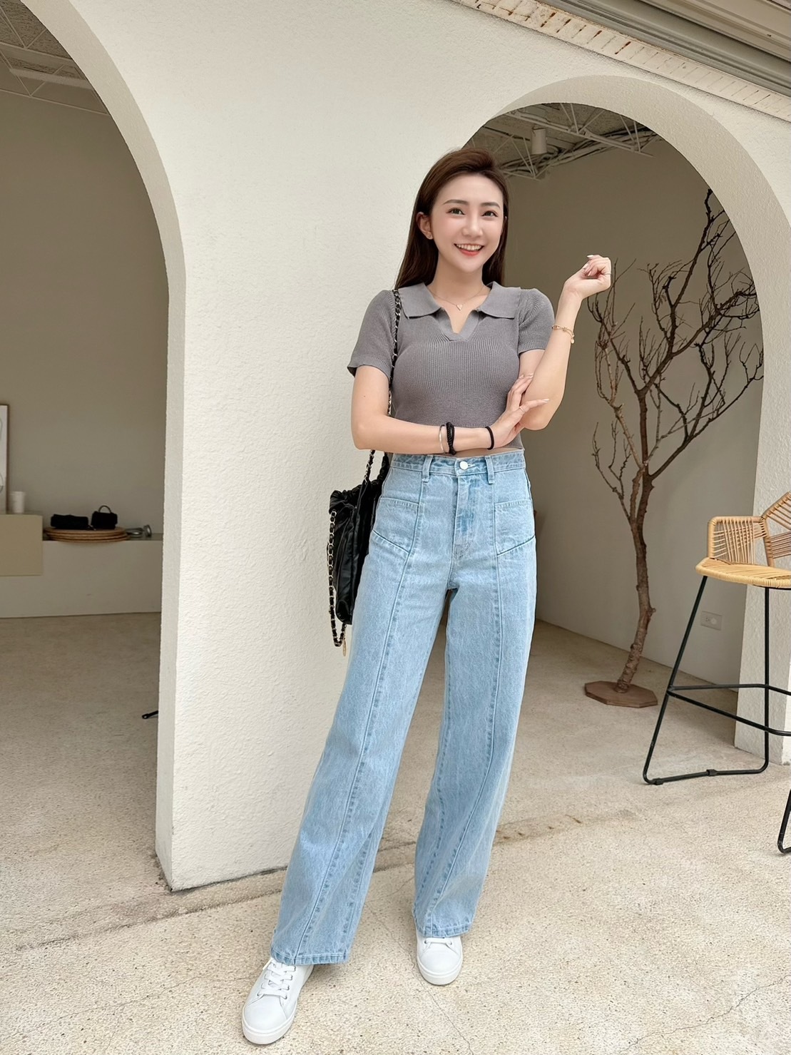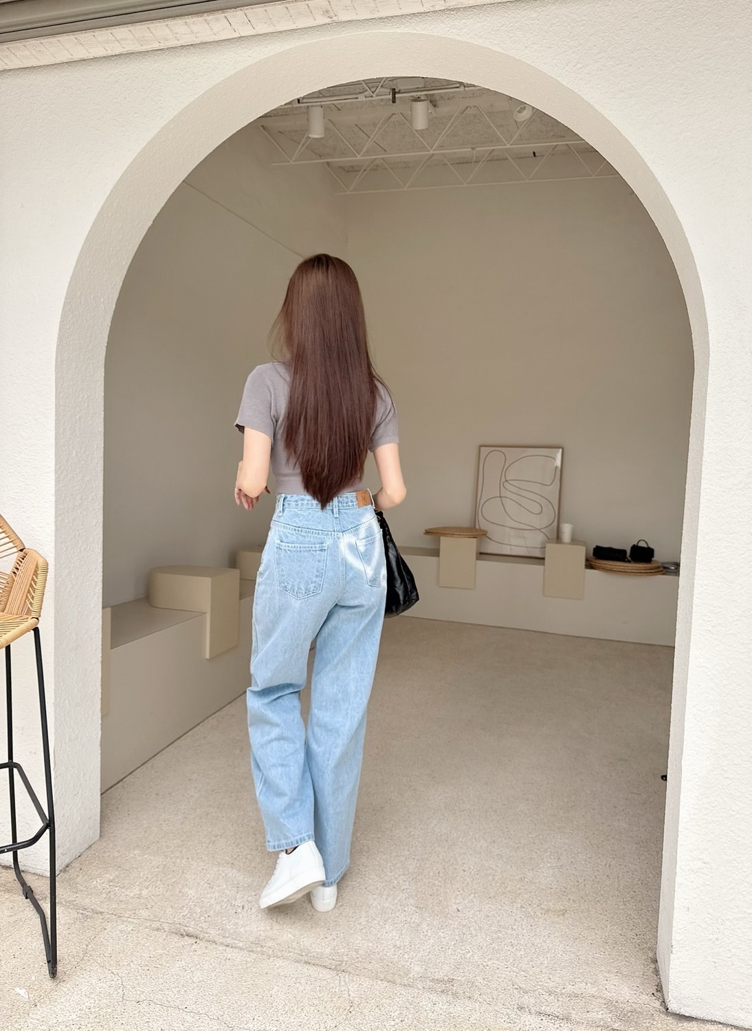 [預購]🔥04.24春夏新品]💥美到連路人都在問的愛心牛仔褲]🇰🇷正韓高腰中車線挺版直腿愛心牛仔寬褲(SML牛仔藍/兩色)