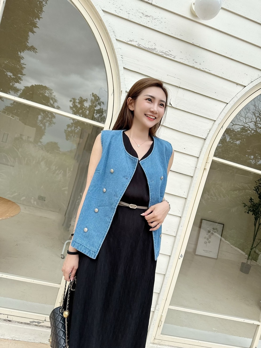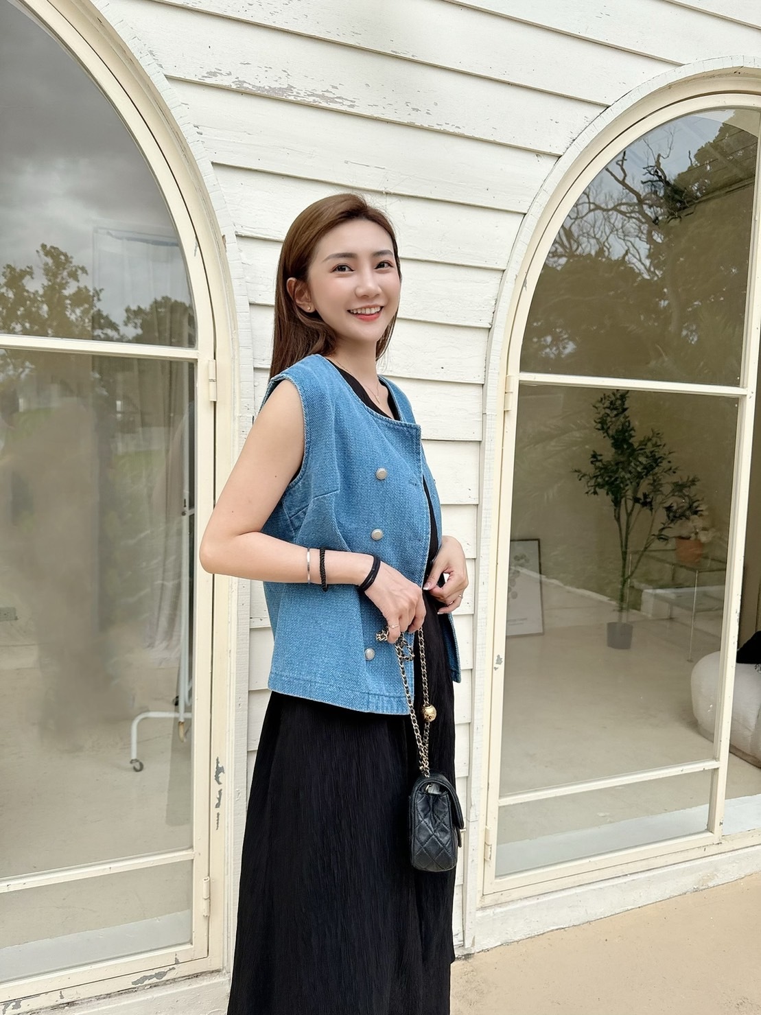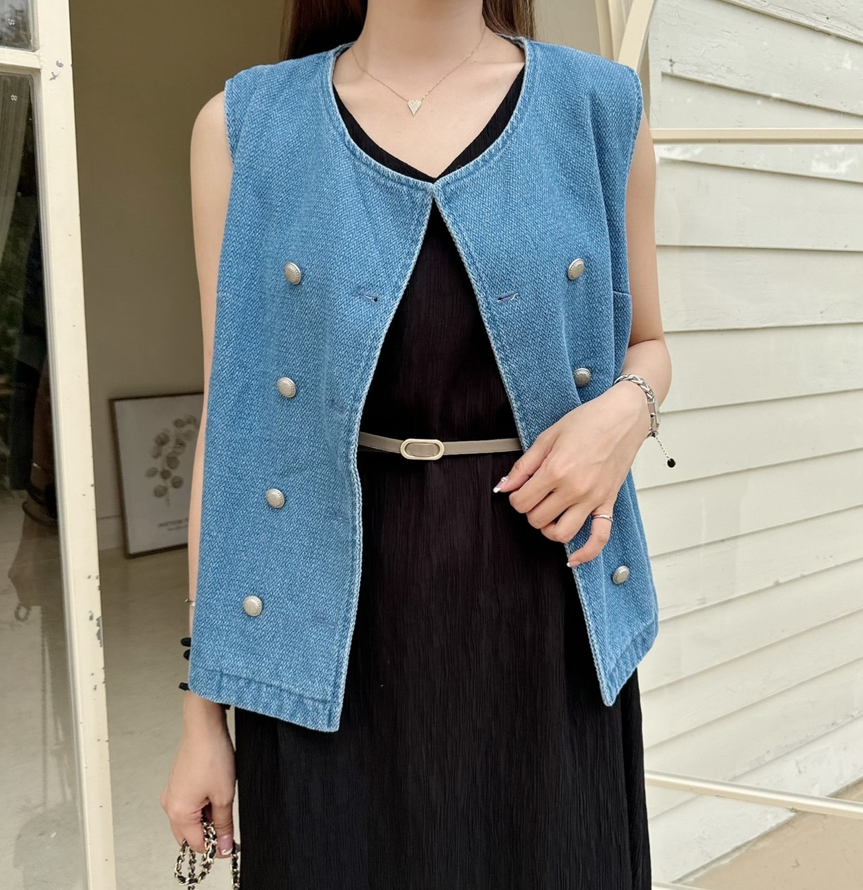 [預購]🔥05.08春夏新品]💥必收小香]🇰🇷正韓自訂款超美銀釦薄款牛仔小香背心