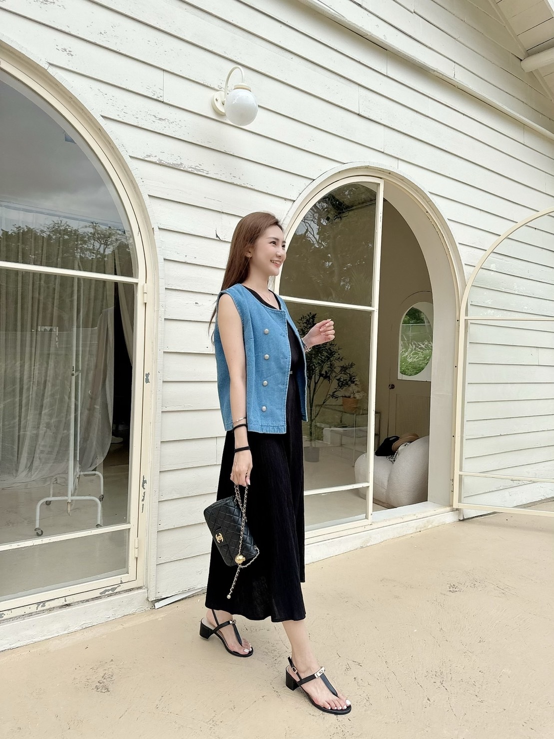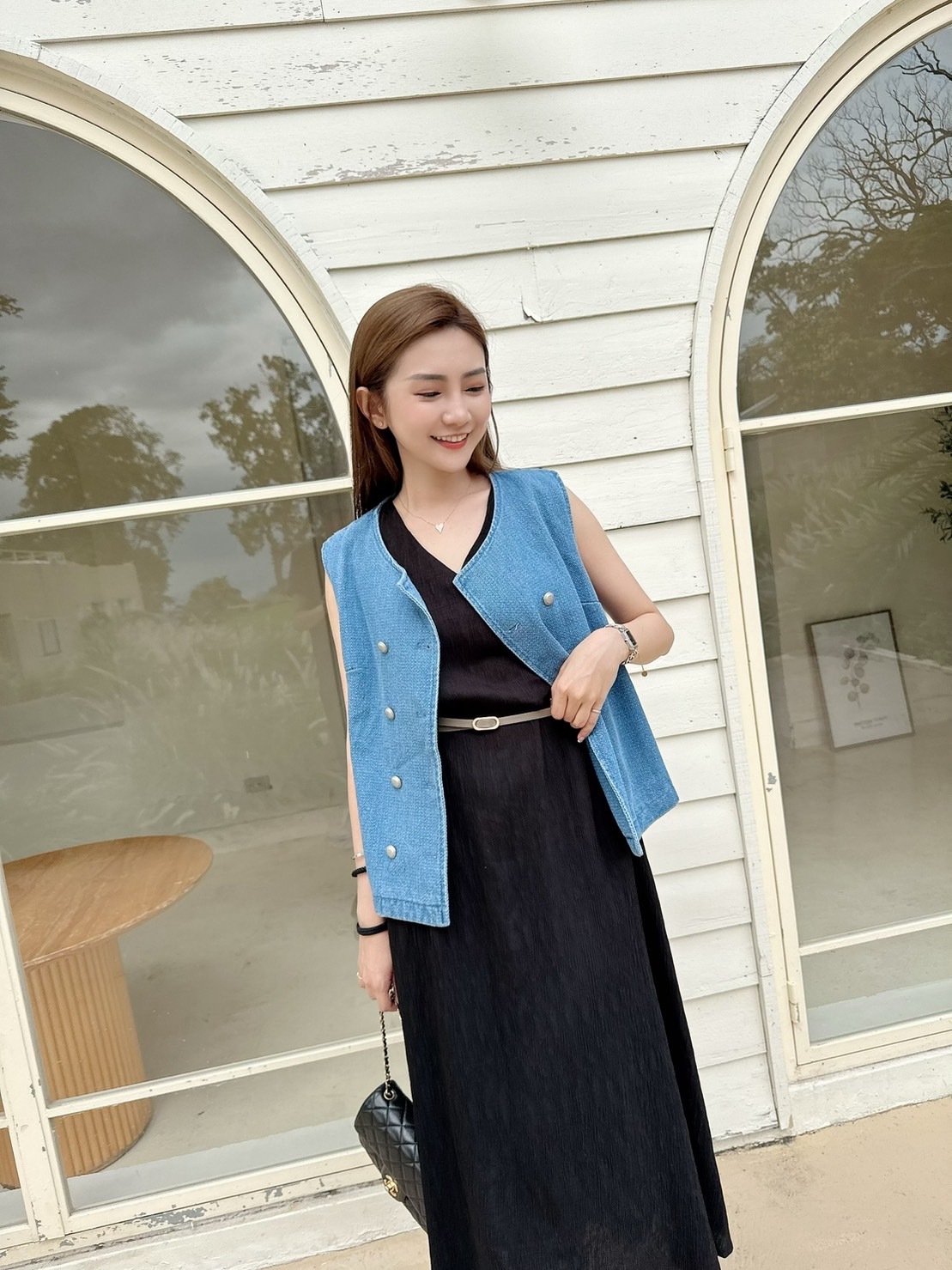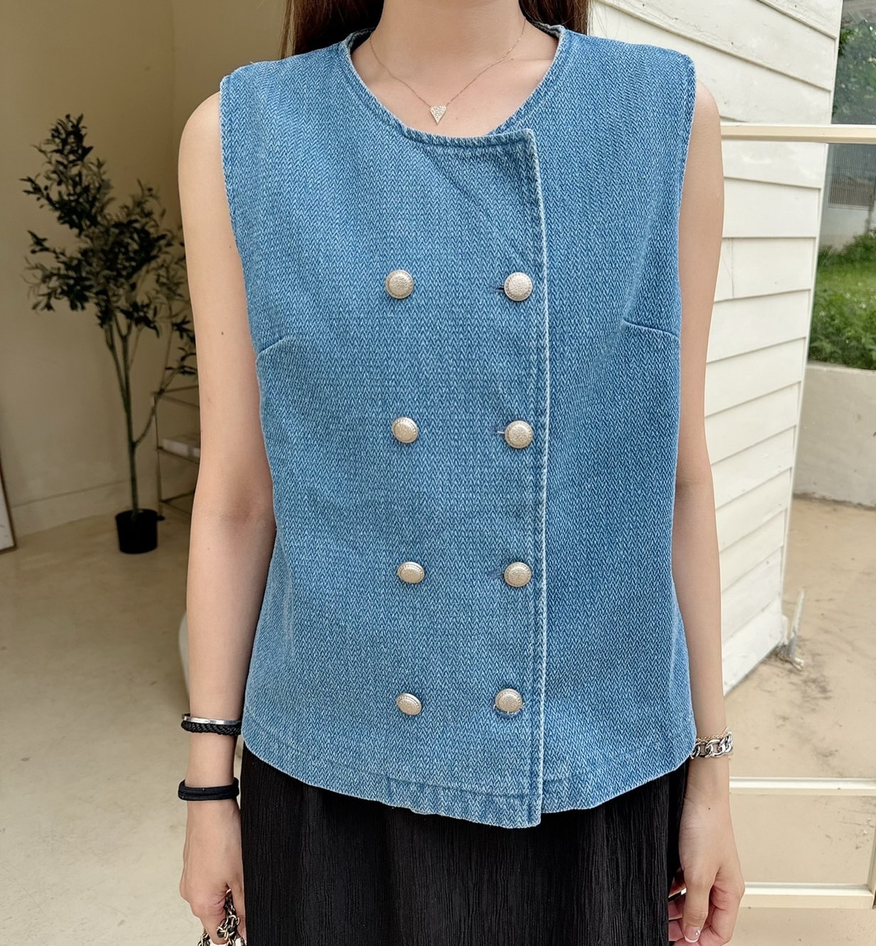 [預購]🔥05.08春夏新品]💥必收小香]🇰🇷正韓自訂款超美銀釦薄款牛仔小香背心