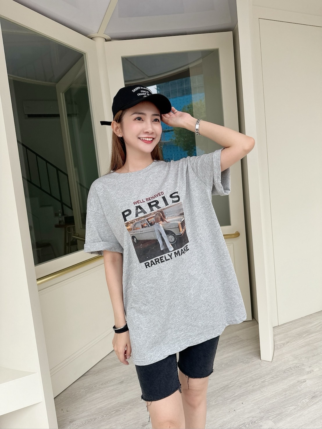 [預購]🔥05.29春夏新品]💓闆娘ㄉ最愛]🇰🇷正韓印花Paris寬鬆透氣棉上衣(必收灰/兩色)