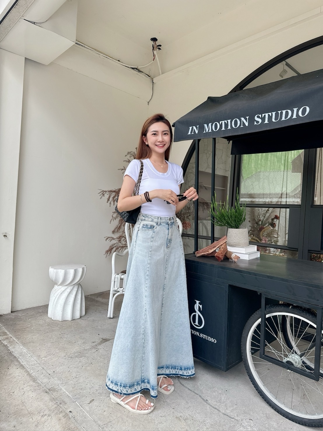[現貨]🔥06.12春夏新品]💕小編暴動款]🇰🇷正韓中腰超美復古漸層牛仔半裙(SM)