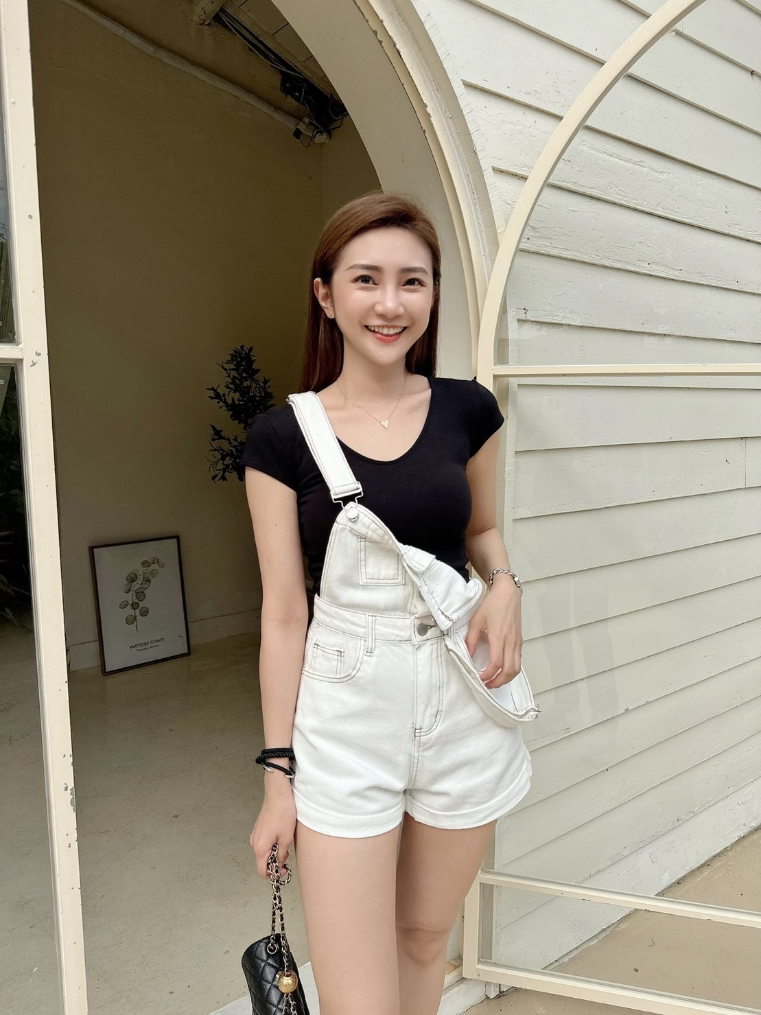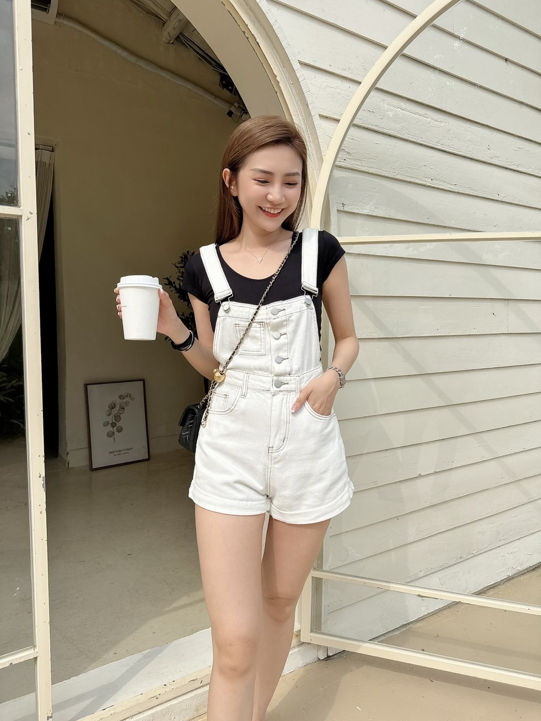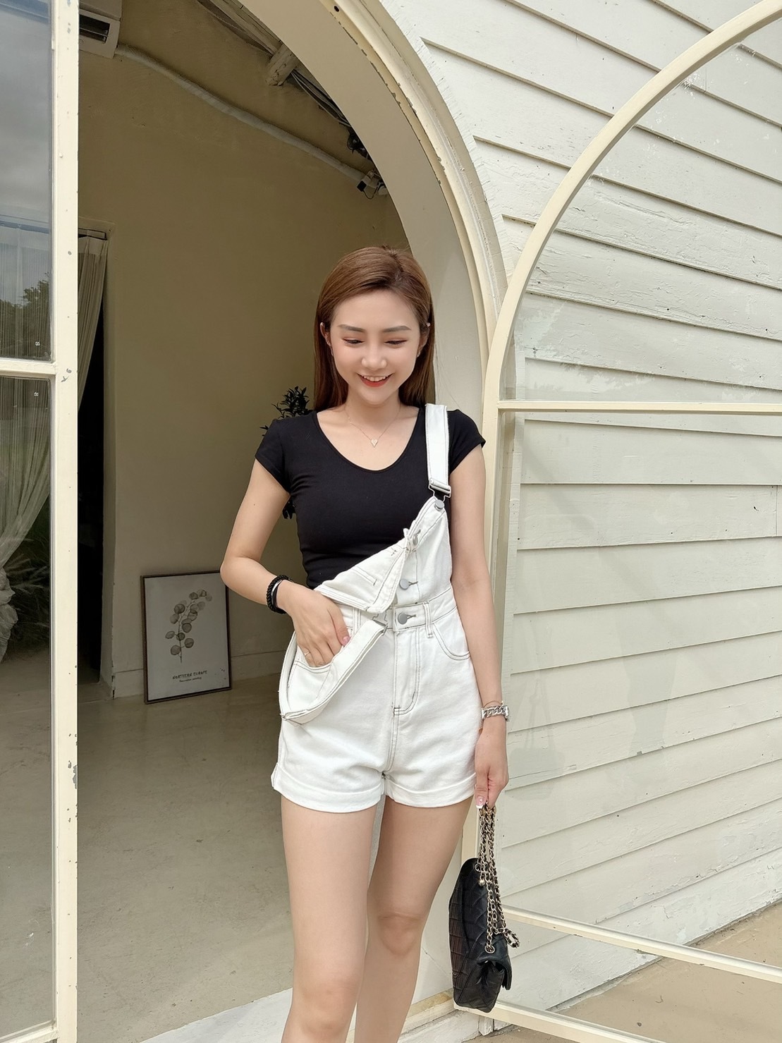 [預購]🔥05.08春夏新品]💥夏天必須要有它]韓版超可愛減齡褲口反折吊帶短褲(SM牛仔白/兩色)