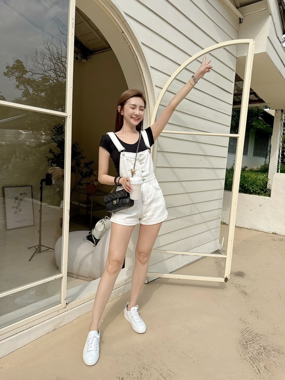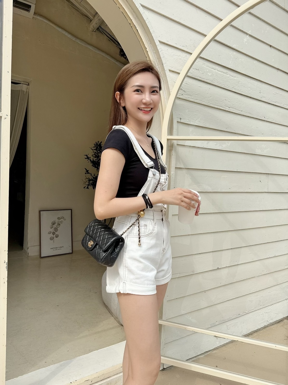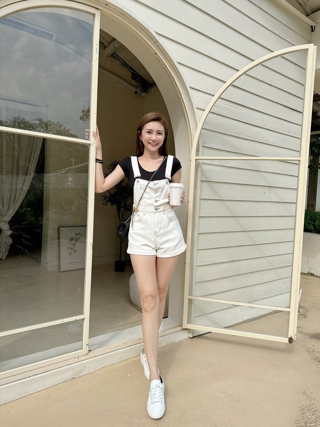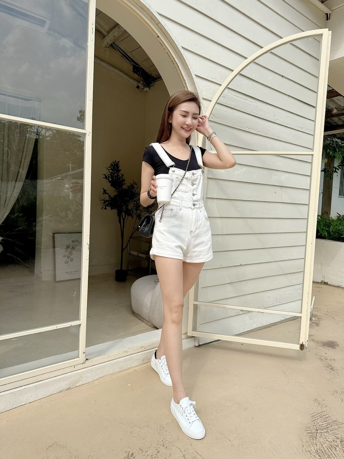 [預購]🔥05.08春夏新品]💥夏天必須要有它]韓版超可愛減齡褲口反折吊帶短褲(SM牛仔白/兩色)