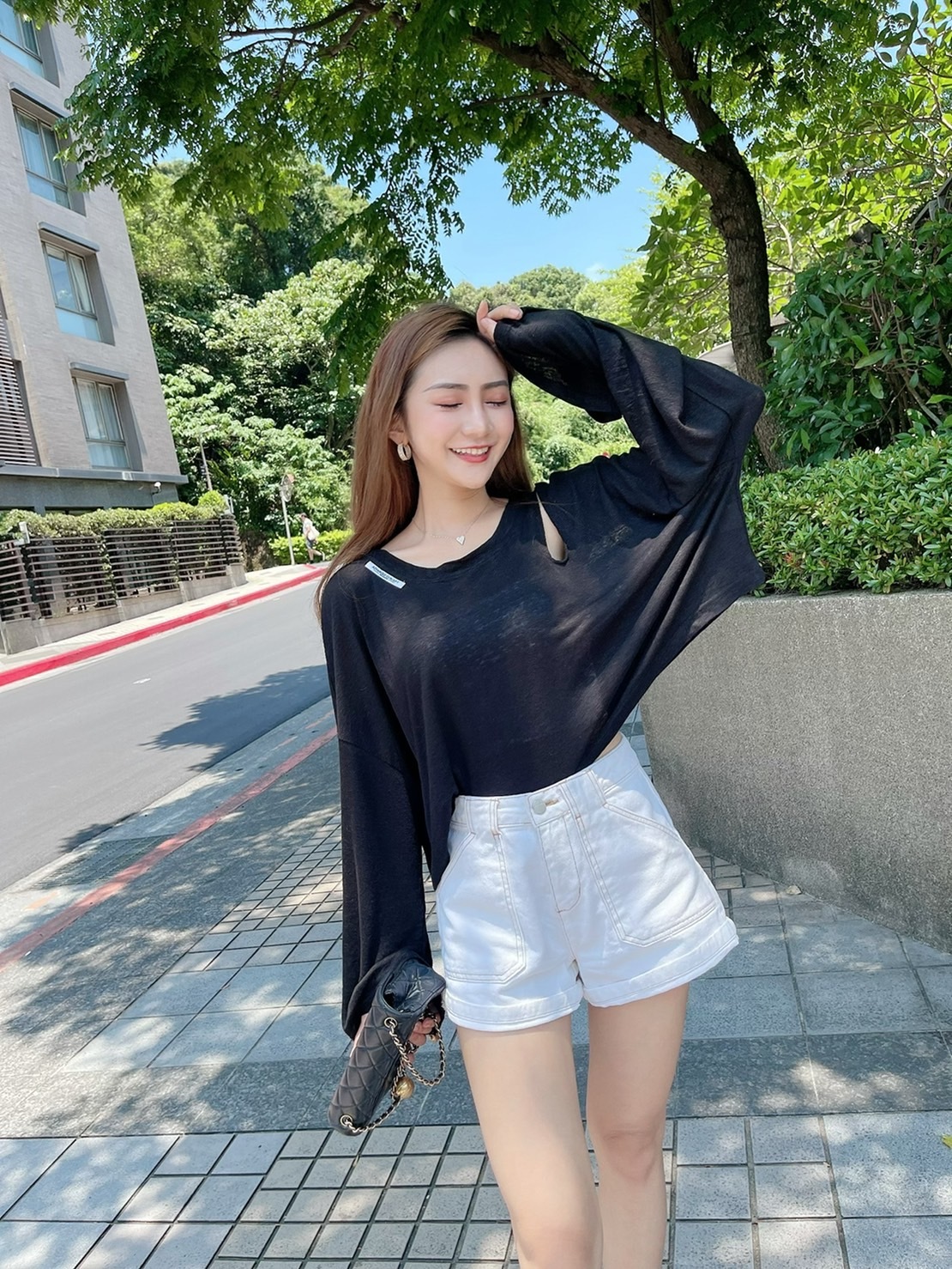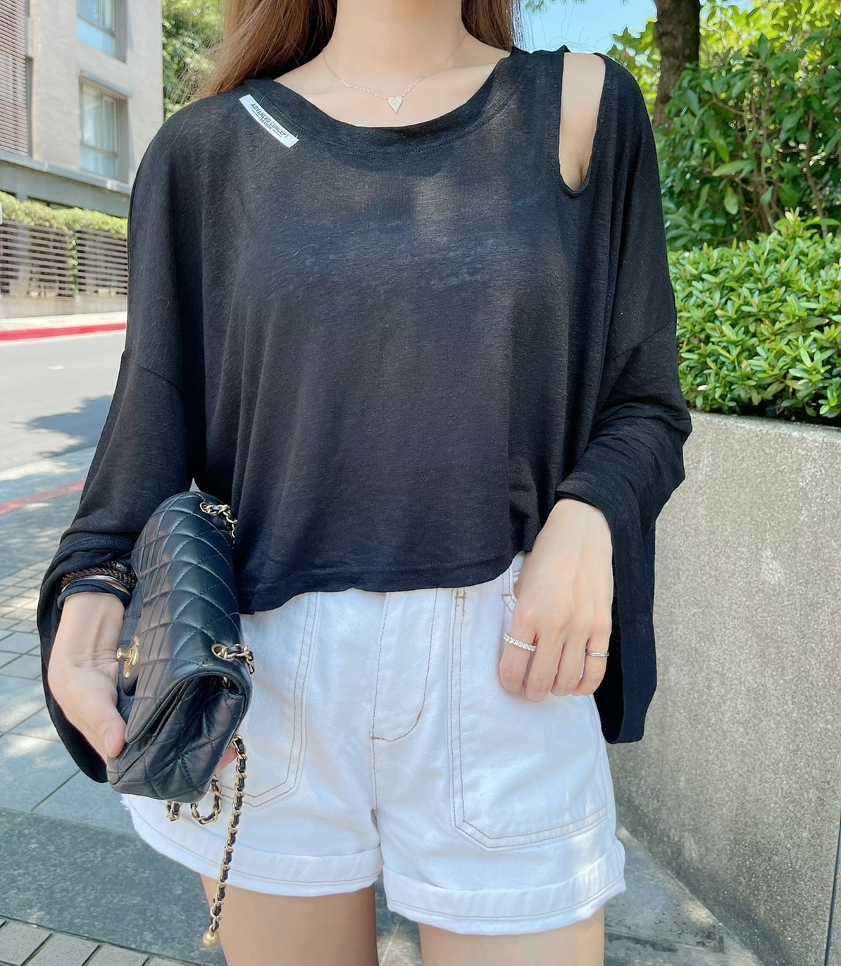🔥06.29直播新品]💥夏天必收它]🇰🇷正韓超薄左挖肩透視感英文logo寬鬆防曬衣(質感黑/兩色)