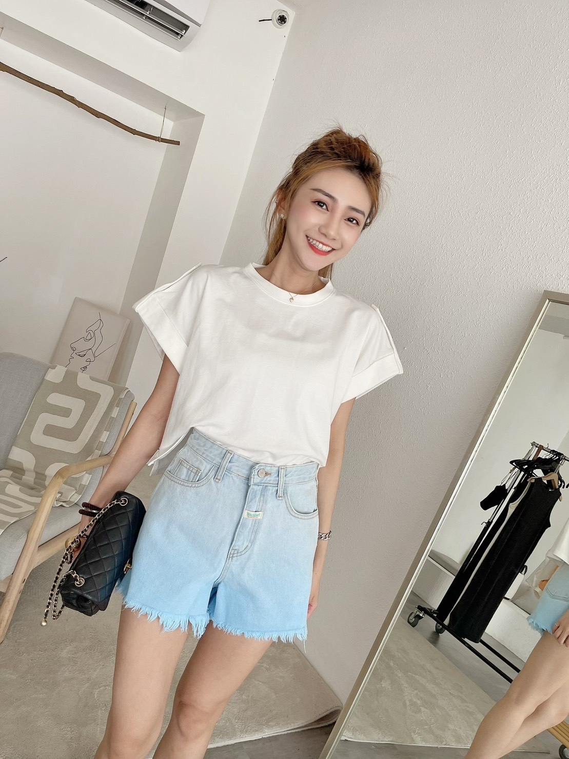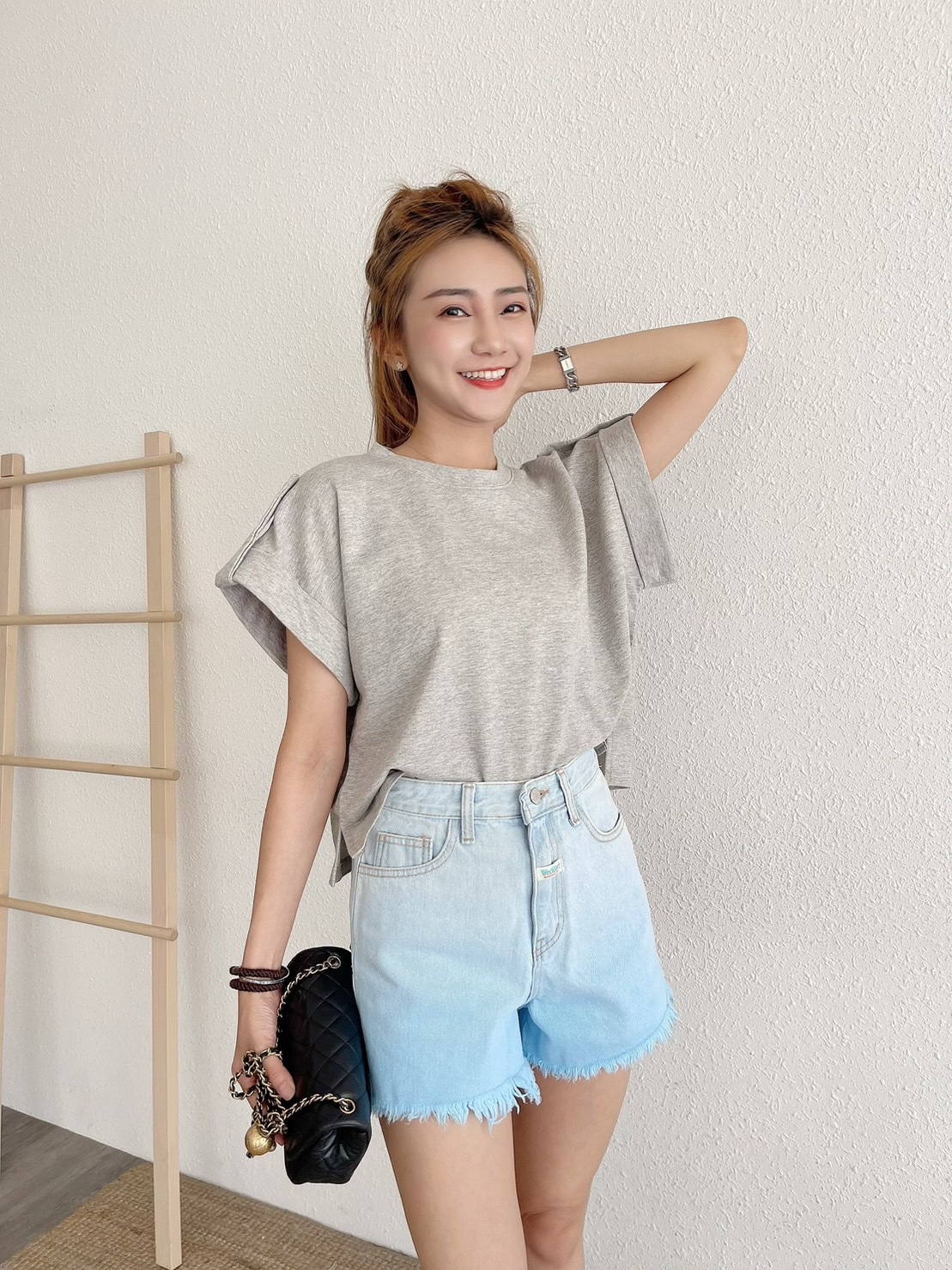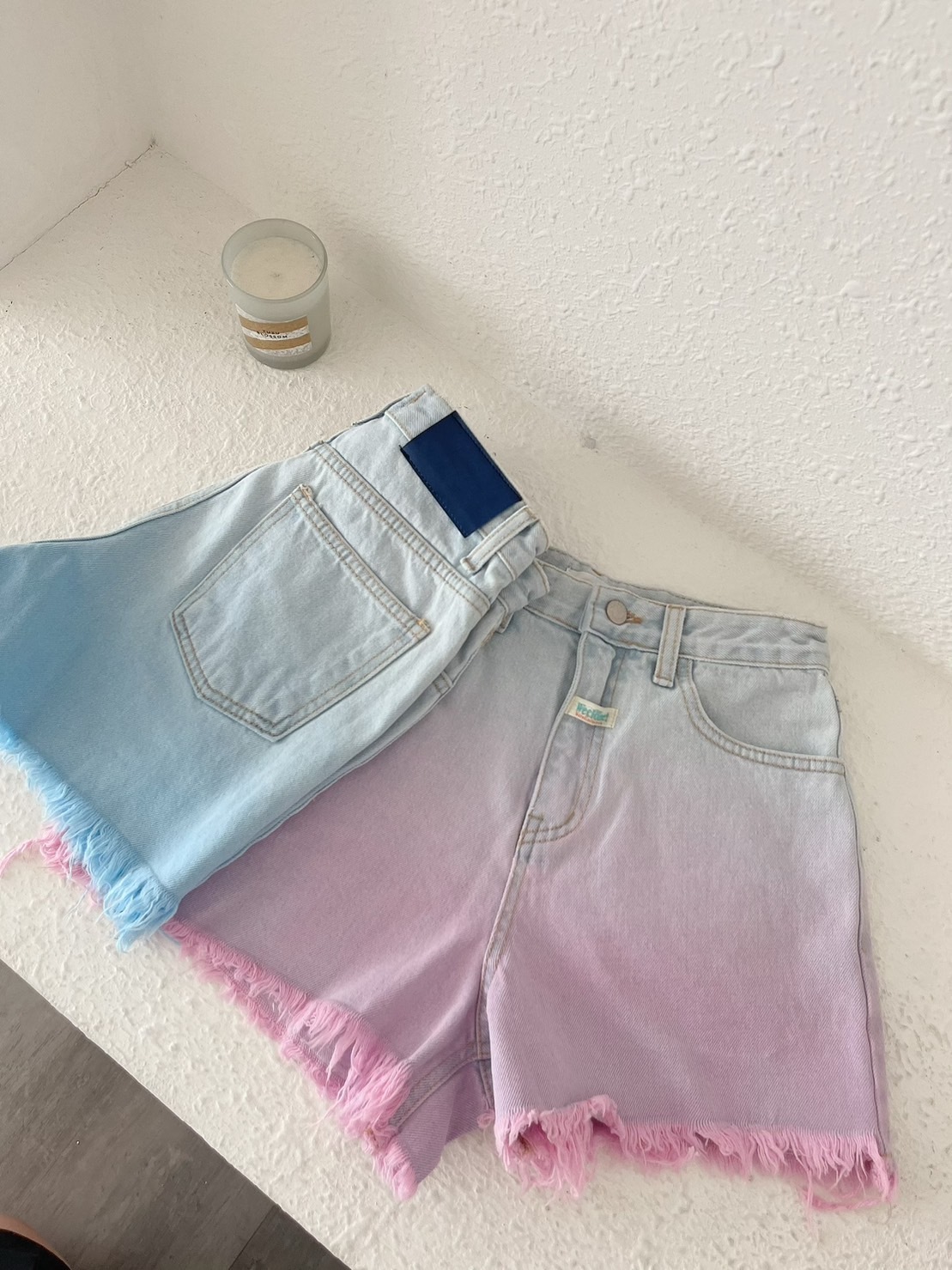 🔥07.26直播新品]💥最有特色ㄉ短褲]🇰🇷正韓中高腰超美手工漸層鬚邊牛仔短褲(S-L漸層藍/兩色)