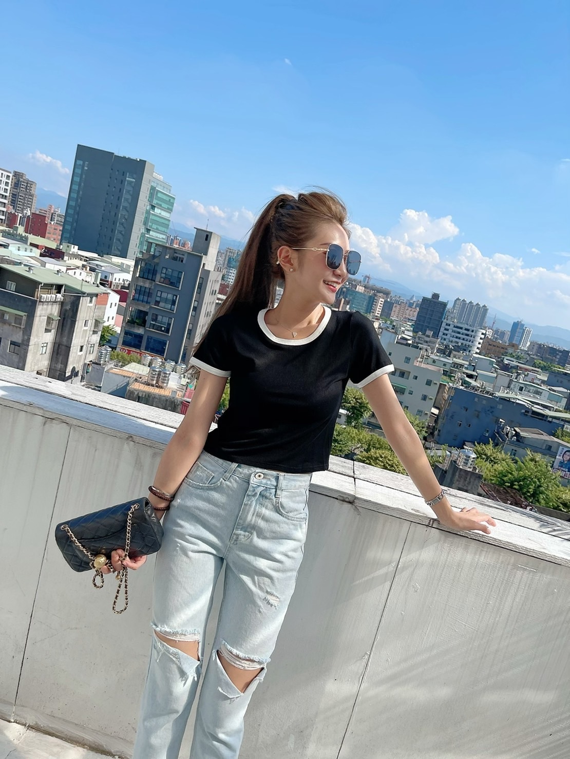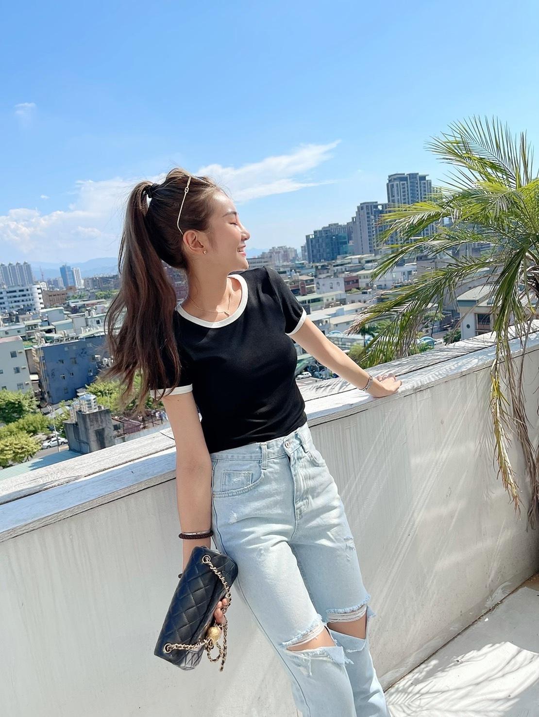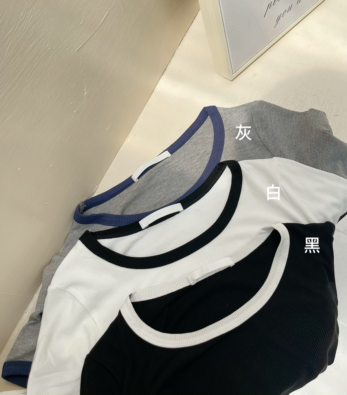 🔥07.27直播新品]♥️必收~可愛T]韓版圓領超可愛超彈撞色螺紋棉上衣(三色)