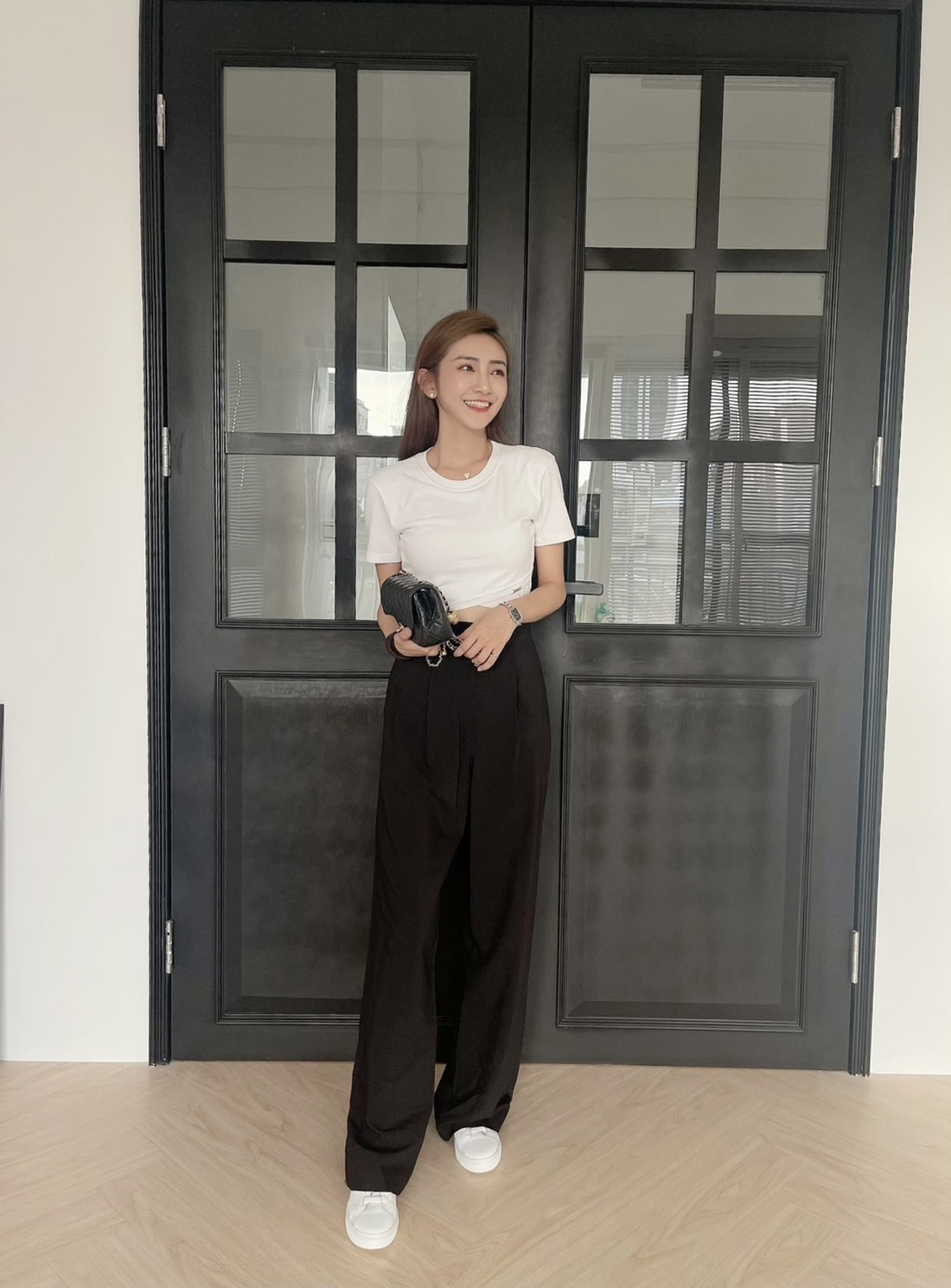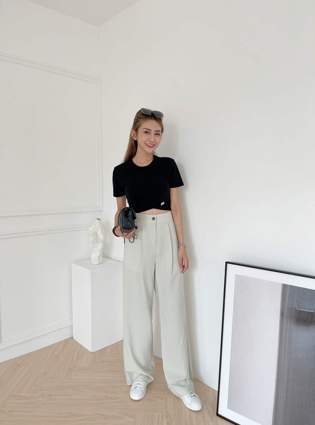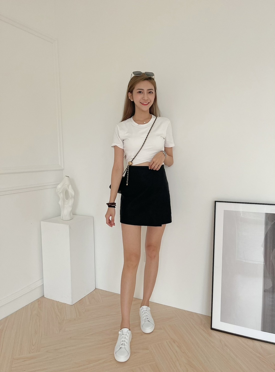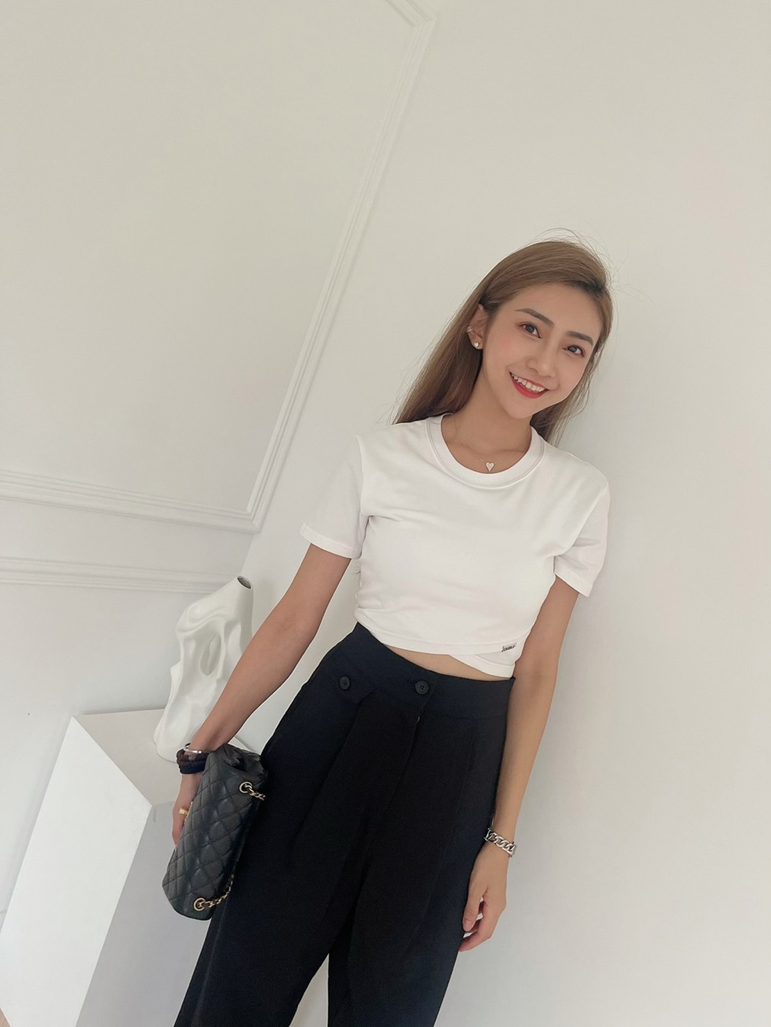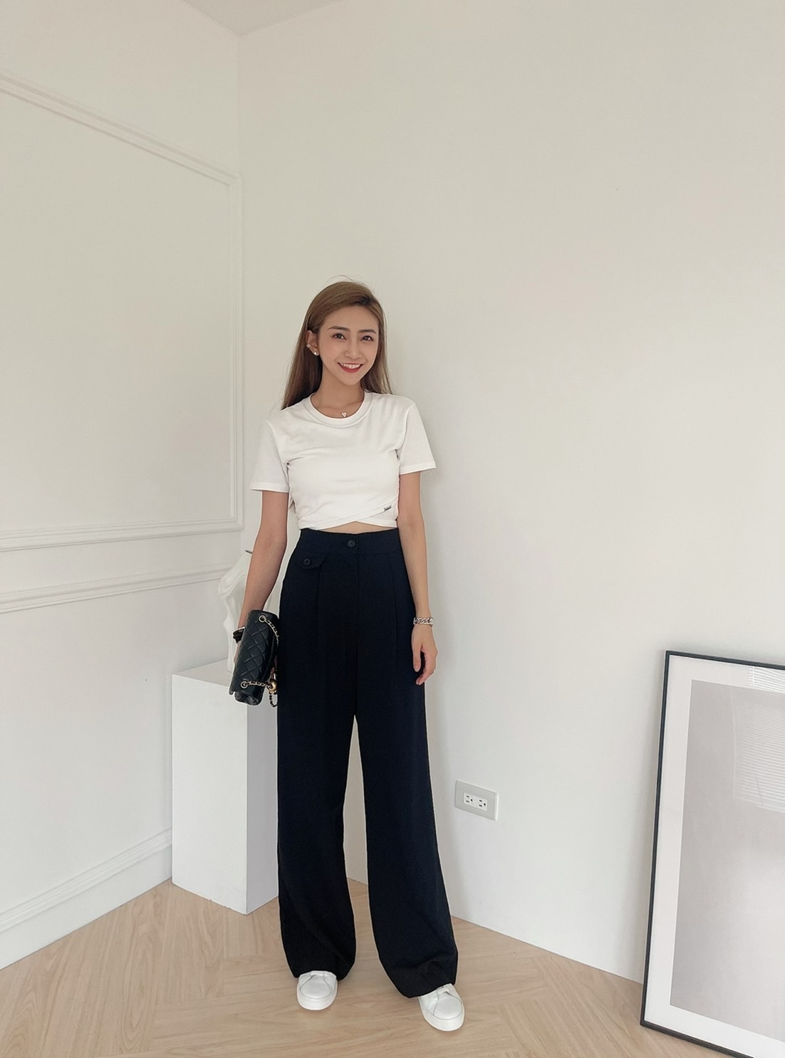 🍁08.17直播新品]💕簡約又百搭]🇰🇷正韓超彈前交叉側logo透氣棉上衣(可愛白/兩色)