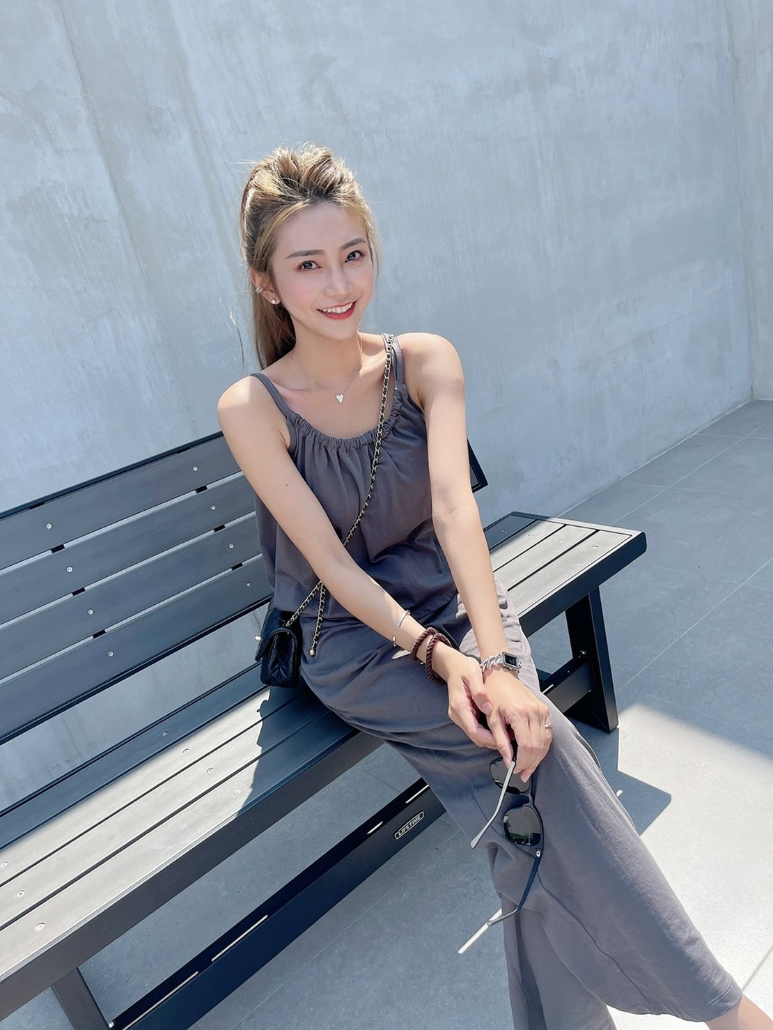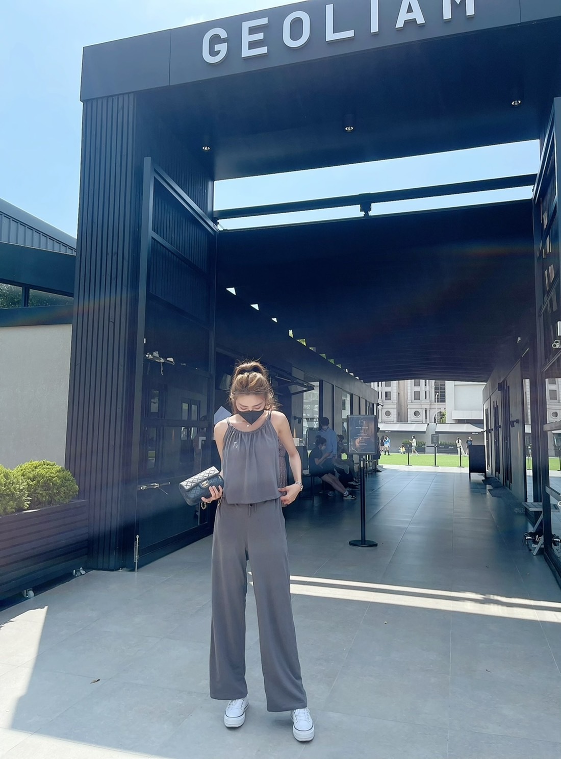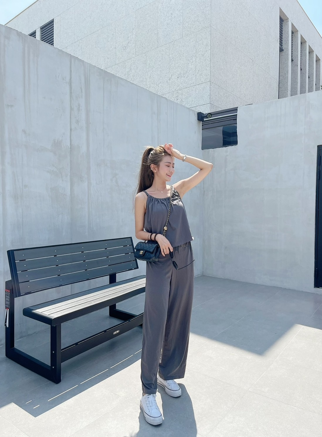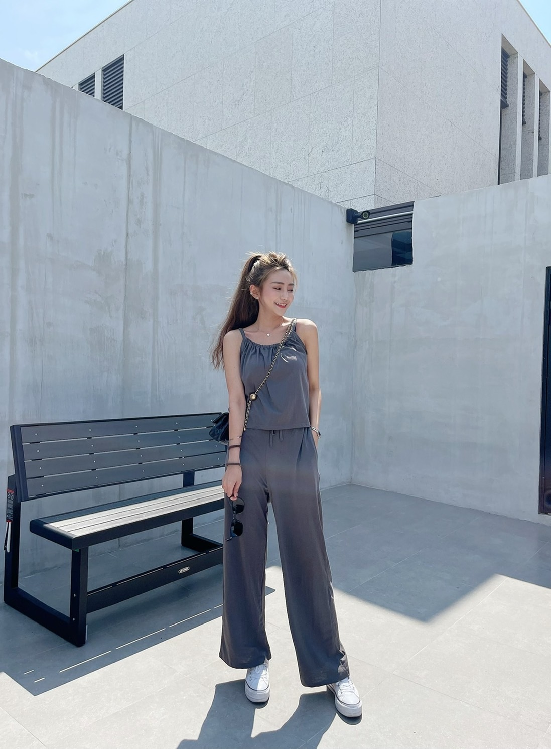 🍁08.17直播新品]💕闆娘出遊的最愛]🇰🇷正韓超美透氣薄款削肩兩件式套裝(墨灰/兩色,背心+寬褲)