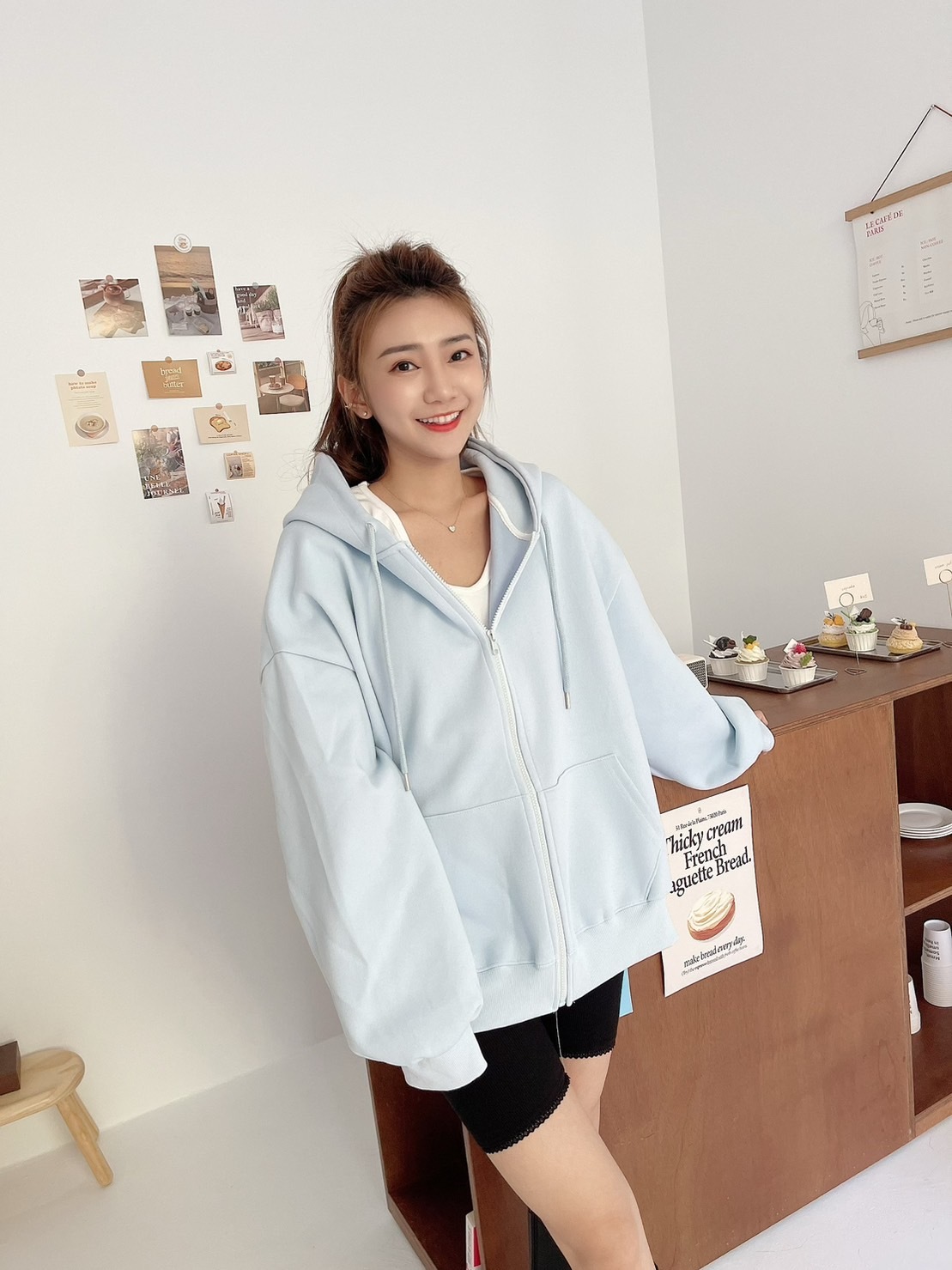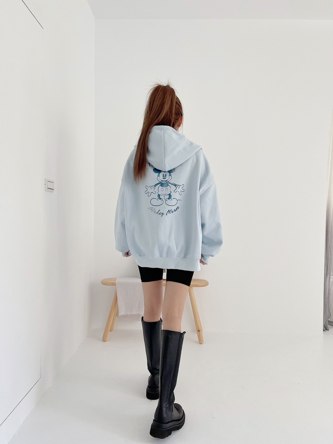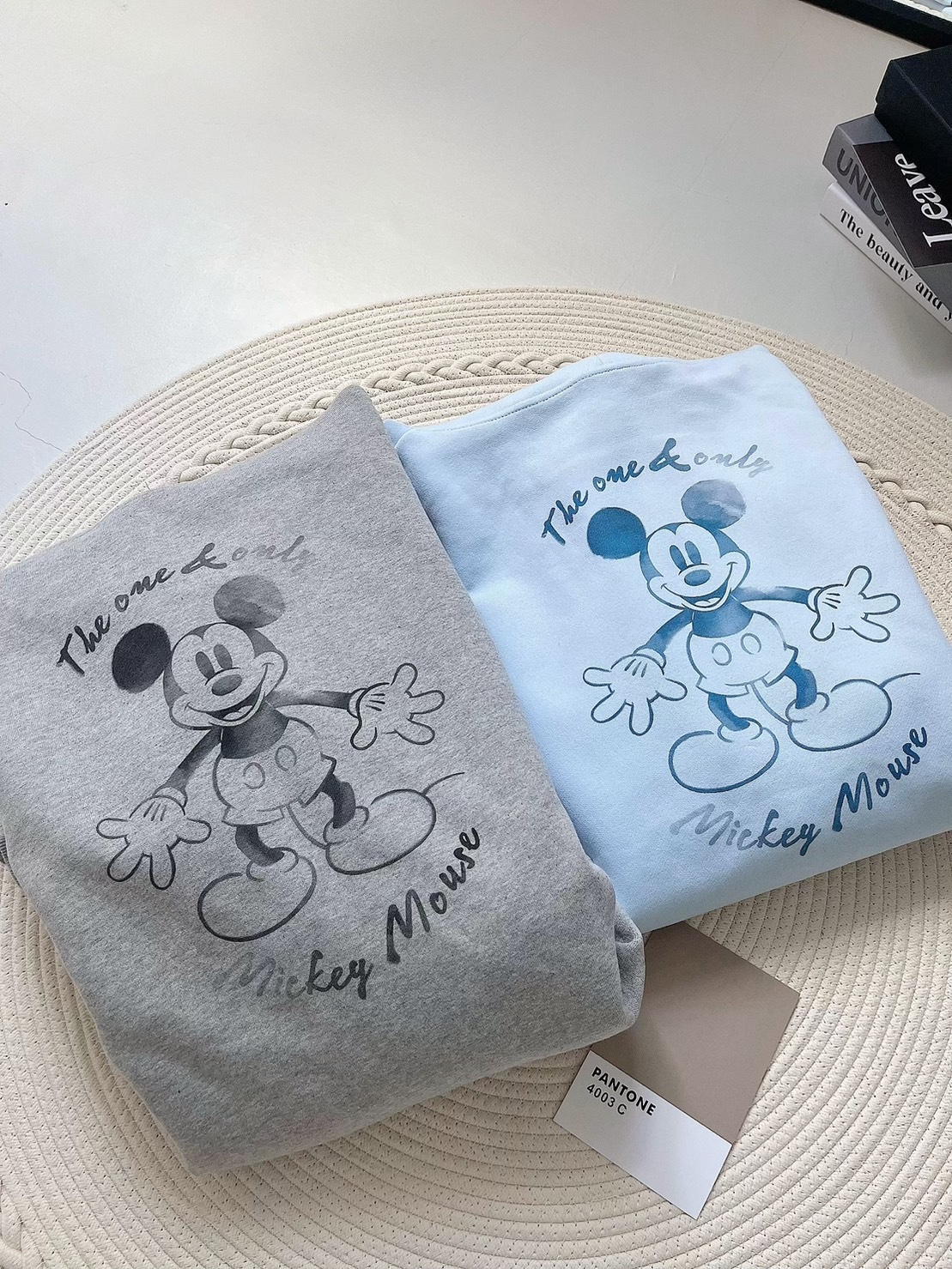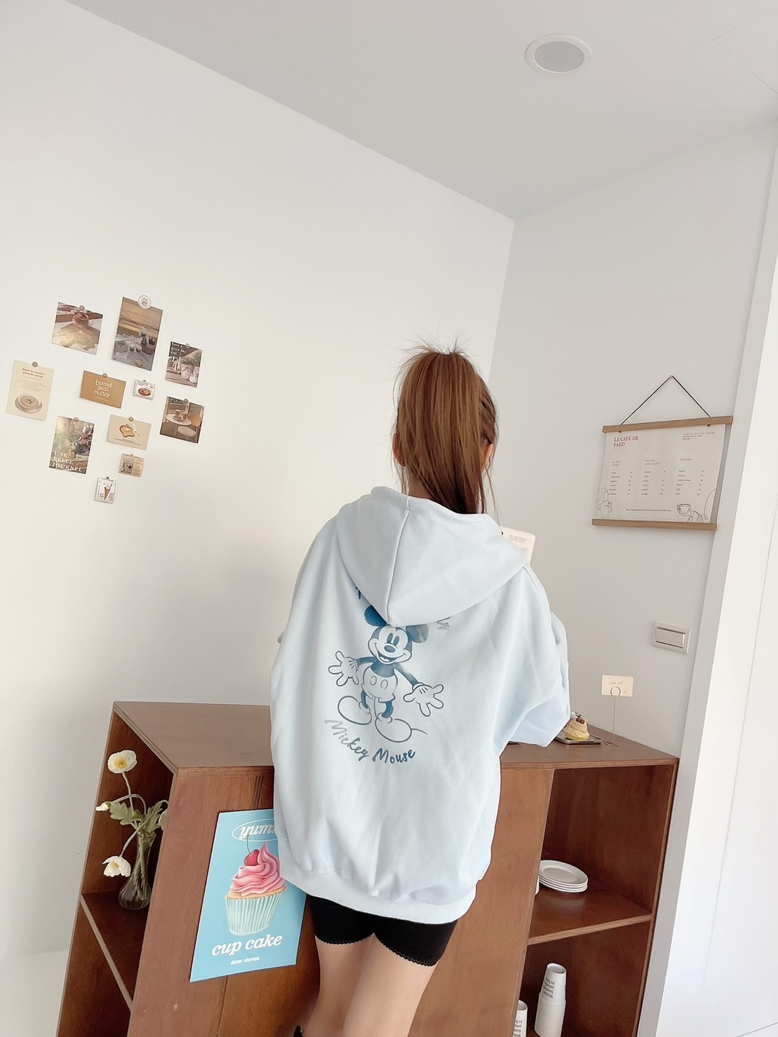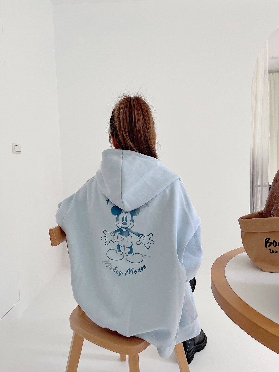 🍁09.27直播新品]💥Disney授權正版米奇]🇰🇷正韓超可愛復古印刷米奇寬鬆挺版連帽外套(顯白藍/兩色)