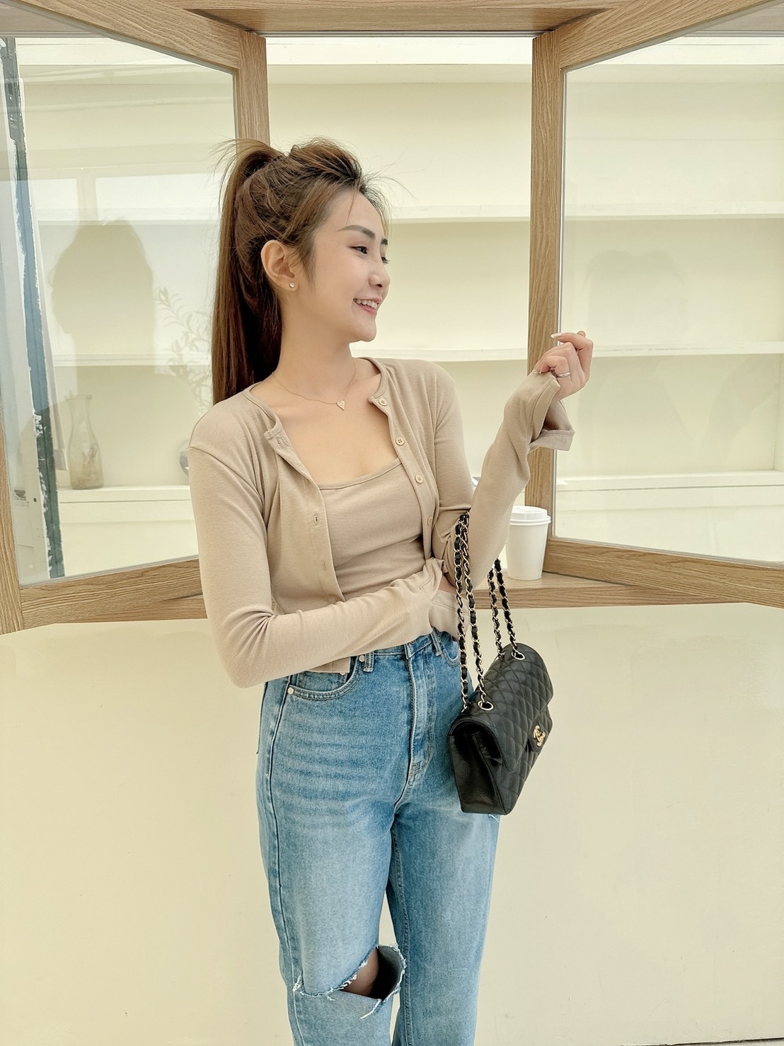 【預購】🍁09.18早秋新品]💛闆娘自留款]🇰🇷正韓超彈棉背心+排釦袖口開叉小外套(奶茶/三色)