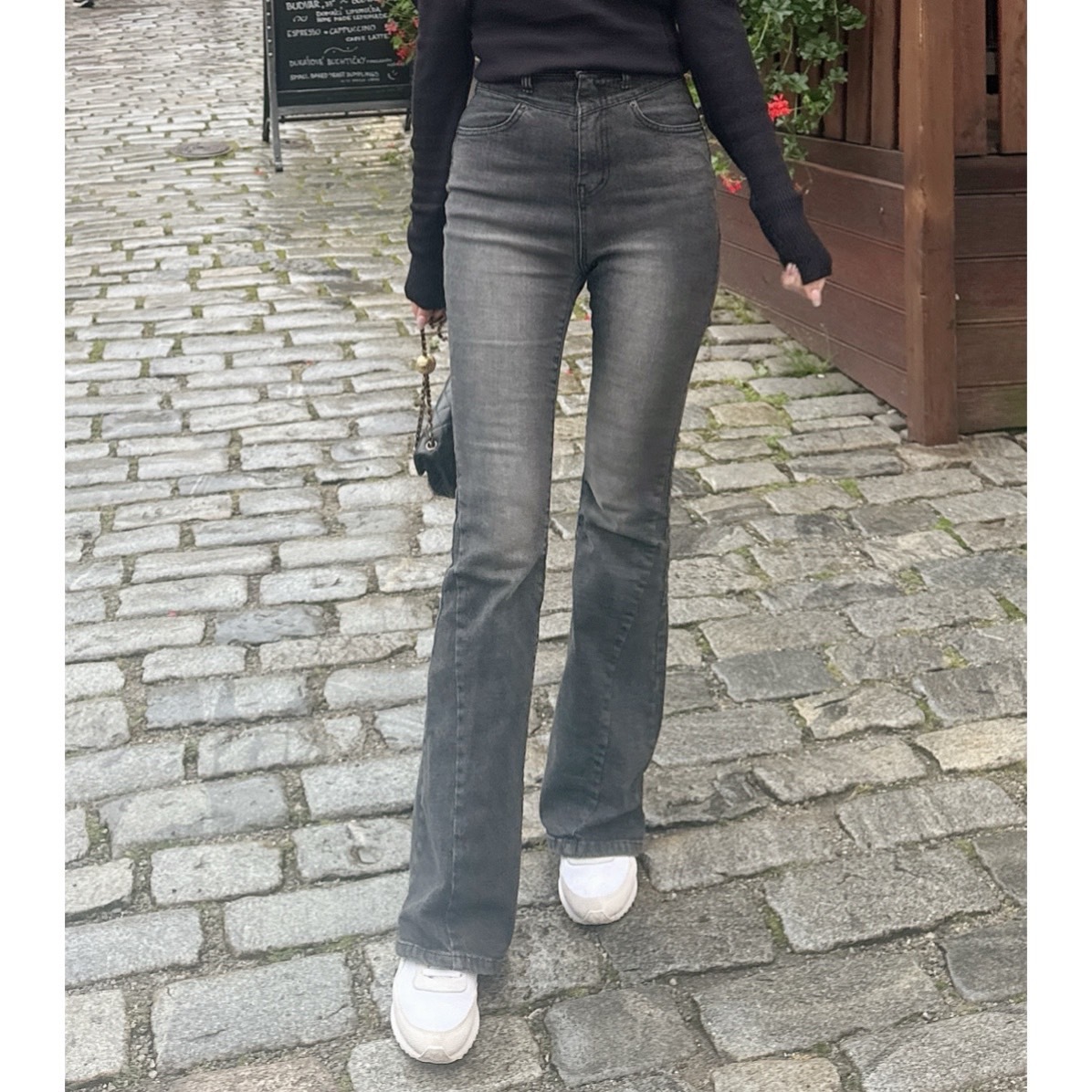 【預購】🔥10.23秋冬新品]💥逆天長腿褲]🇰🇷正韓高腰包腹超瘦微喇叭牛仔褲(刷色黑/SML)