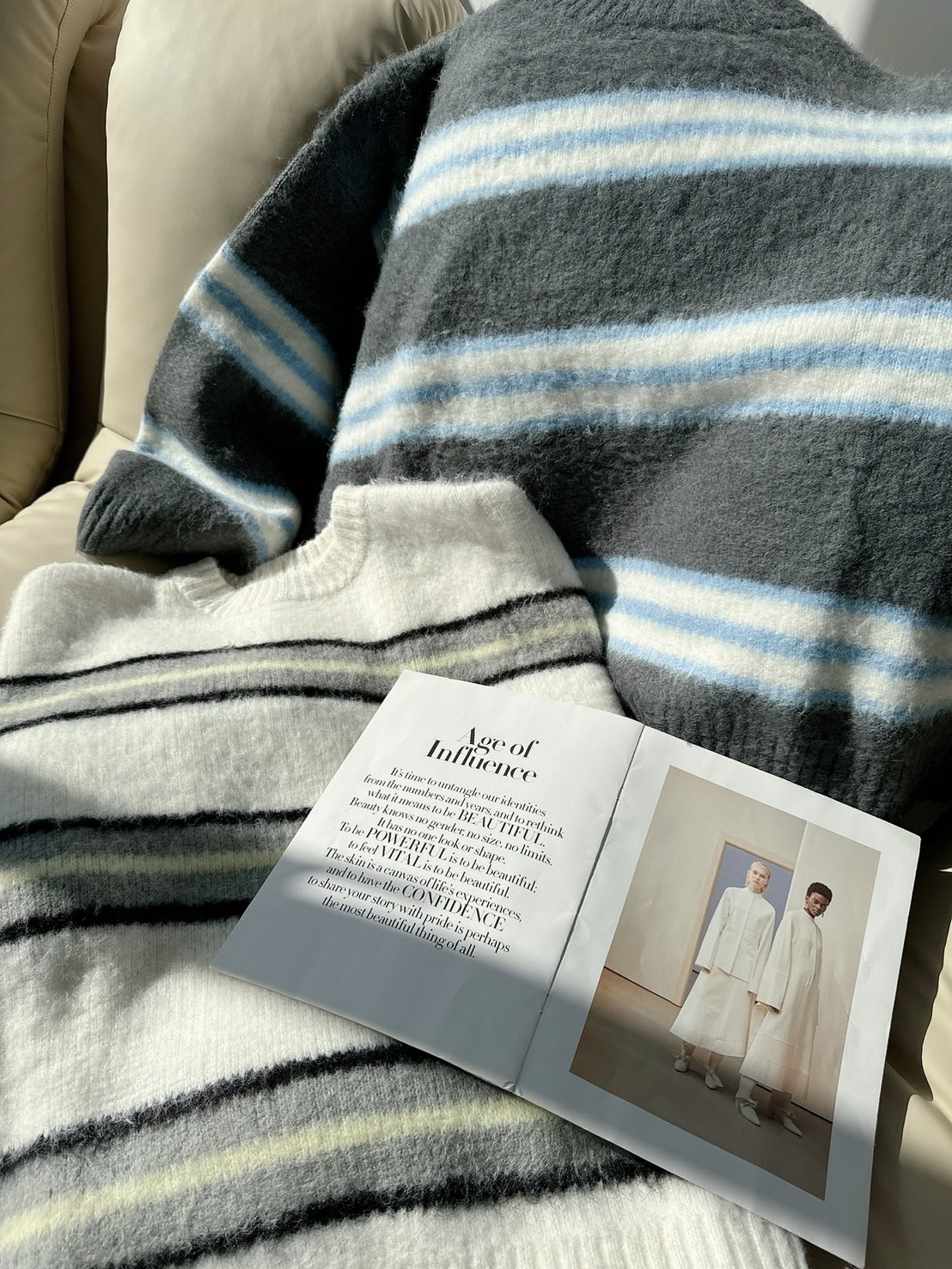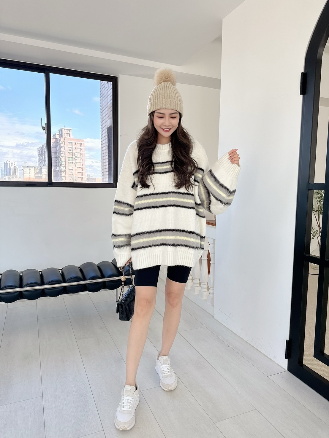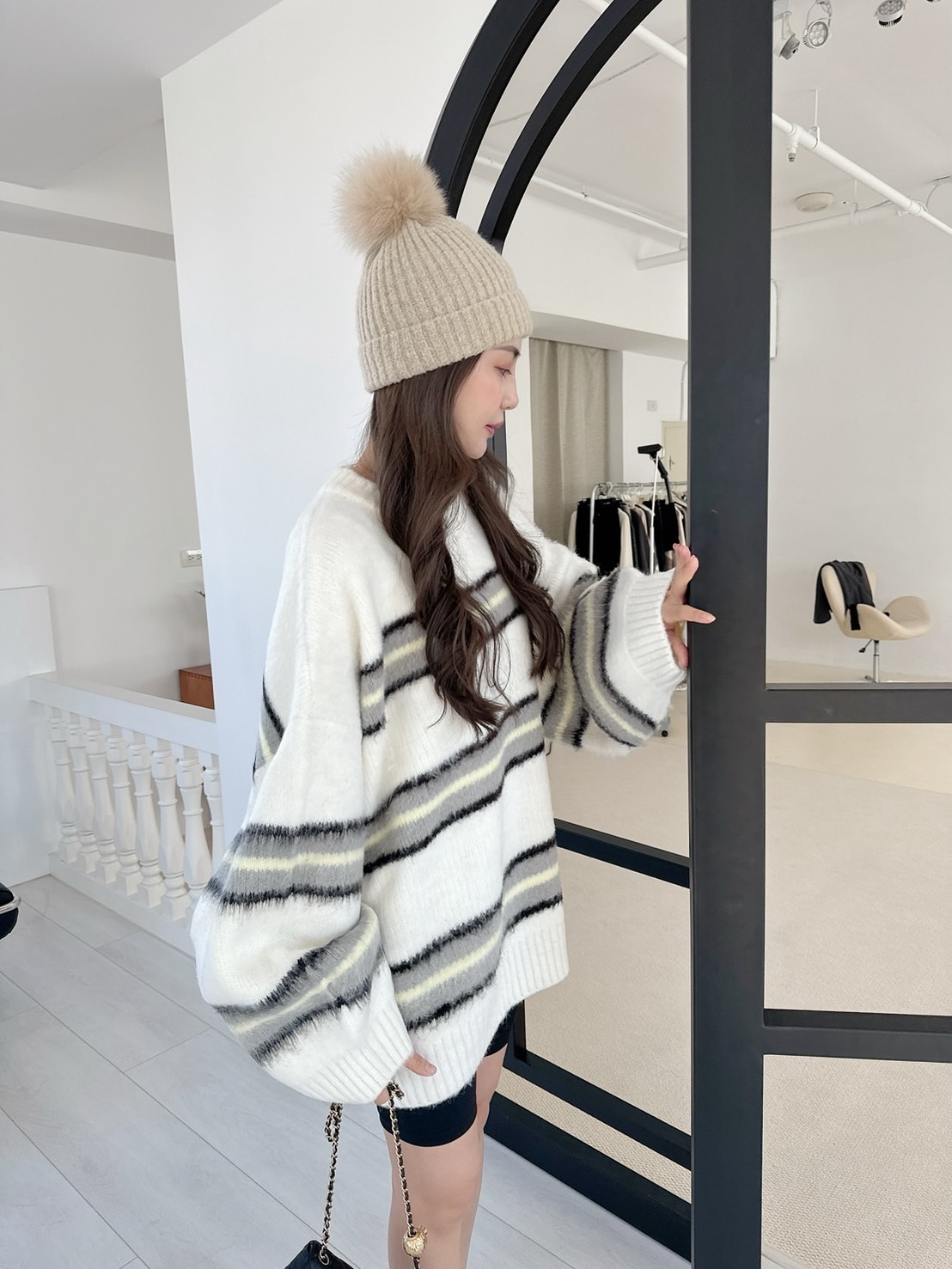【預購】🔥12.04秋冬新品]💥闆娘自留款]🇰🇷正韓圓領高磅彩色條紋寬鬆毛衣(可愛白/兩色)