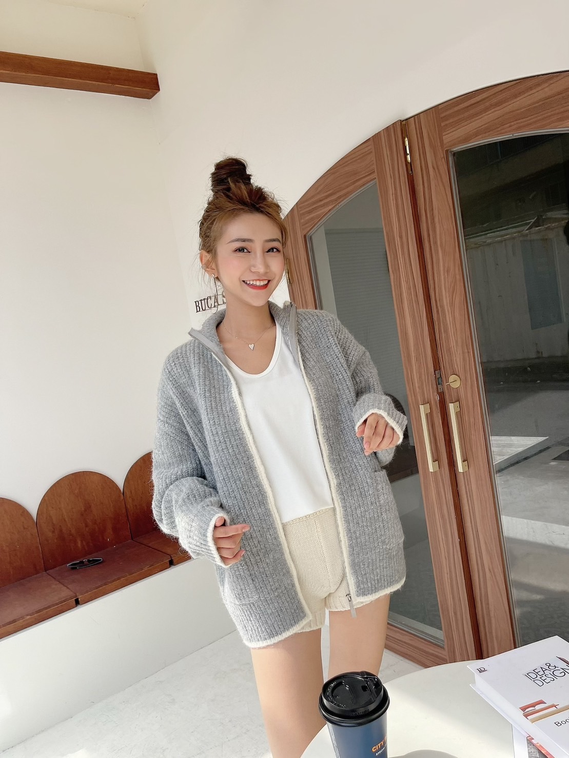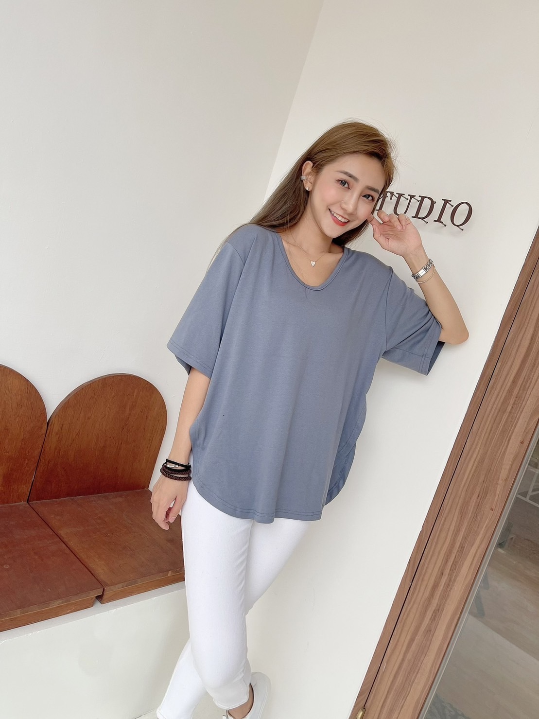 🔥10.26直播新品]💥闆娘自訂款]🇰🇷正韓V領超彈透氣棉下擺圓弧上衣(兩色)