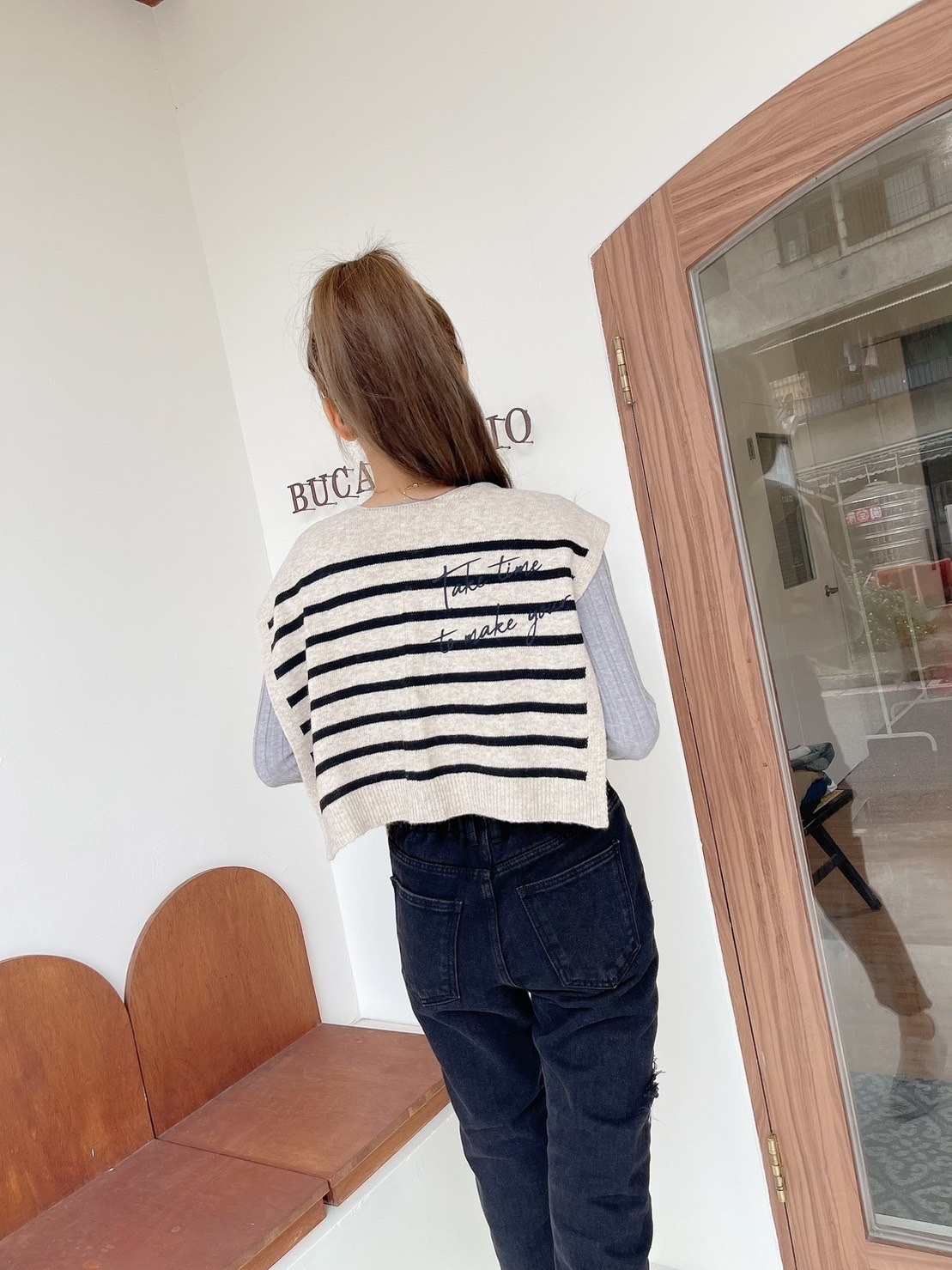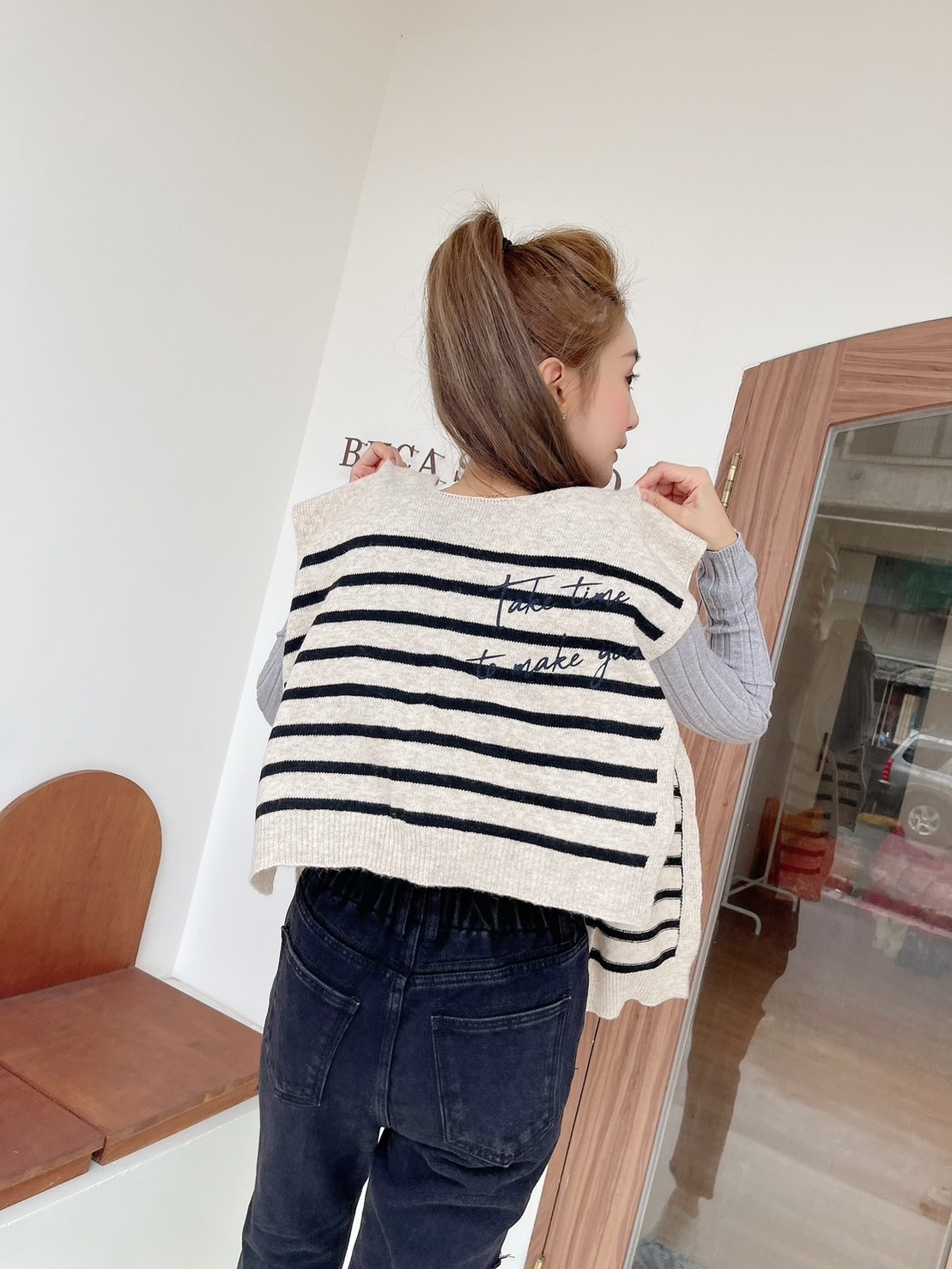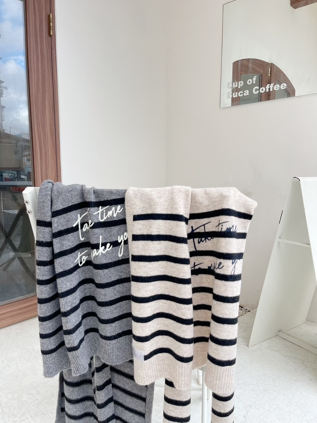 🔥10.26直播新品]🇰🇷正韓超可愛90%羊毛英文字條紋披肩(兩色)