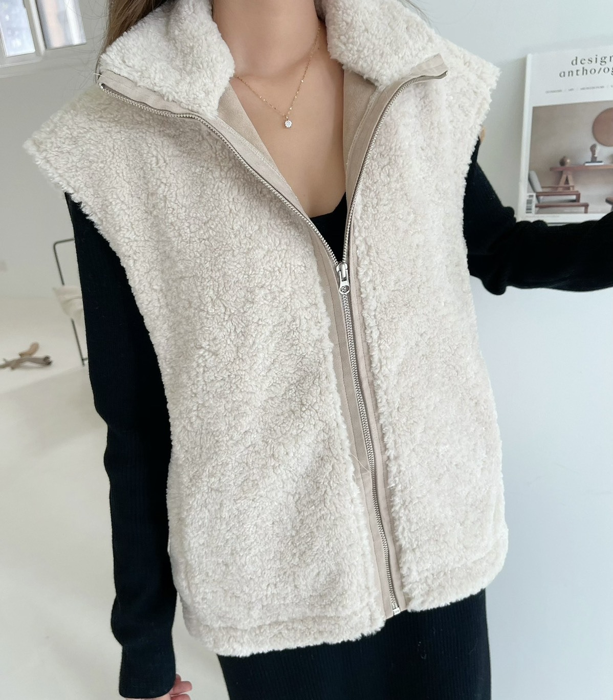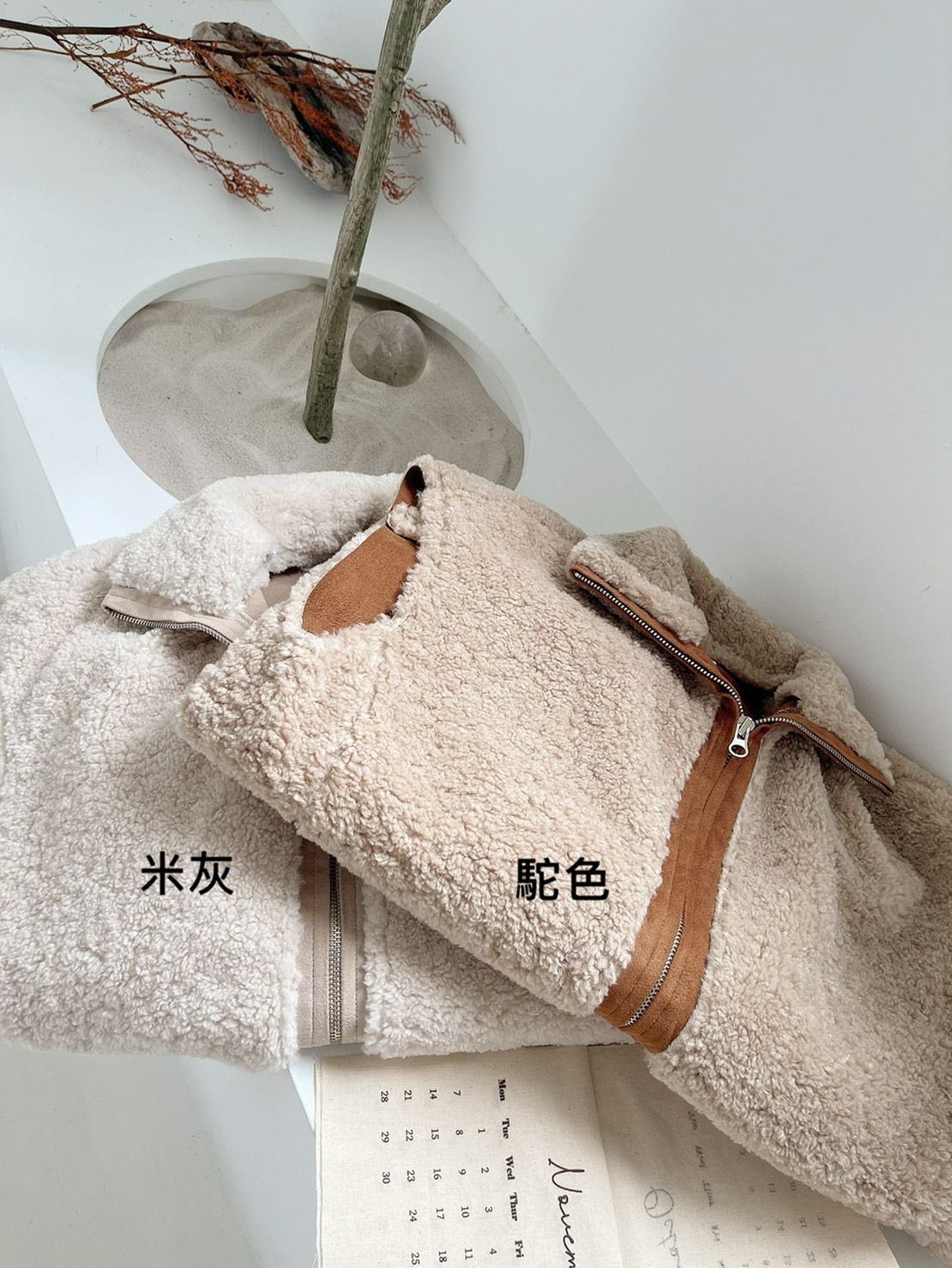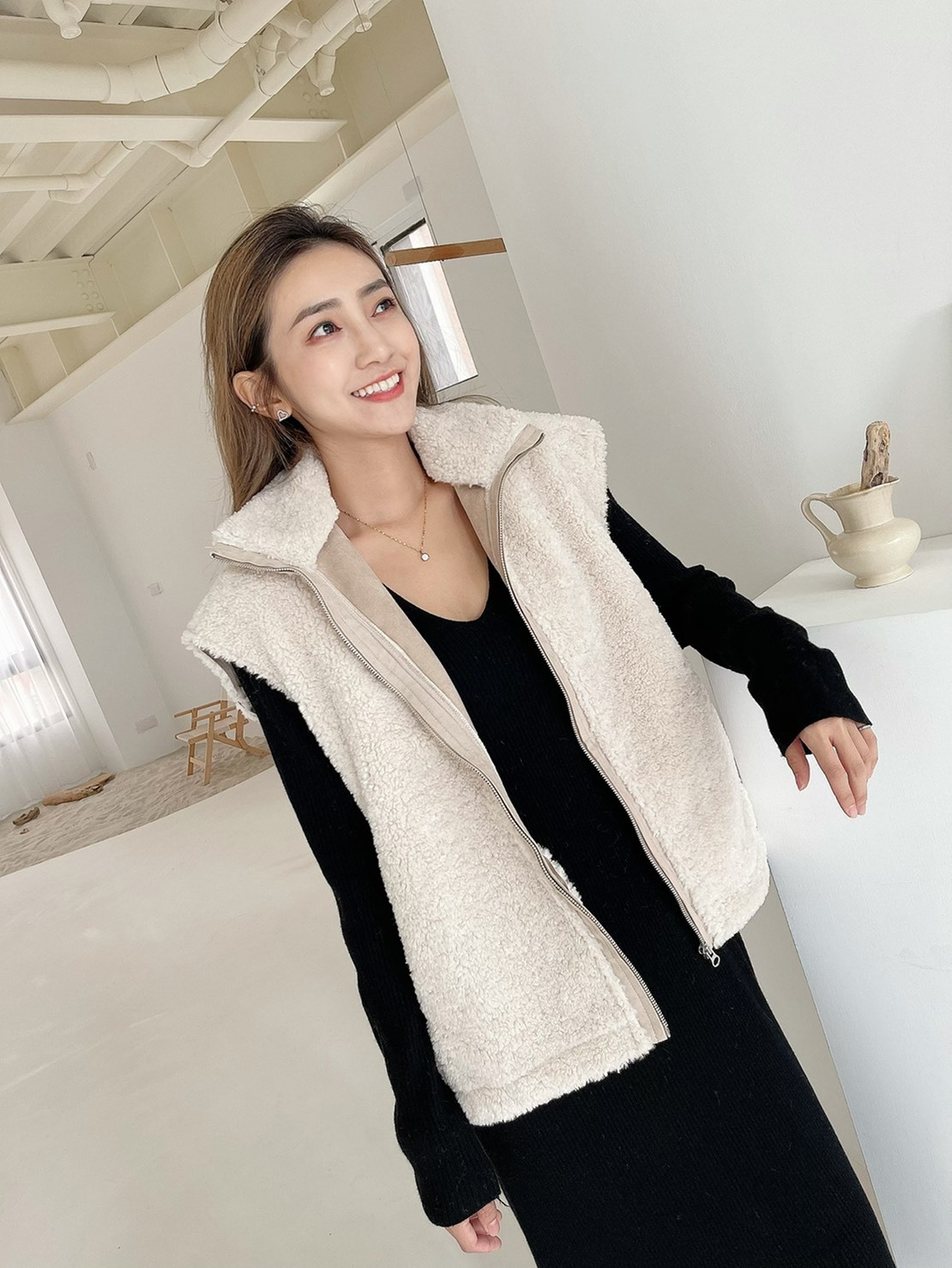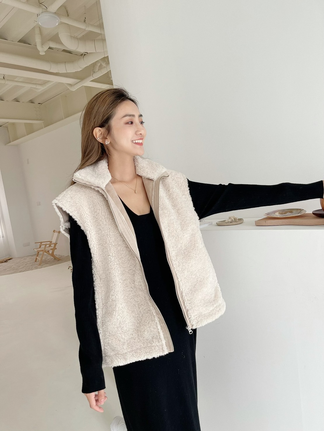 🔥11.10直播新品]💥洋裝必搭款]🇰🇷正韓麂皮拼接羊羔毛立領背心外套(米灰/兩色)
