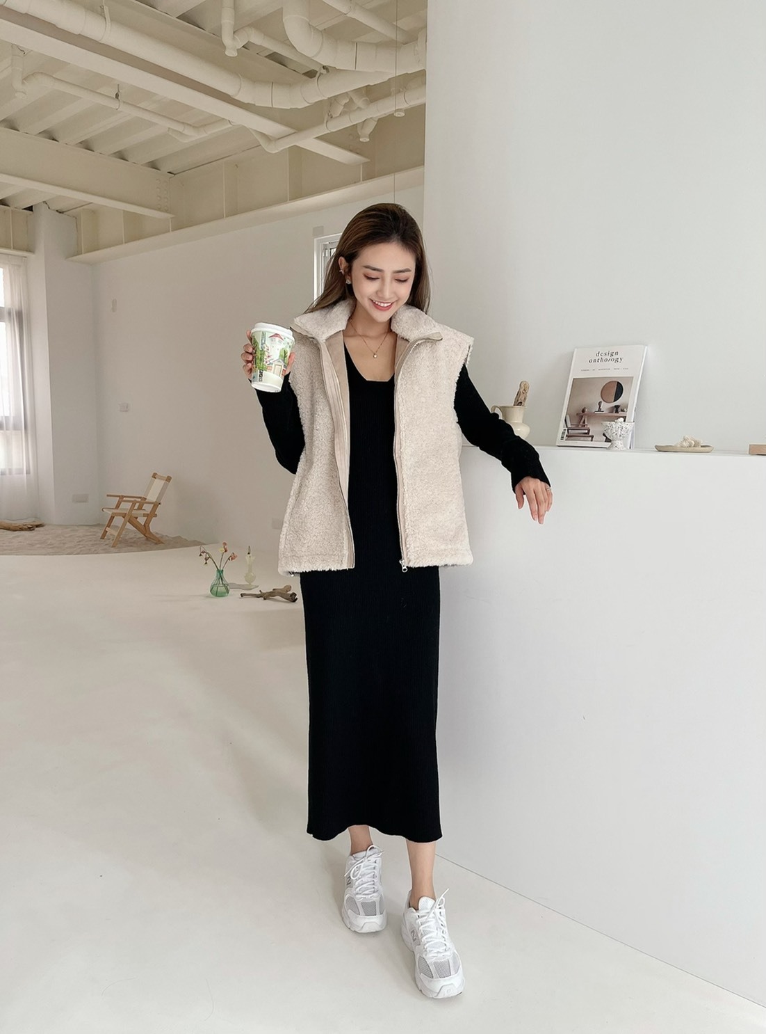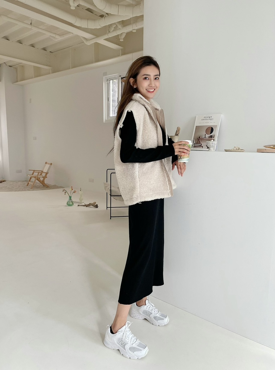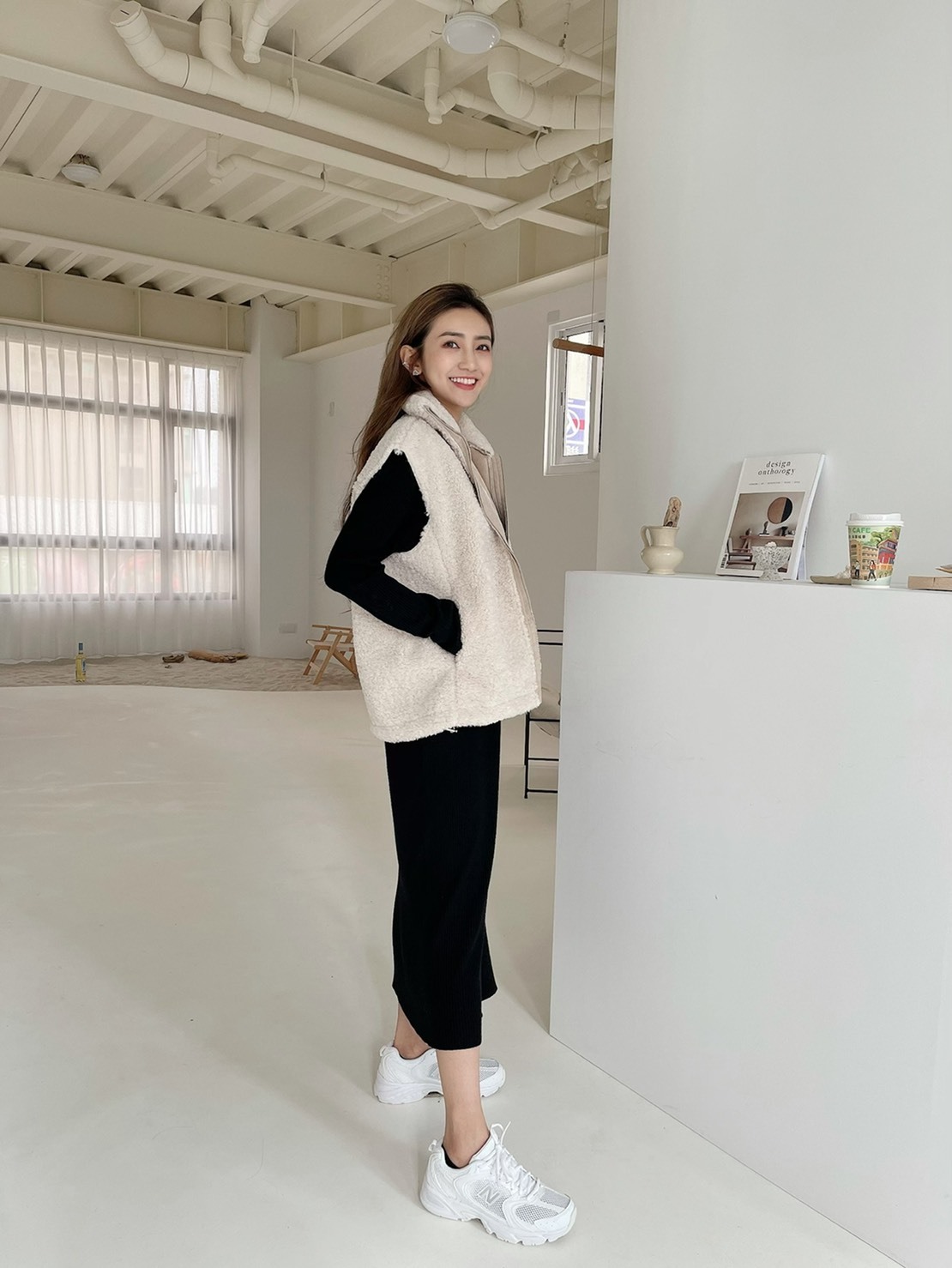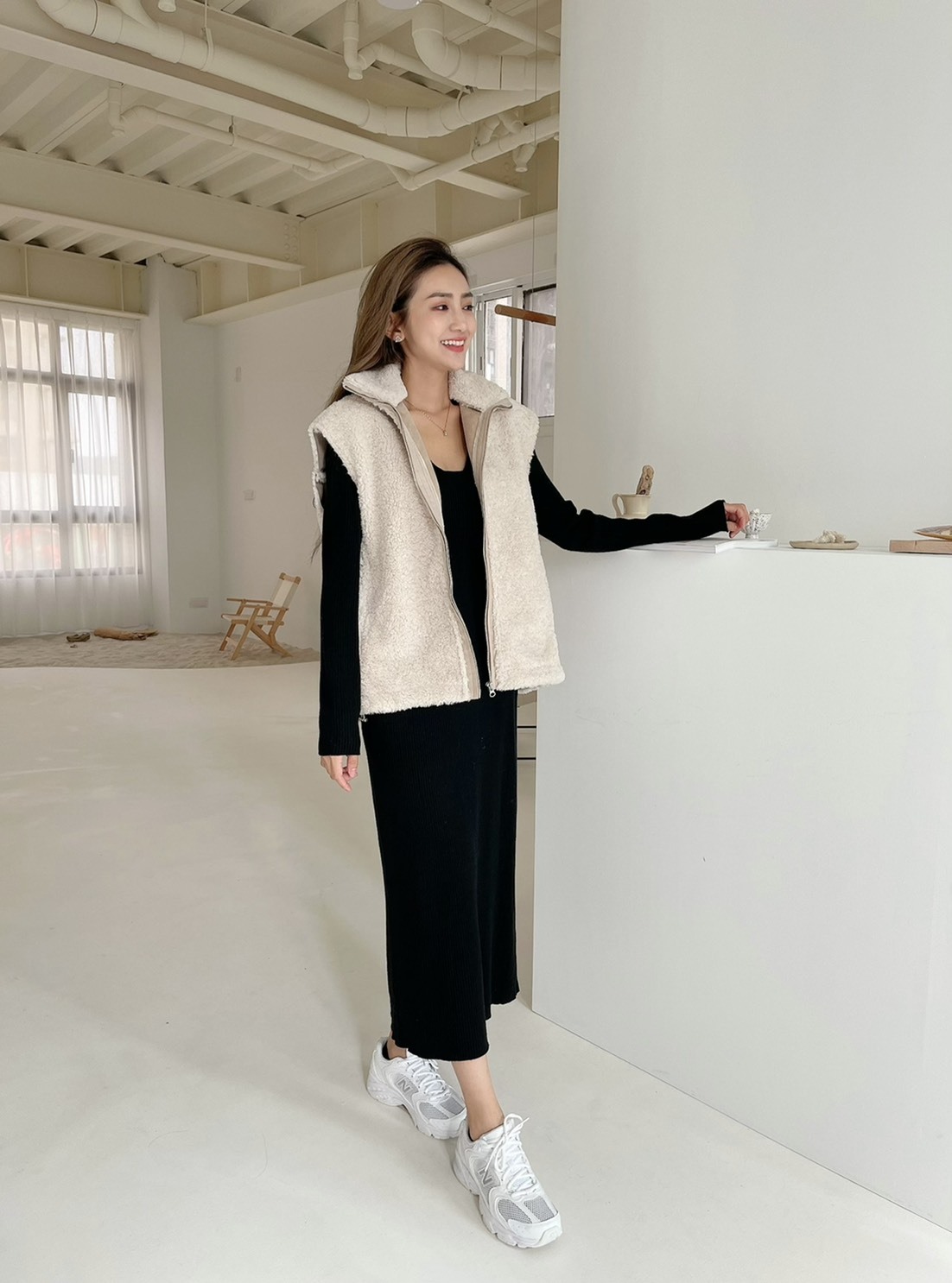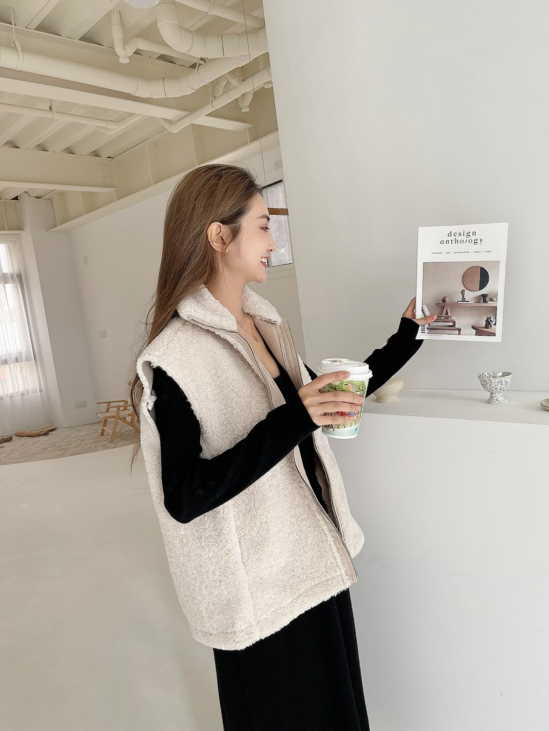 🔥11.10直播新品]💥洋裝必搭款]🇰🇷正韓麂皮拼接羊羔毛立領背心外套(米灰/兩色)