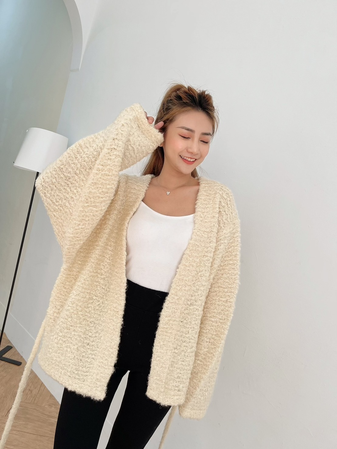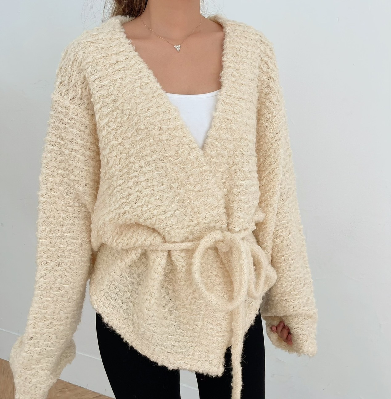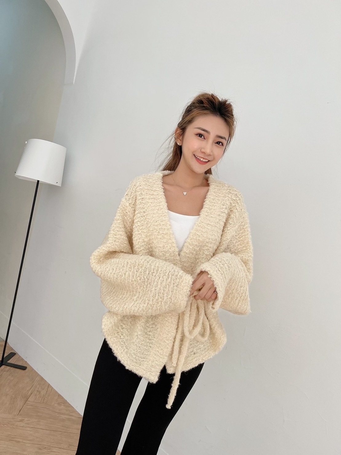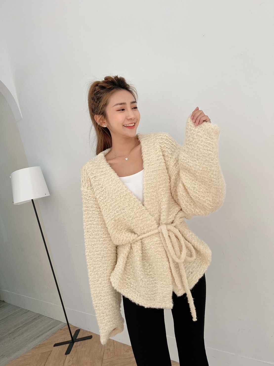 🔥12.07直播新品]💥闆娘穿去慶生被問翻]🇰🇷正韓超可愛爆米花固定式綁帶羊毛開襟外套(氣質杏色/兩色)