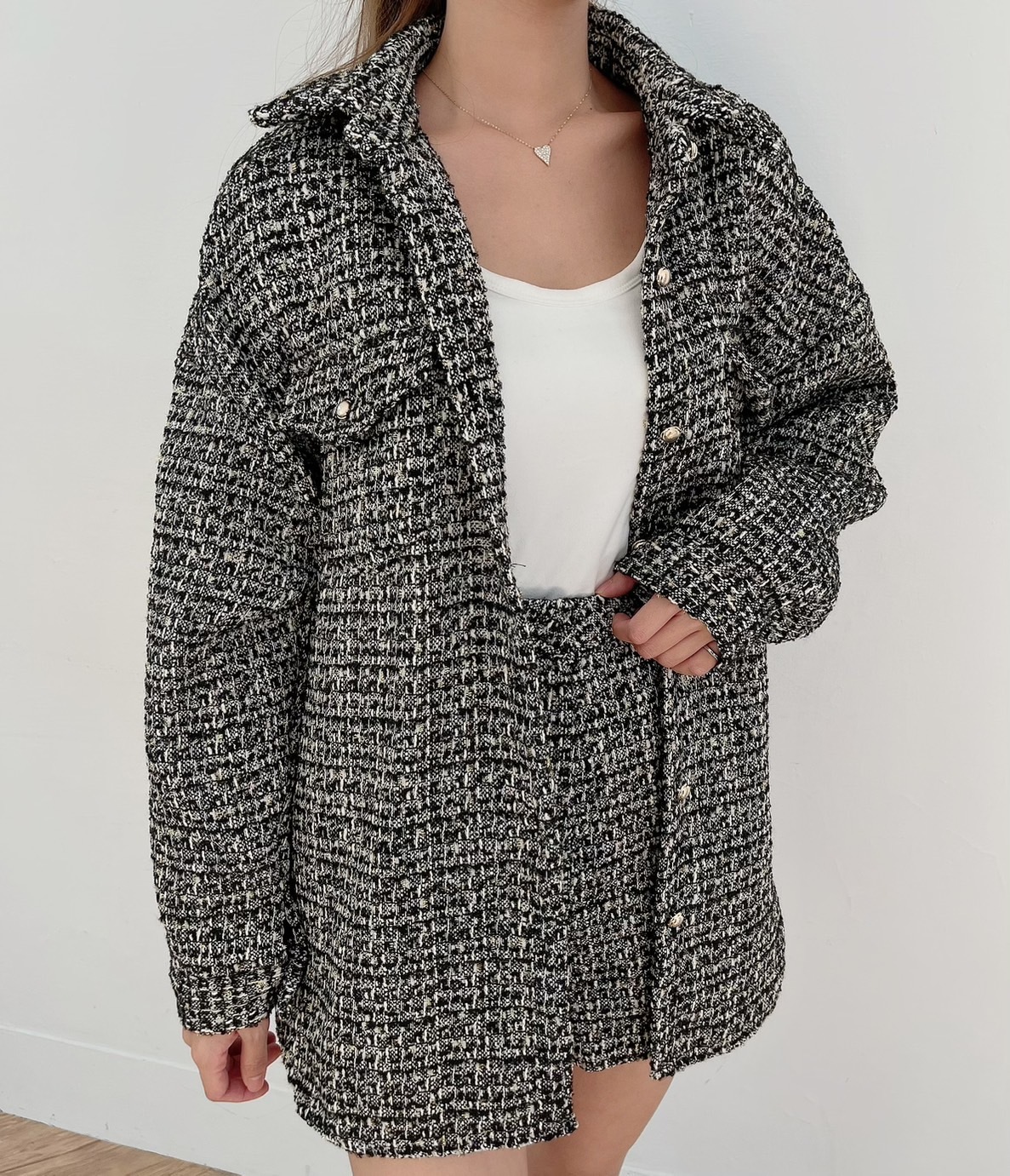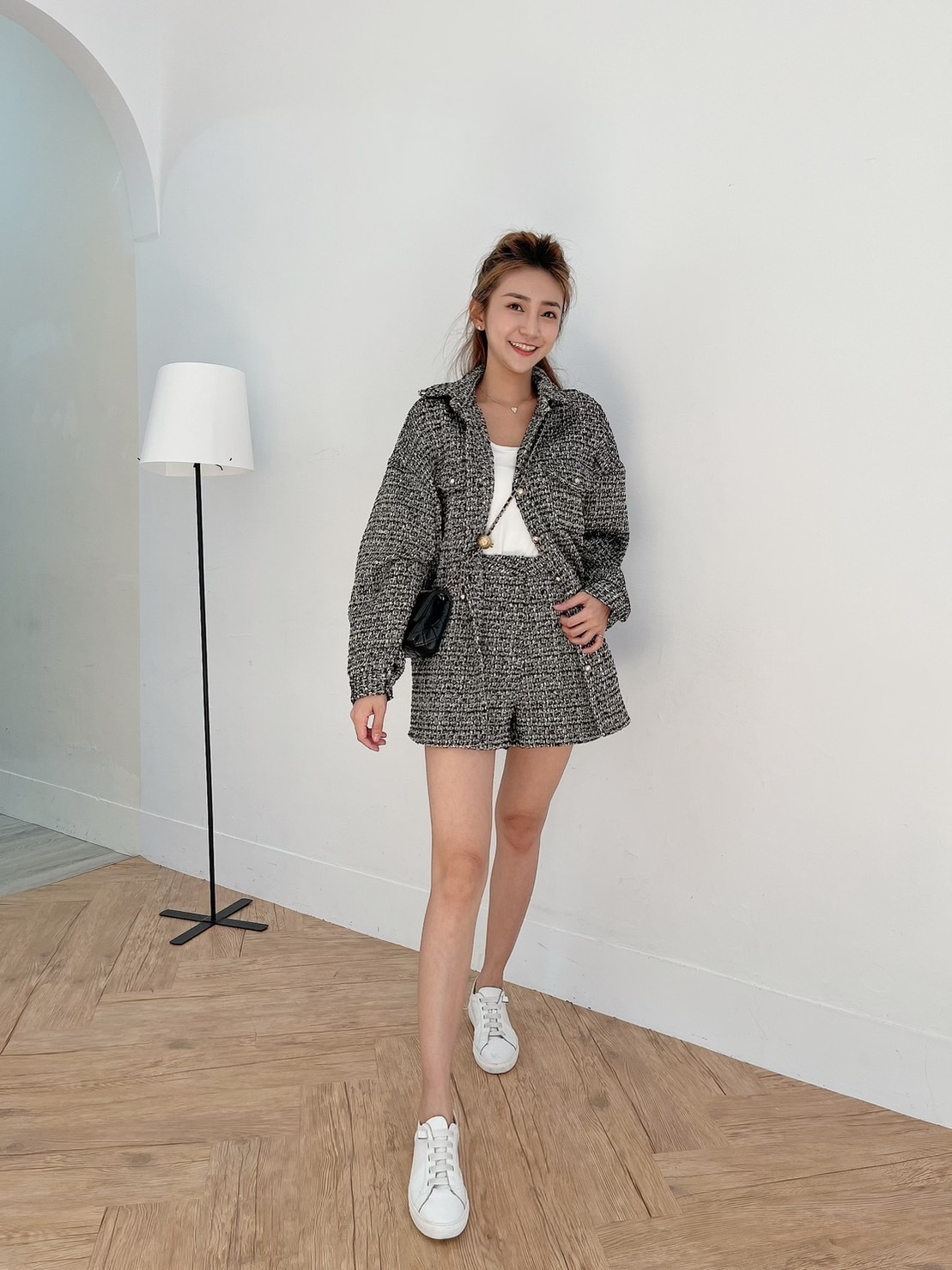 🔥12.07直播新品]🇰🇷正韓超美氣質毛呢金蔥小香外套+小香短褲(質感黑灰/兩色,可分開購買)