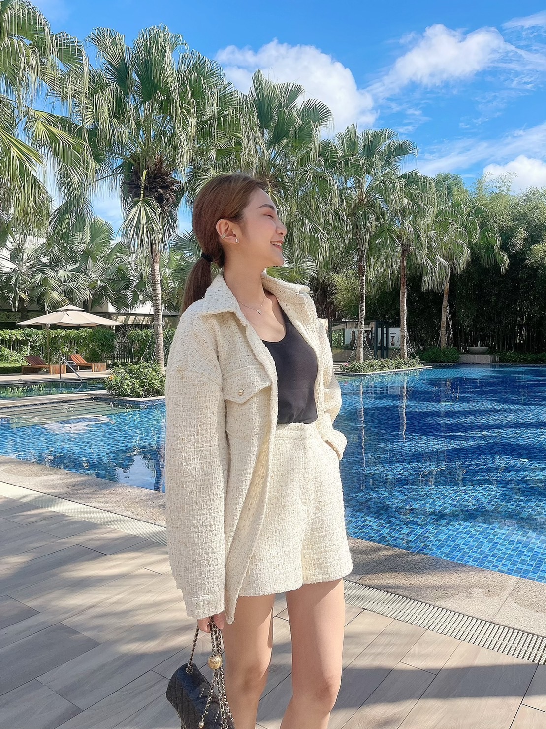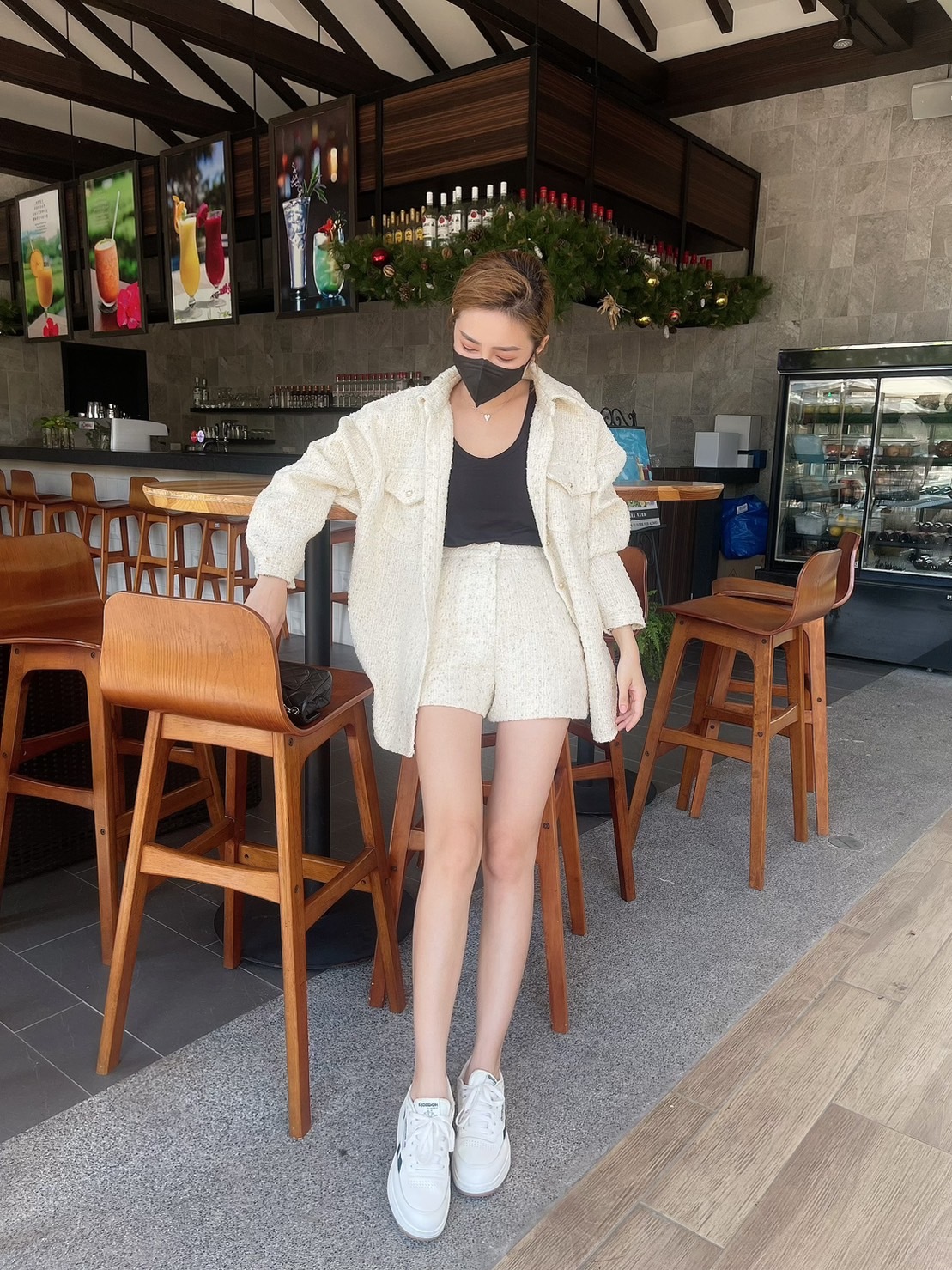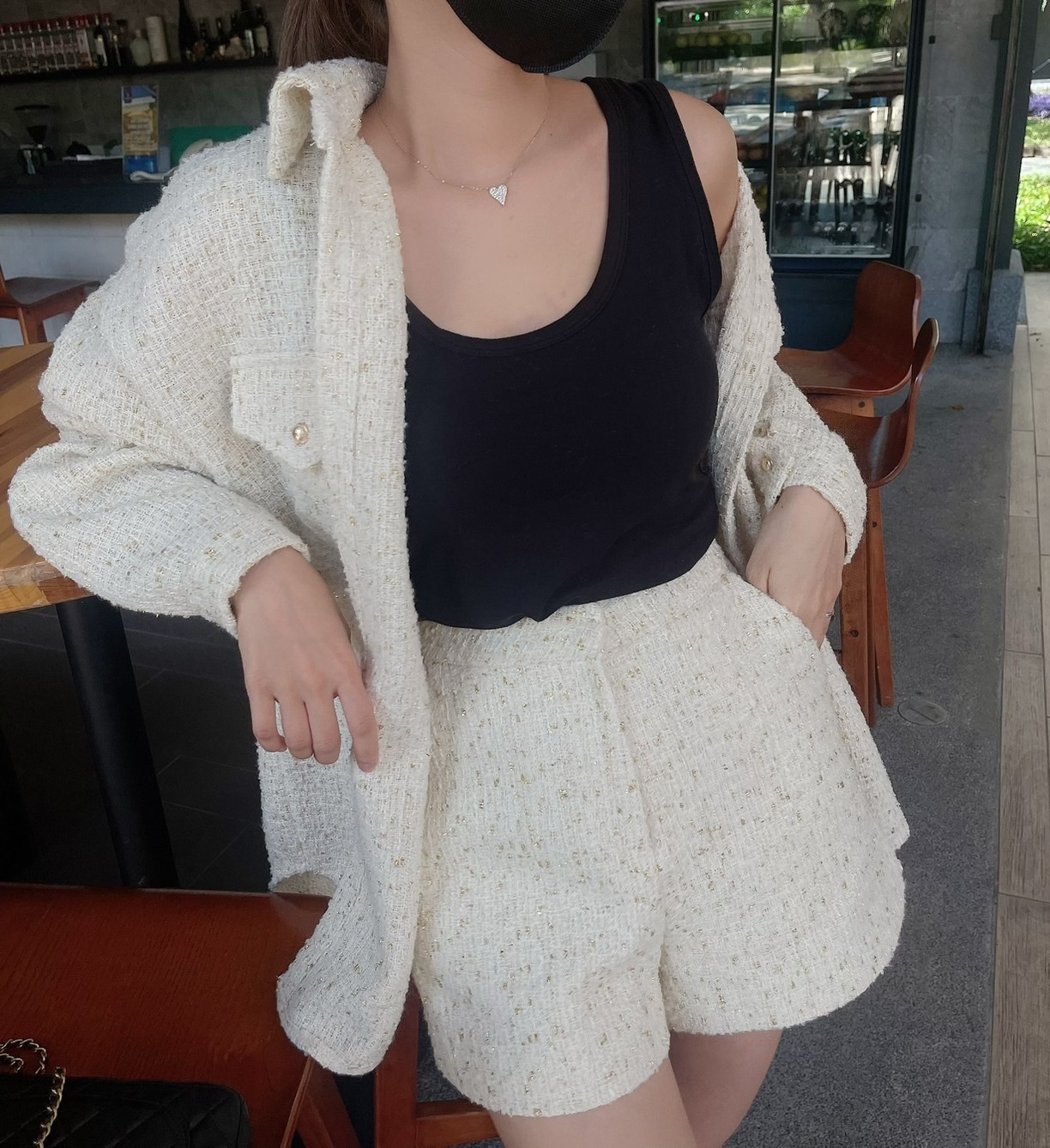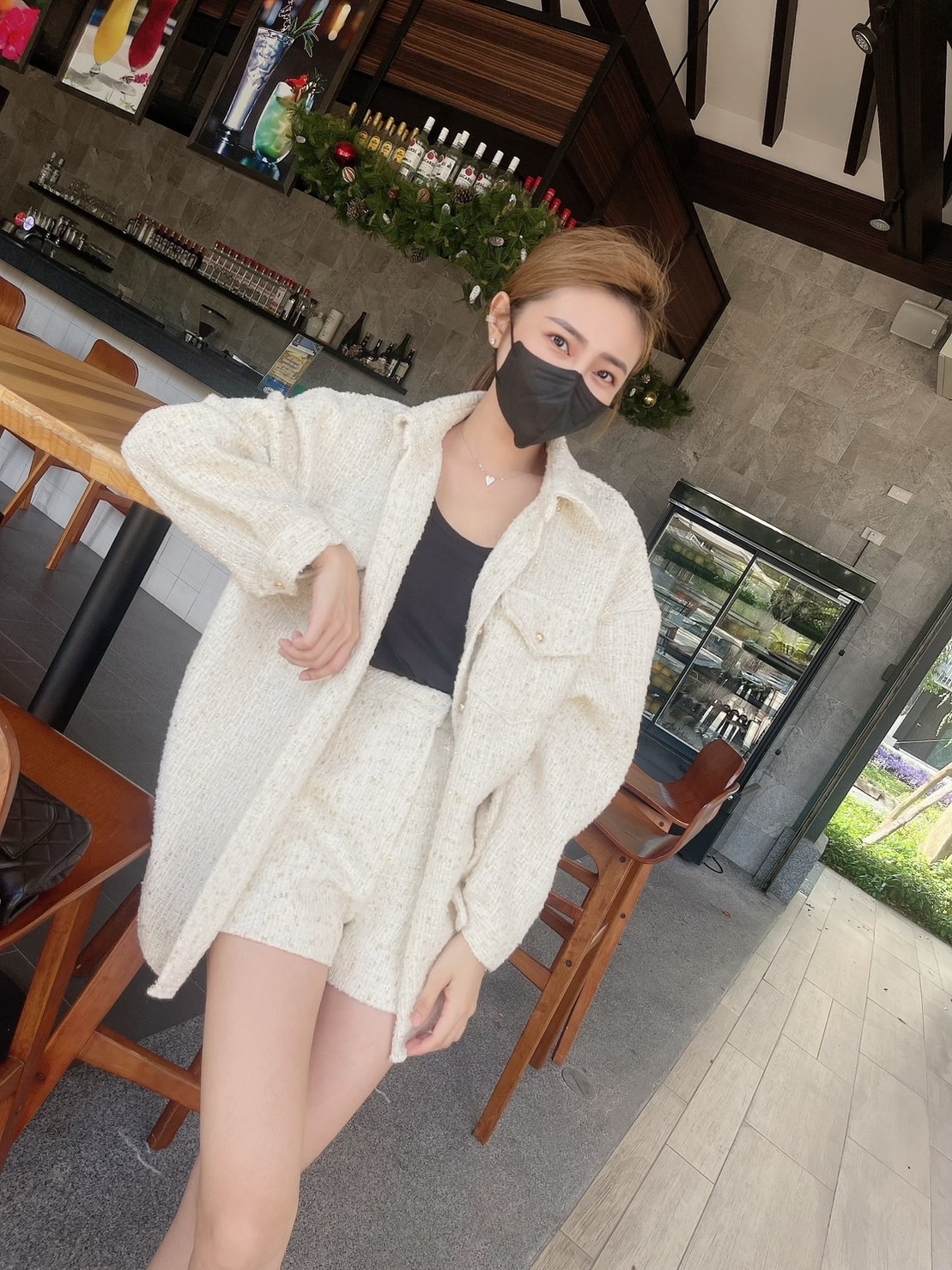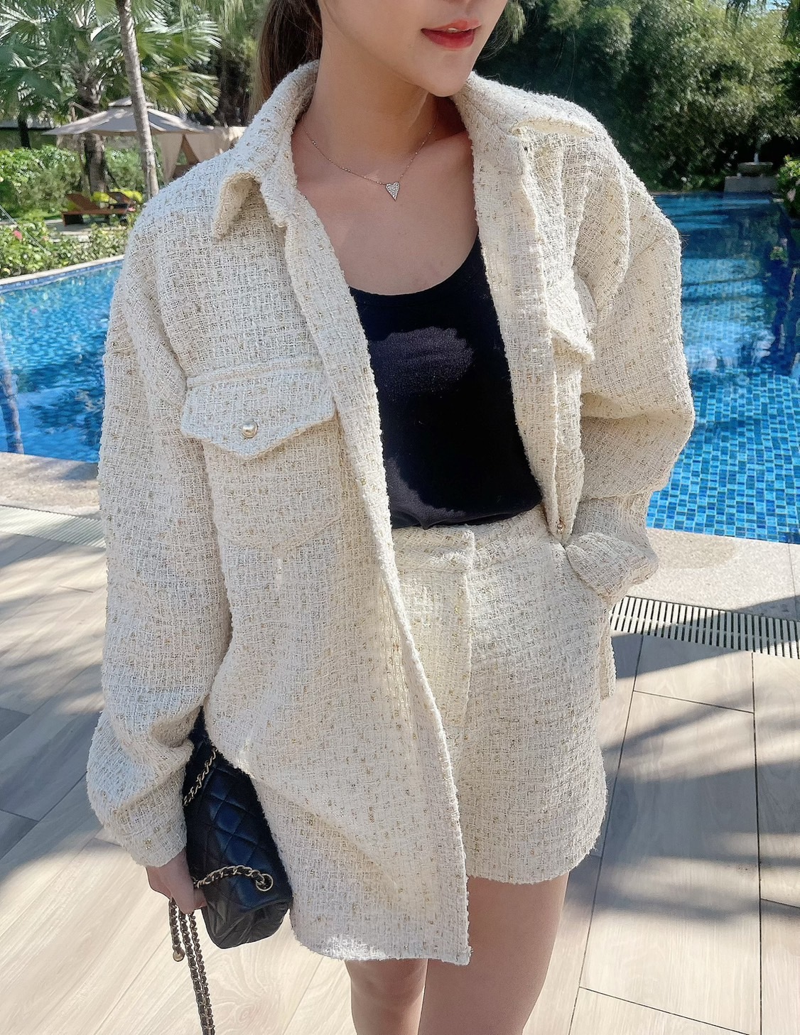 🔥12.07直播新品]🇰🇷正韓超美氣質毛呢金蔥小香外套+小香短褲(氣質米白/兩色,可分開購買)