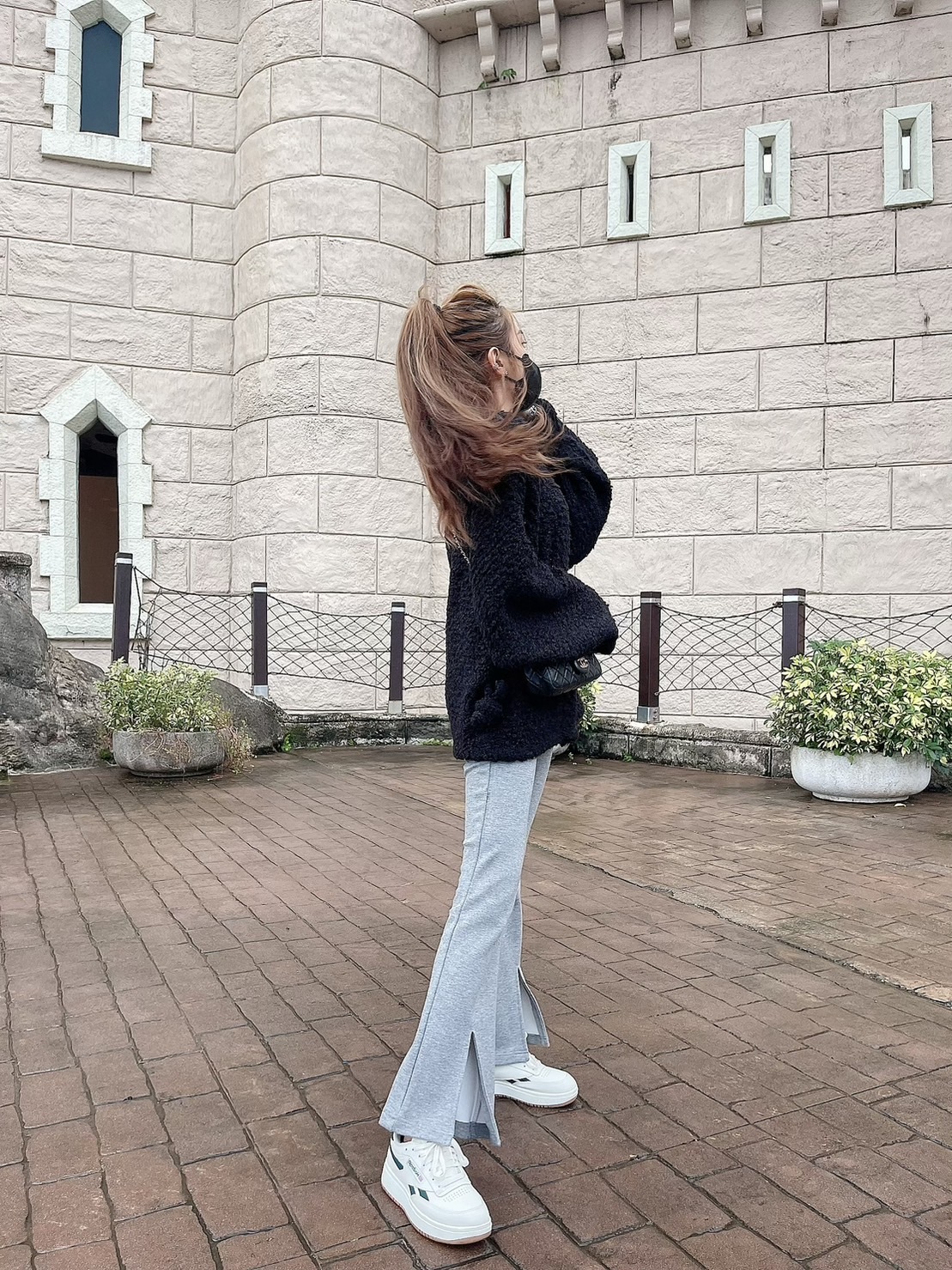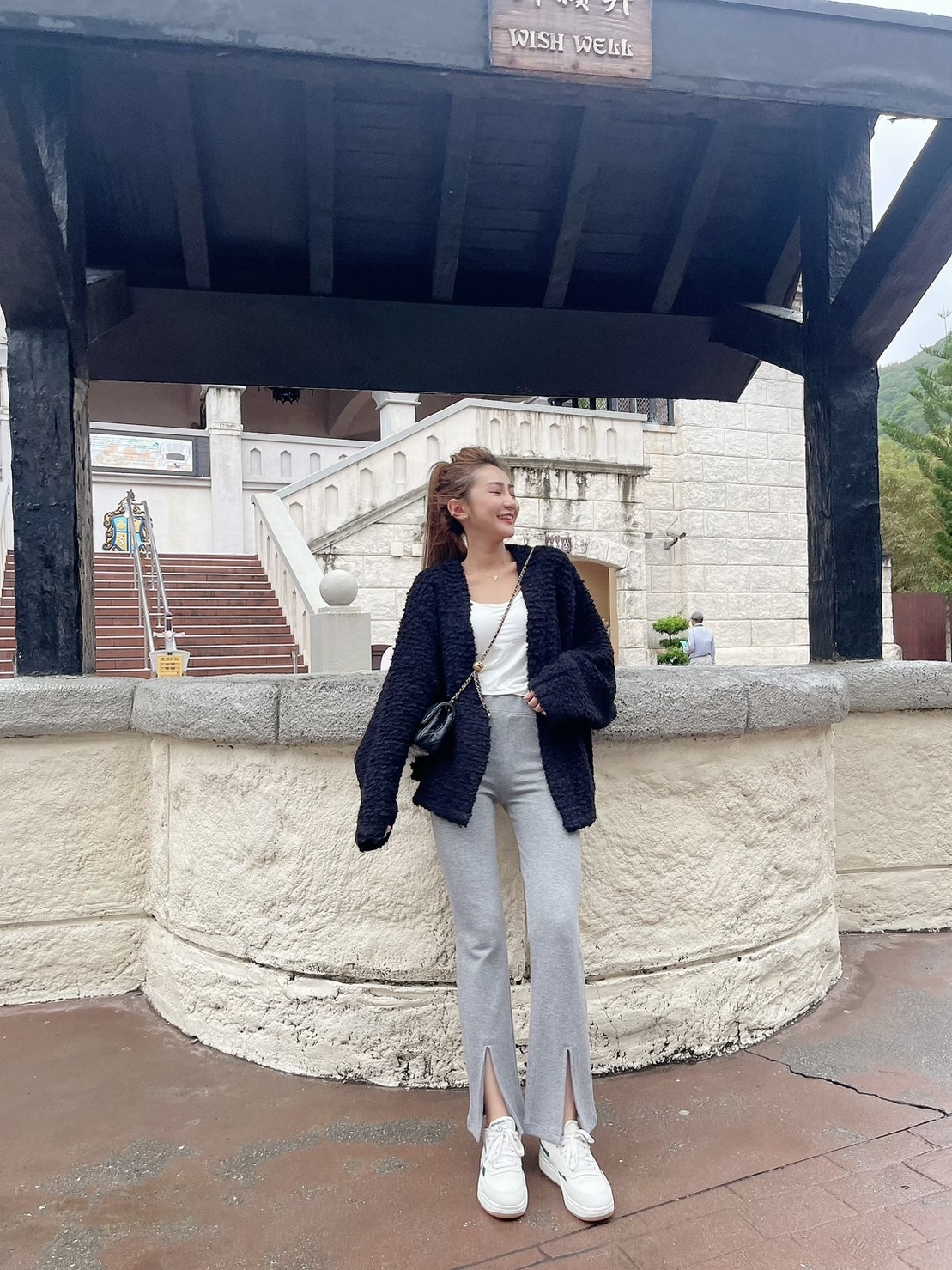 🔥12.07直播新品]💥保暖還可以擁有大長腿]🇰🇷正韓高腰鬆緊腰超保暖內磨毛前開叉彈性喇叭棉褲(灰色/兩色)