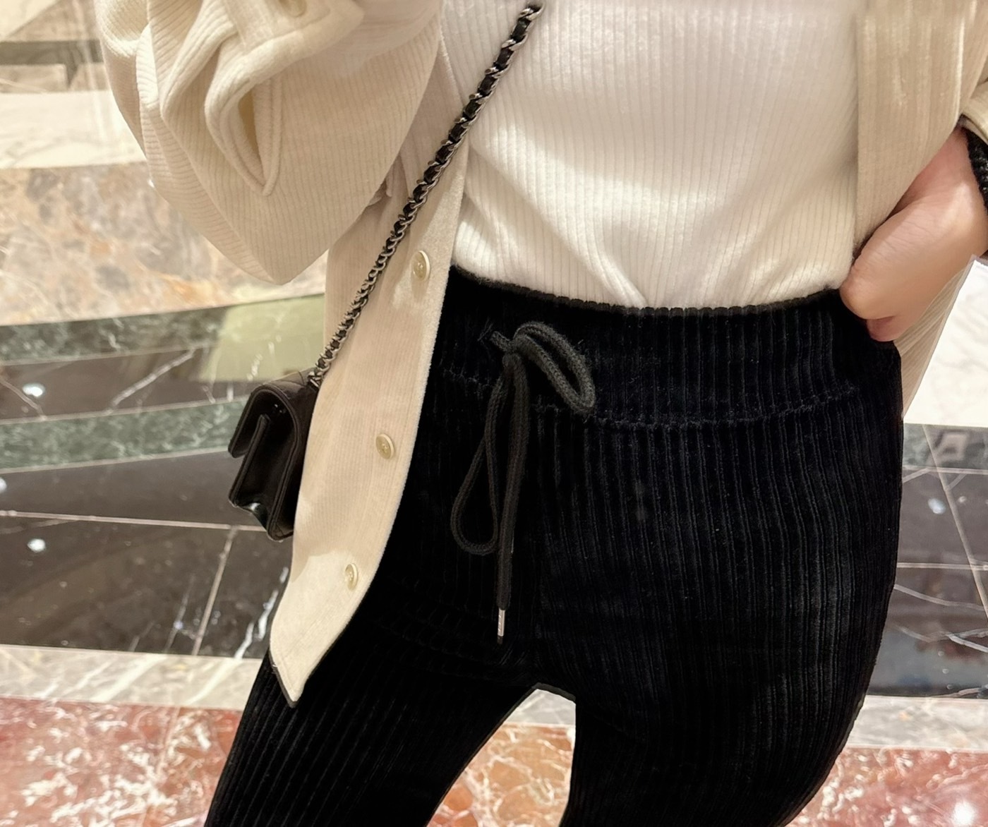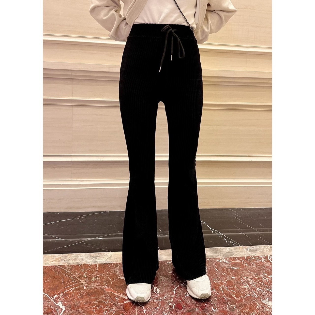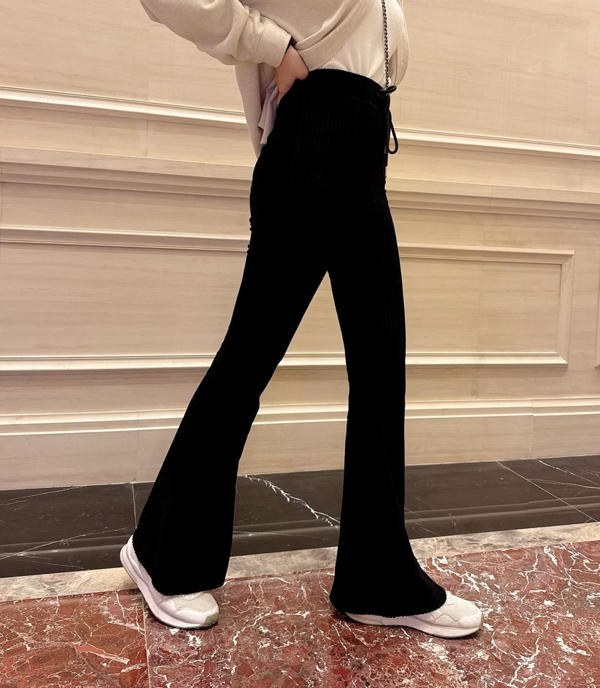 🔥12.07直播新品]💥穿上擁有逆天長腿]🇰🇷正韓高腰鬆緊腰抽繩燈芯絨微喇叭褲(黑色/兩色)