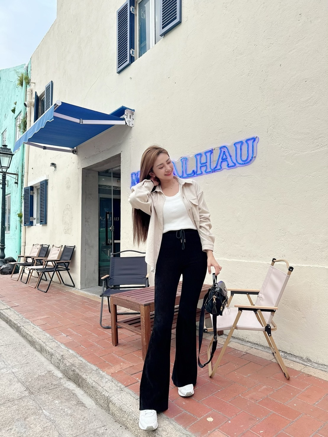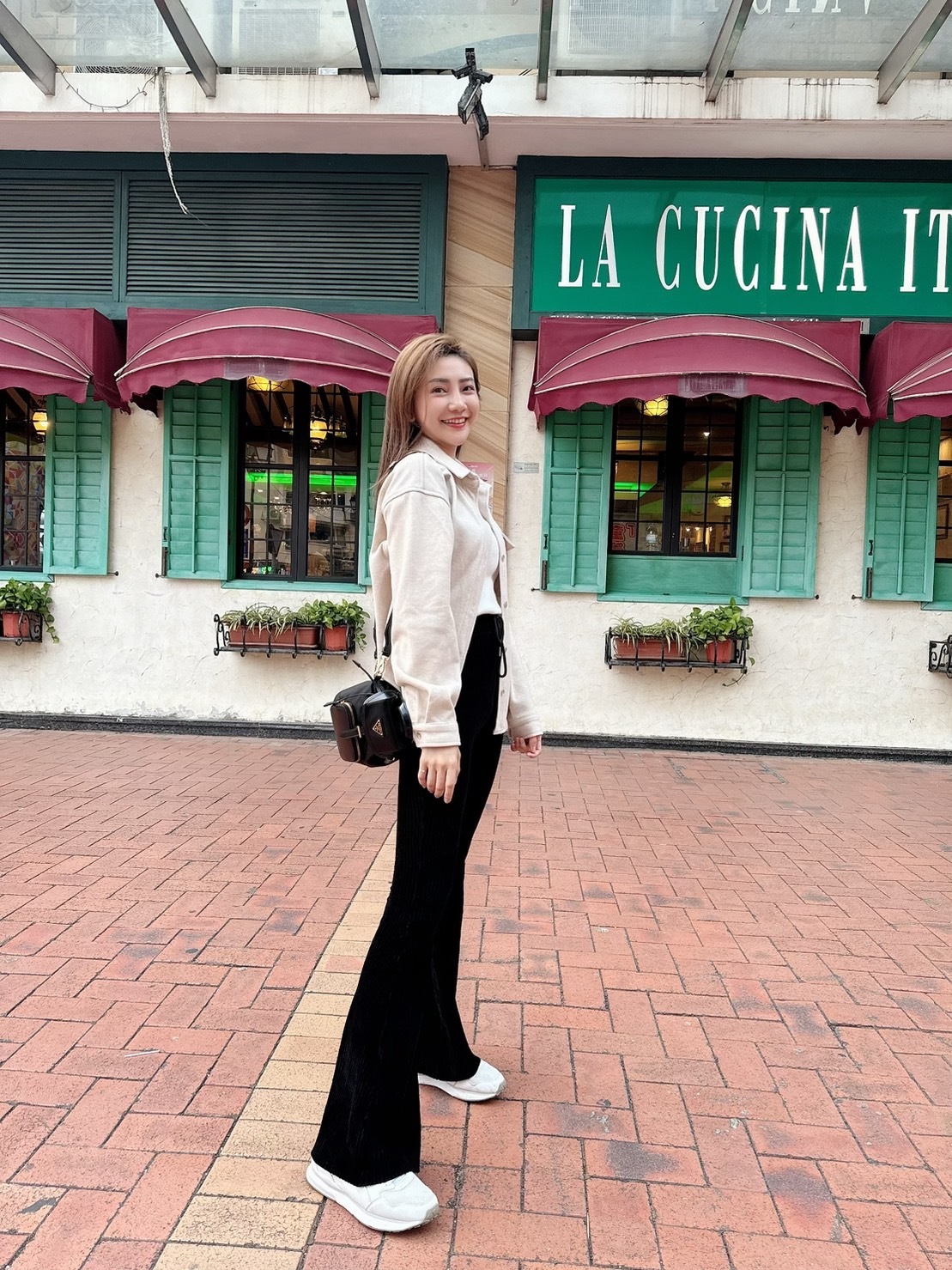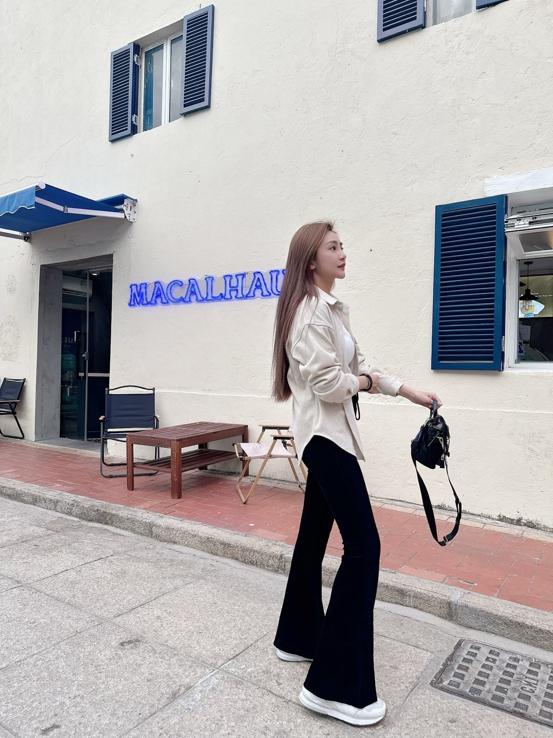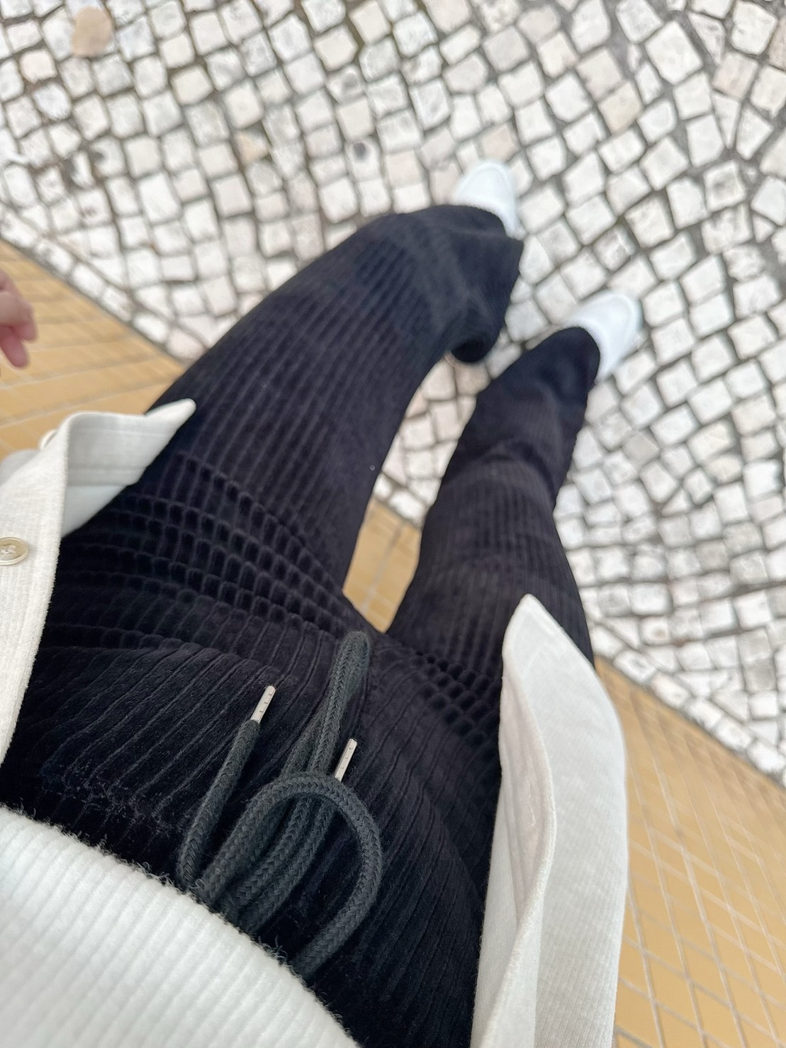 🔥12.07直播新品]💥穿上擁有逆天長腿]🇰🇷正韓高腰鬆緊腰抽繩燈芯絨微喇叭褲(黑色/兩色)